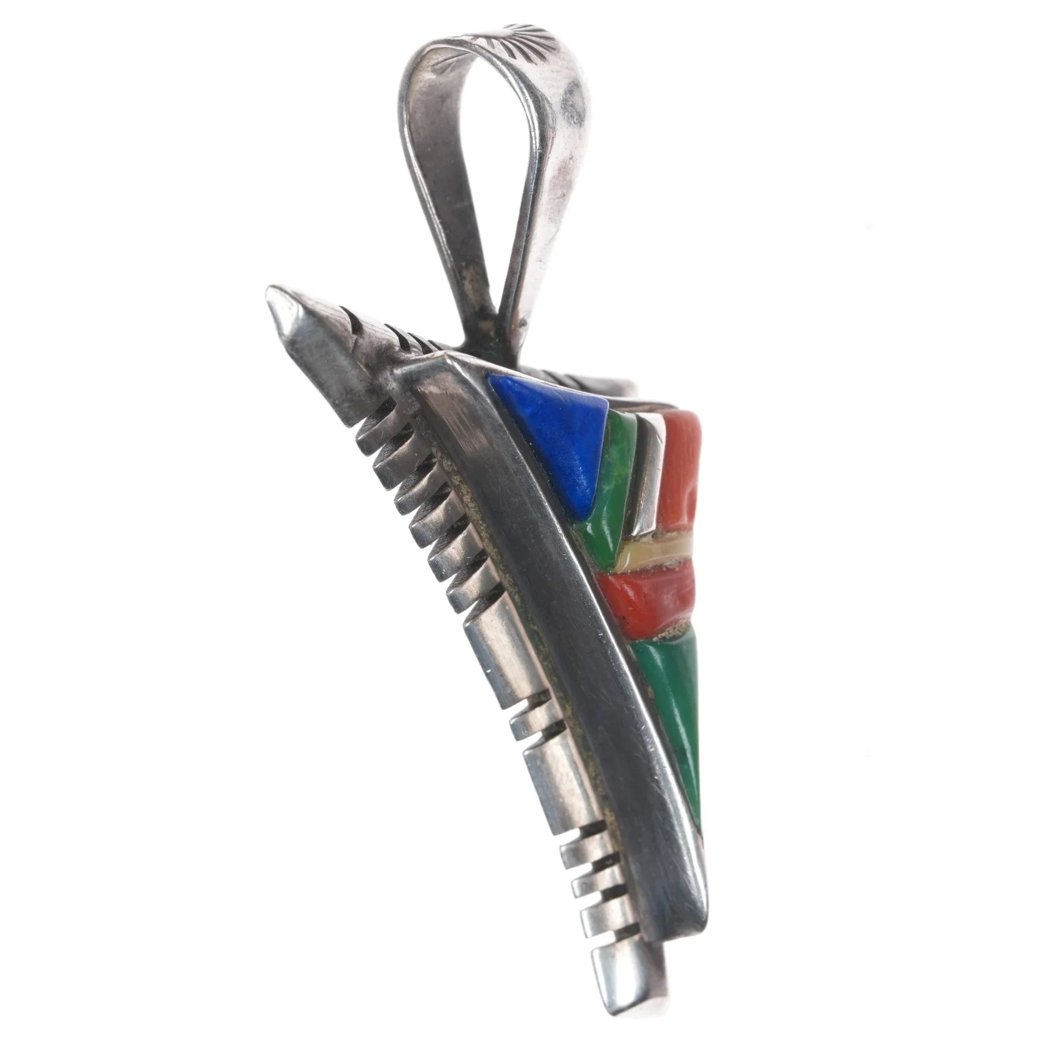 David Tune Navajo Sterling multi-stone cobblestone inlay pendant. Weight and measurements in pics with no issues.
