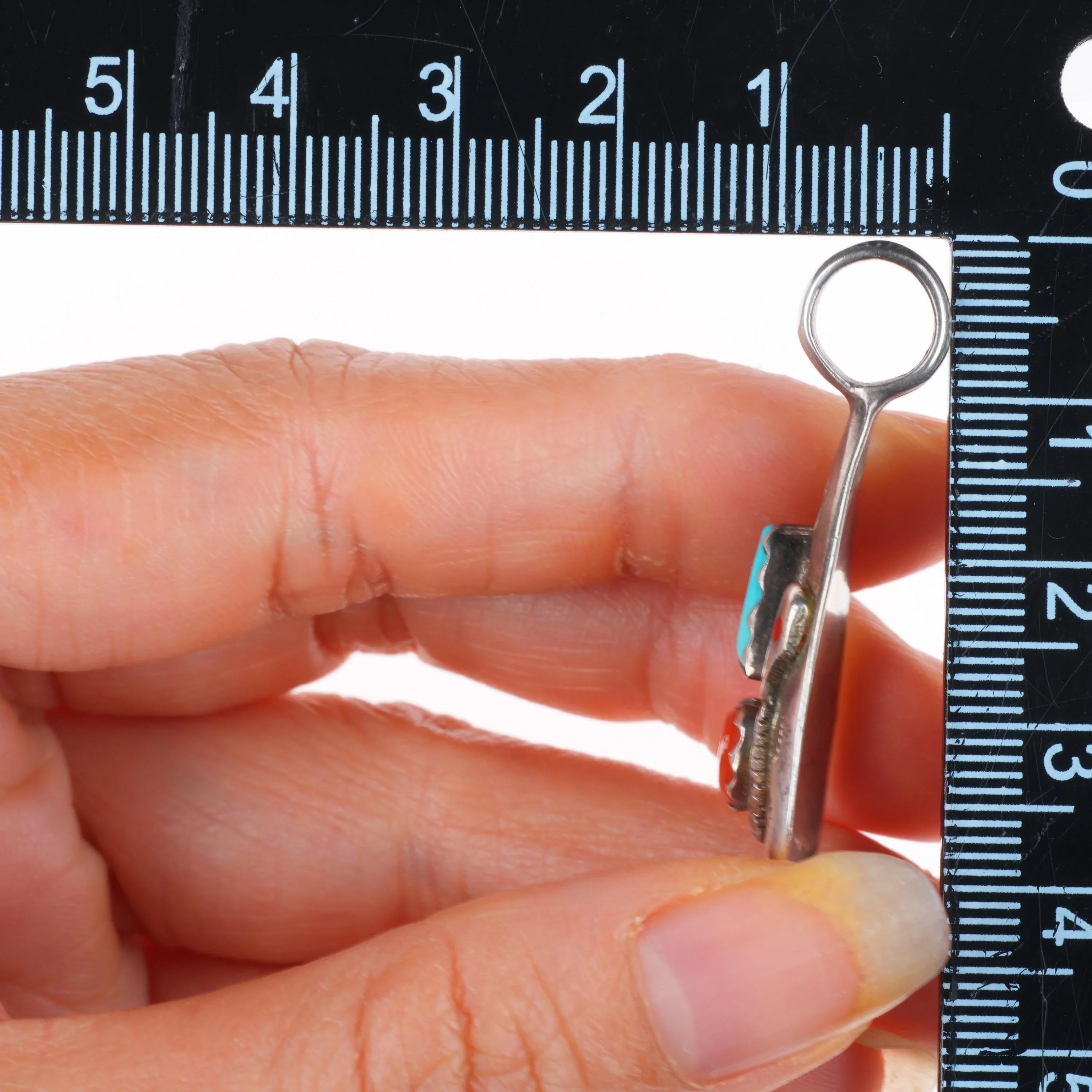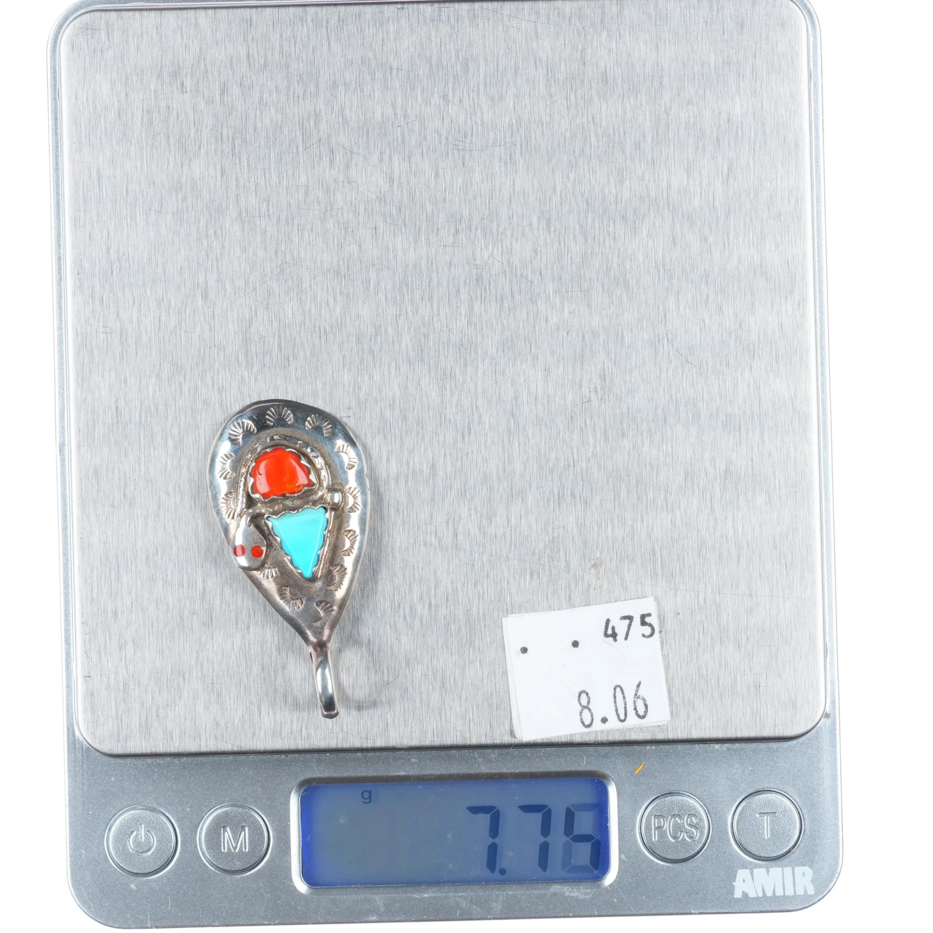 Effie Calavaza Zuni sterling silver, turquoise, coral snake pendant. Solid sterling silver tested and guaranteed with weight and measurements in the pictures. No issues, circa last quarter of the 20th century.