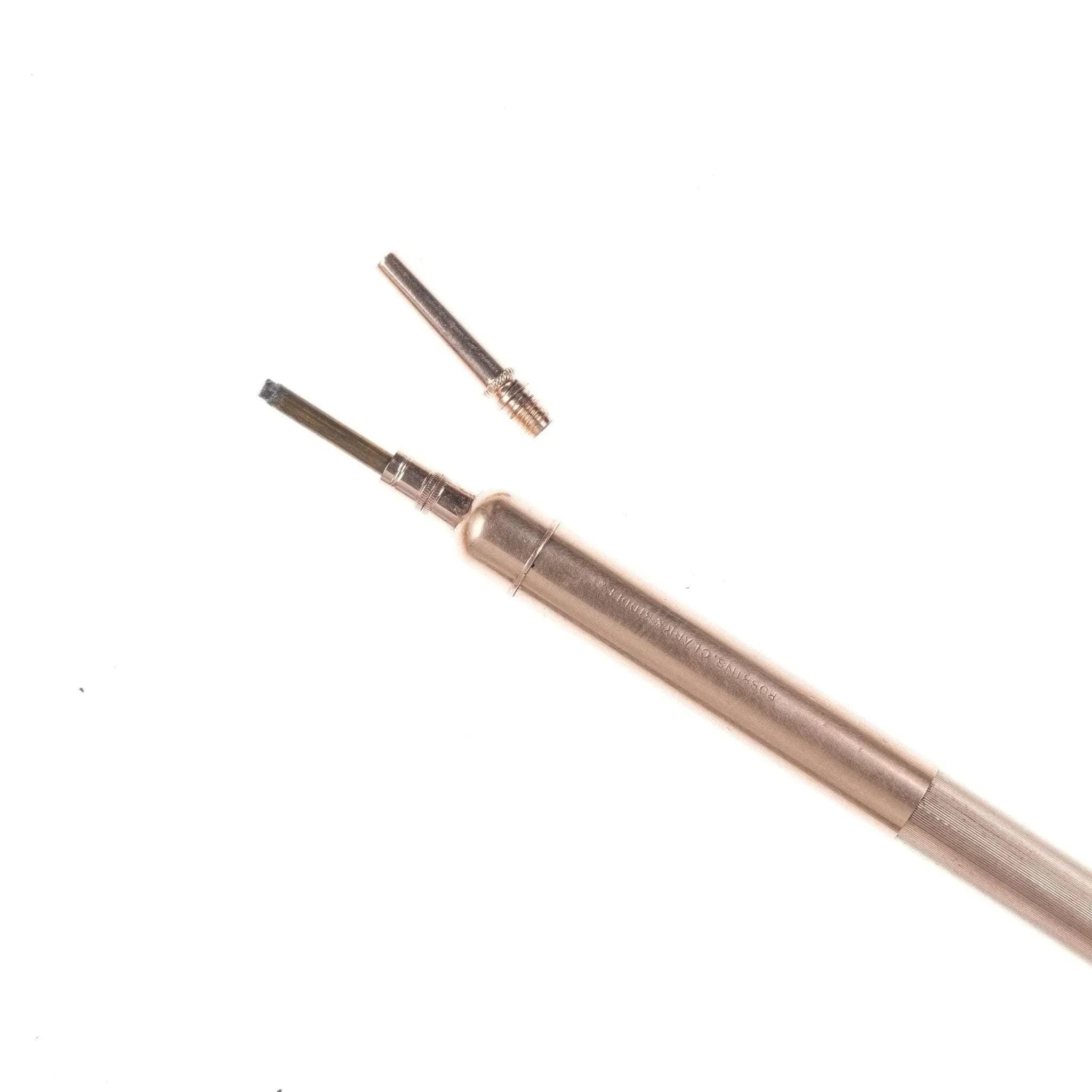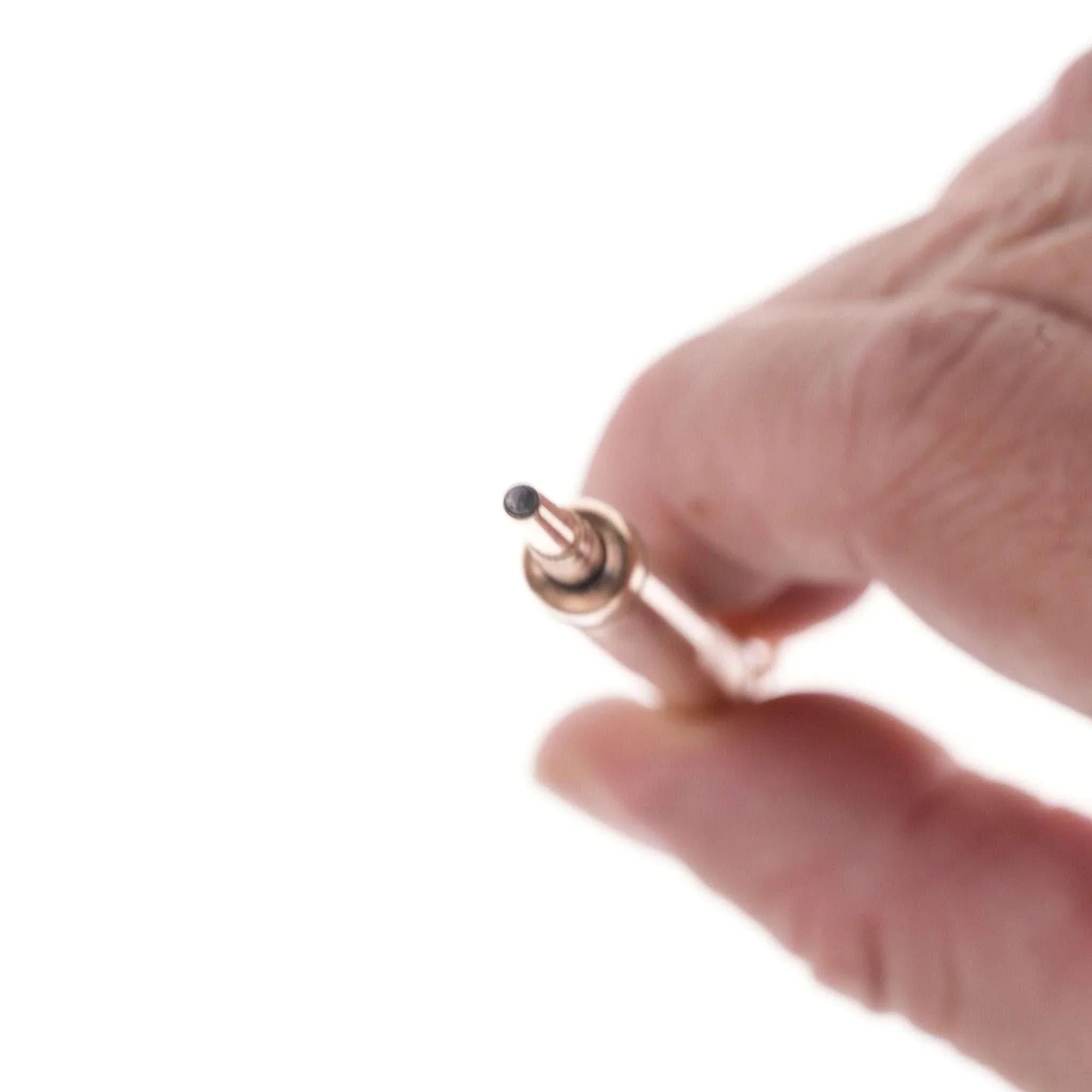 um 1880 Robbins Clark & Biddle Arztbleistift mit einziehbarem Anhänger aus 14-karätigem Gold, knapp über 3,5 Zoll geschlossen mit Biegering, 4 7/8 Zoll vollständig ausgefahren mit Biegering. Voll funktionsfähig und ohne Probleme. Ohne Markierung, aber von mir an mehreren Stellen säuregeprüft, um sicherzustellen, dass es aus 14-karätigem Gold besteht, ohne Anzeichen oder Hinweise darauf, dass es plattiert ist. Name des Händlers auf der einen Seite und eingravierter Name des Arztes auf der anderen Seite. 18,6 Gramm. Ohne dies zu beschädigen, kann ich nicht 100 % sicher sein, dass es nicht mit Gold gefüllt ist, aber wie ich bereits sagte, gibt es keine Beweise dafür, dass es plattiert ist, keine Abnutzung, und es hat sich an mehreren Stellen für 14 Karat bewährt, verblasst aber bei 18 Karat, typischerweise waren vergoldete Gegenstände mehr oft 12 Karat, würde also nicht bei 14 Karat getestet, also glaube ich, dass es sich um massives Gold handelt. Einige der inneren Mechanismen bestehen aus einem anderen Metall, da sie haltbarer als Gold sind. Ich habe bereits verschiedene Modelle davon aus derselben Zeit zerlegt und sie bestehen normalerweise zu 50–75 % aus Gold mit einer kleinen Menge Stahl- oder Messingteilen für den Mechanismus. Wie im letzten Bild gezeigt, besteht der innere Schaft, der den Bleistift hält, aus Messing.