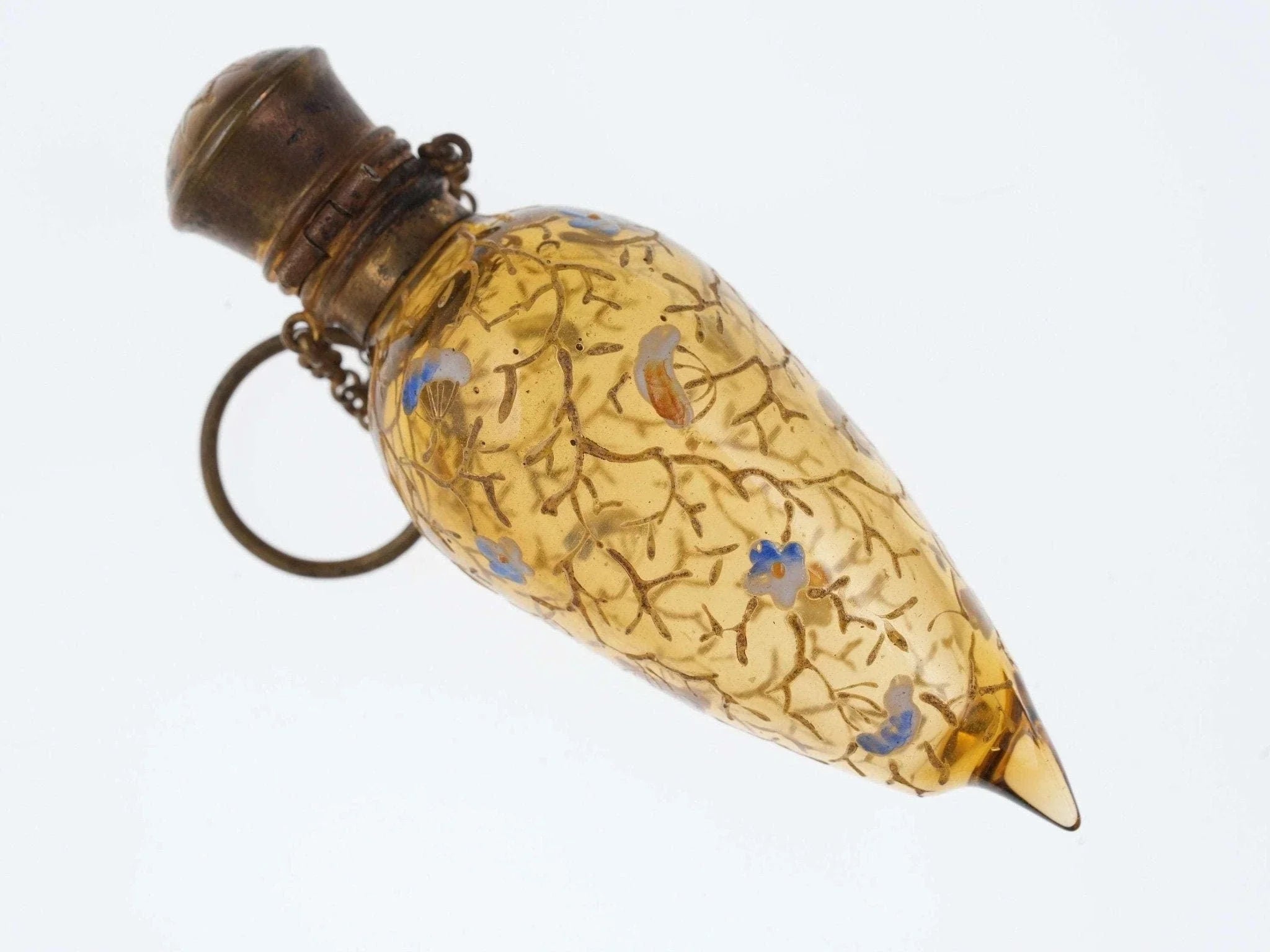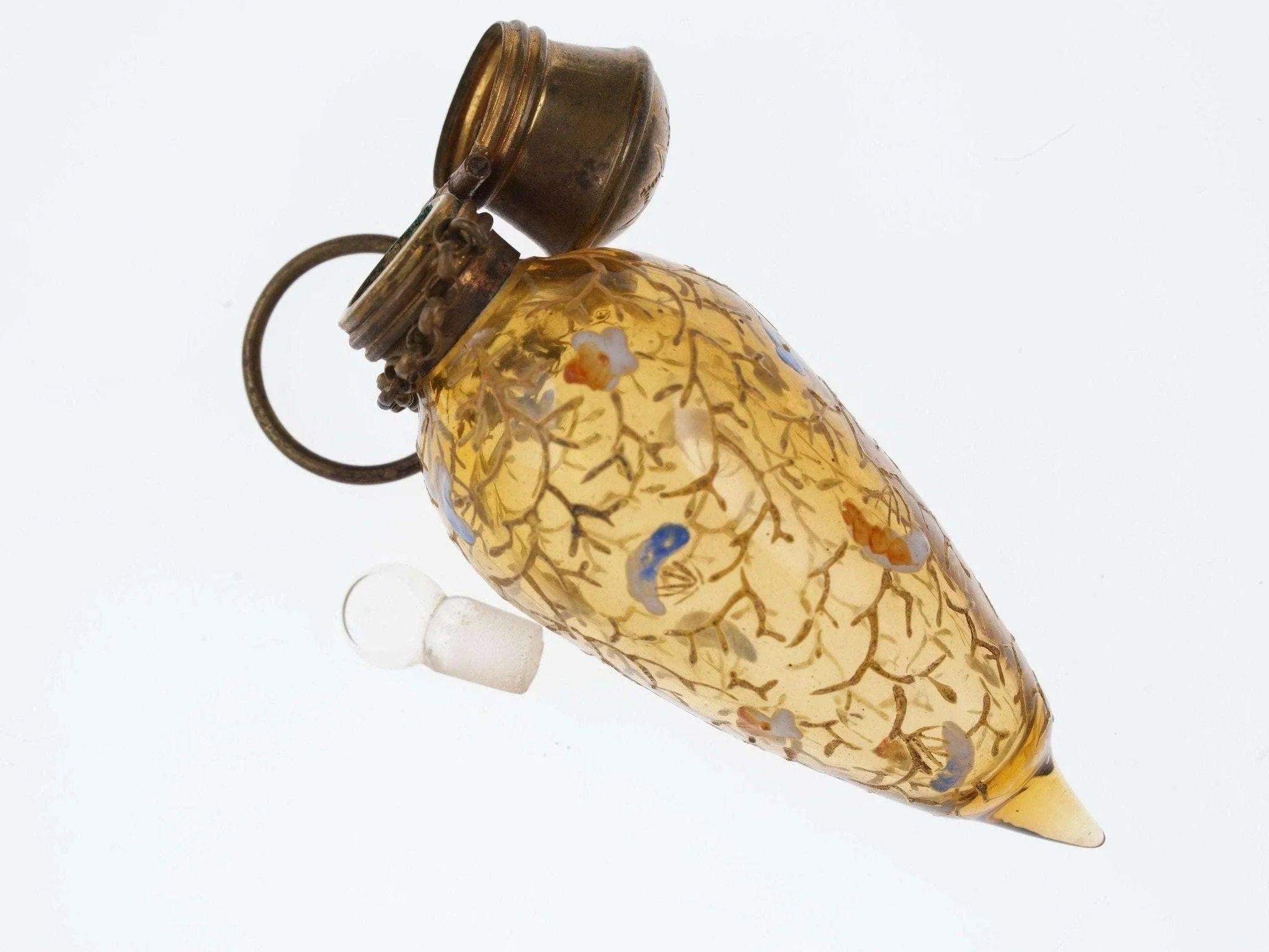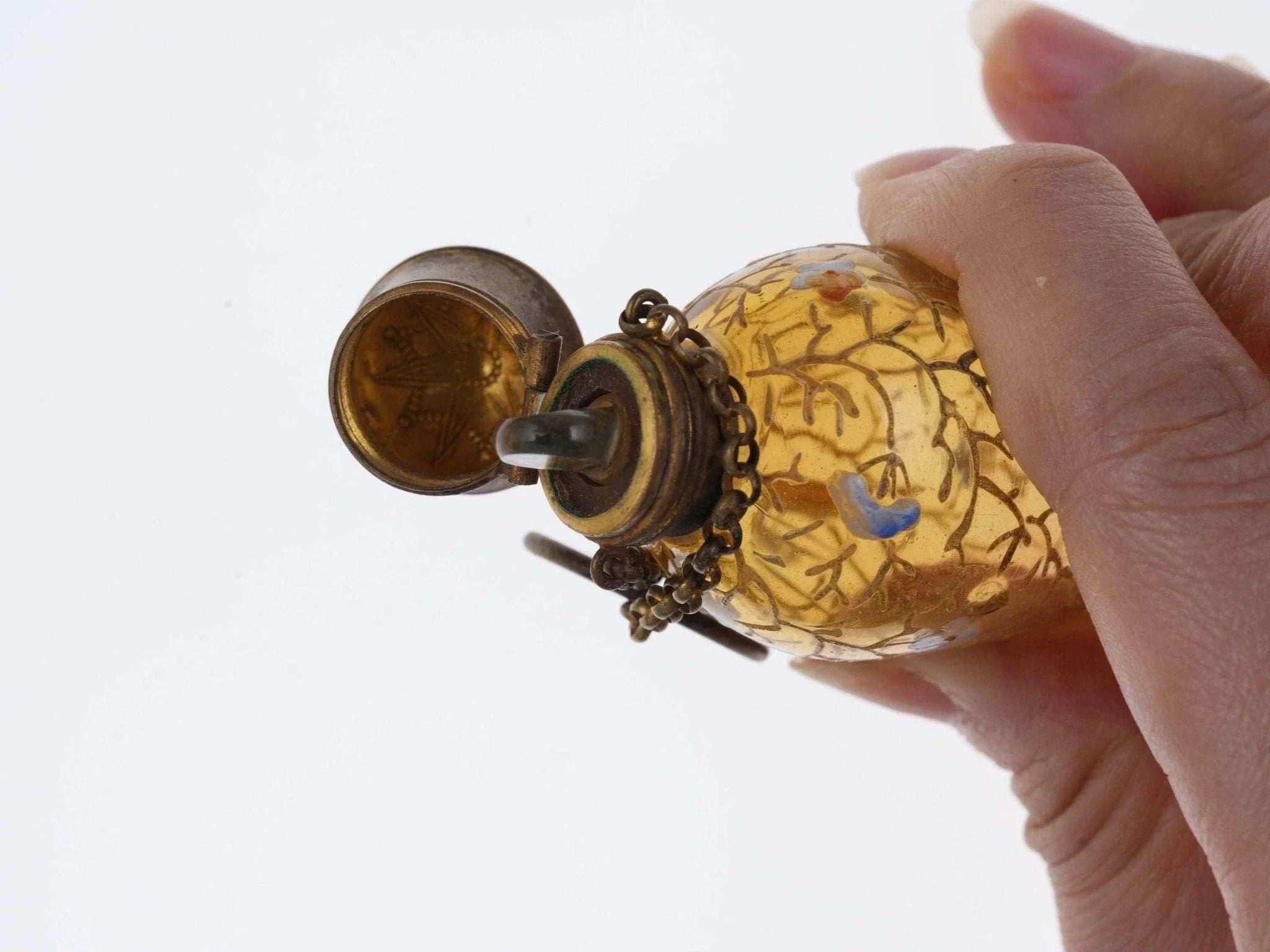 c1890 Moser emaillierte Chatelaine-Parfümflasche. Kein Schaden, intakter Stopfen, Außenkappe schnappt mit hörbarem Klicken zu.