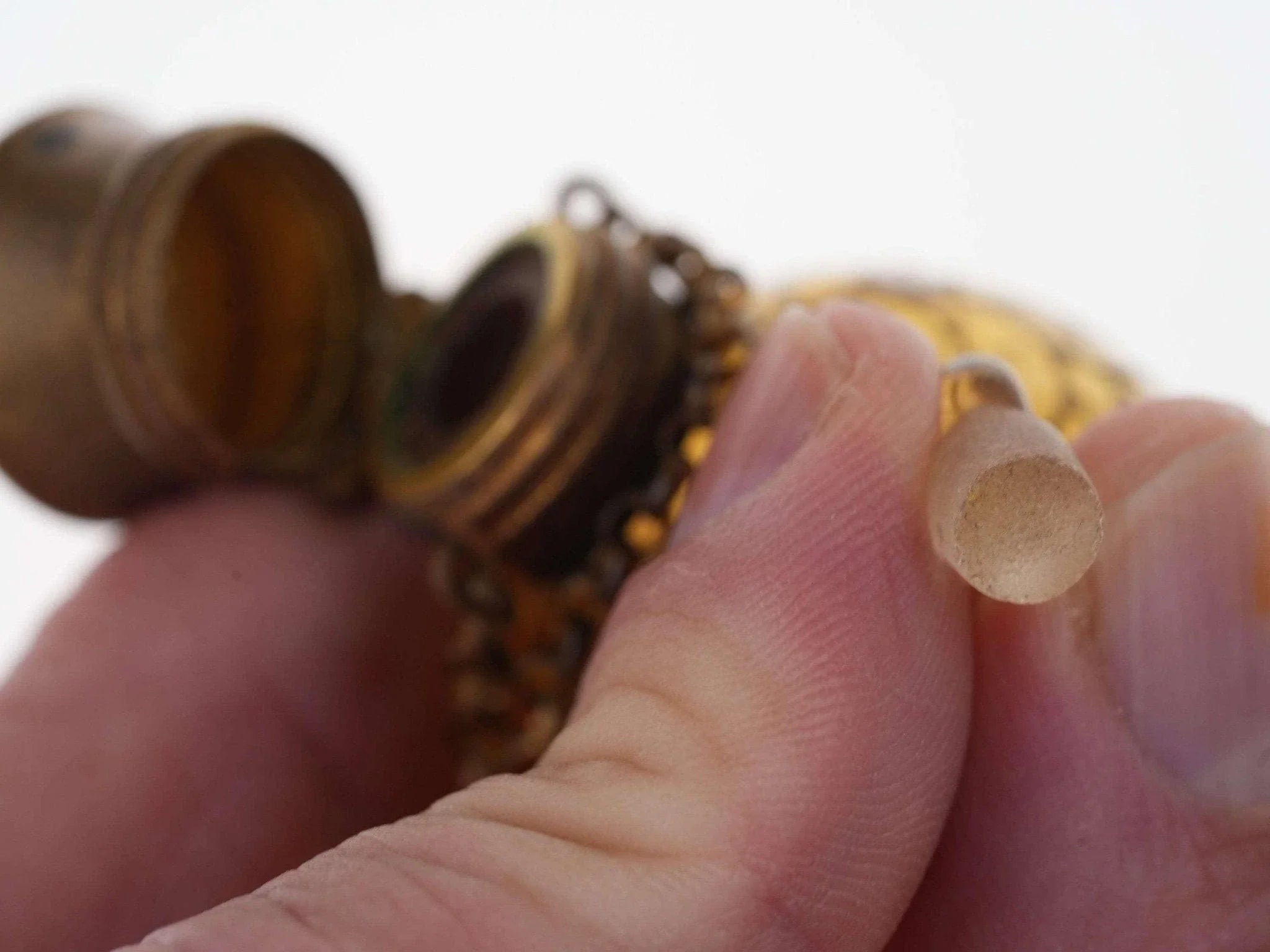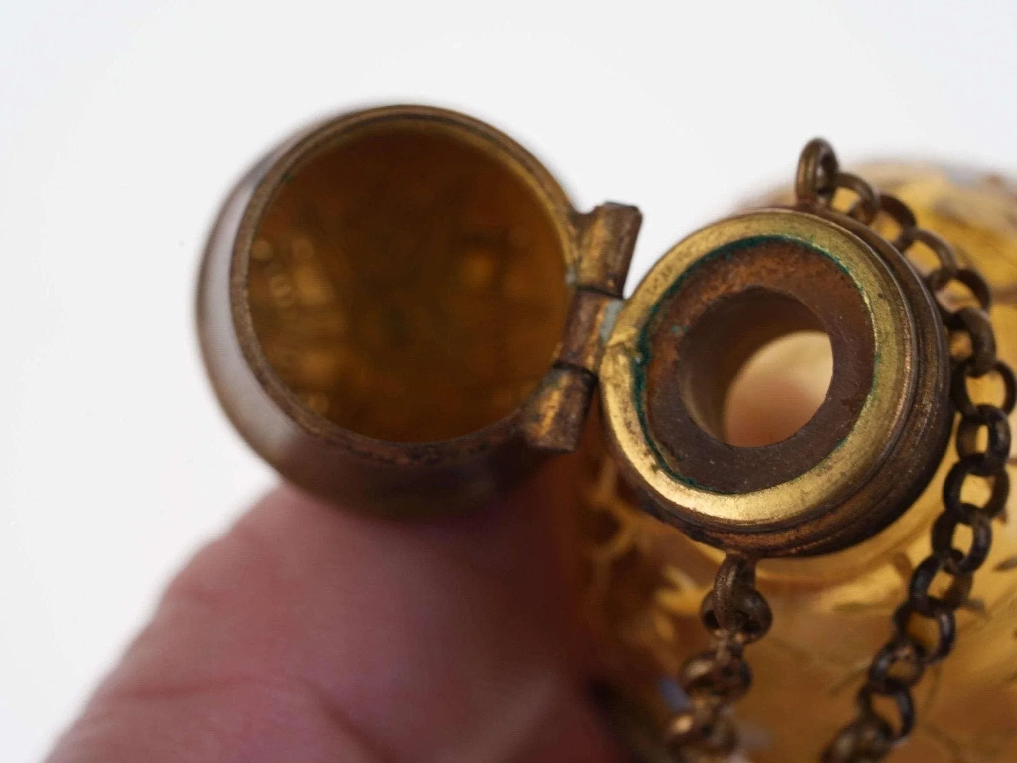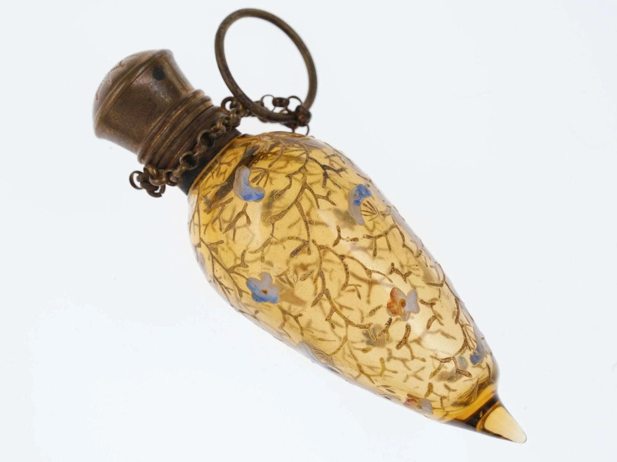 c1890 Moser emaillierte Chatelaine-Parfümflasche. Kein Schaden, intakter Stopfen, Außenkappe schnappt mit hörbarem Klicken zu.