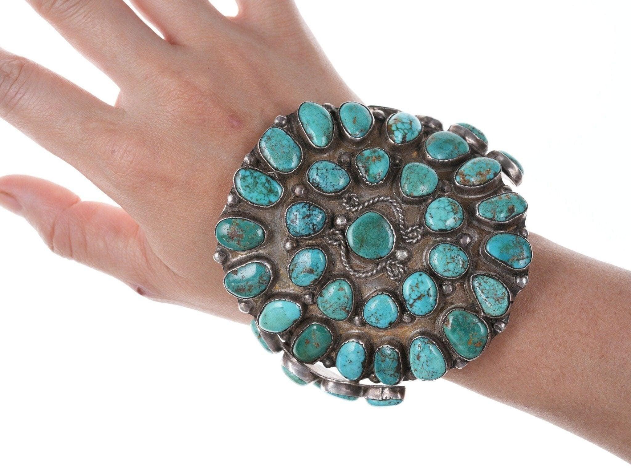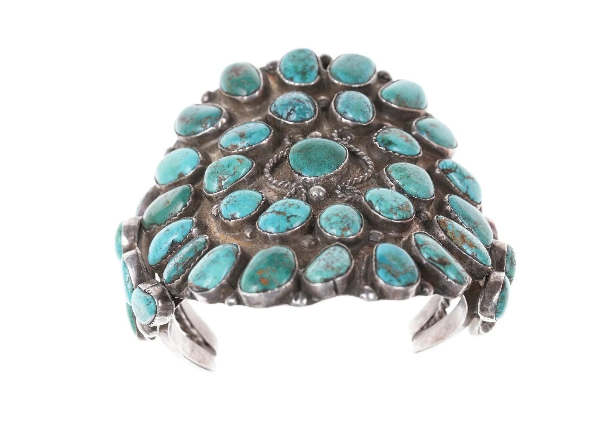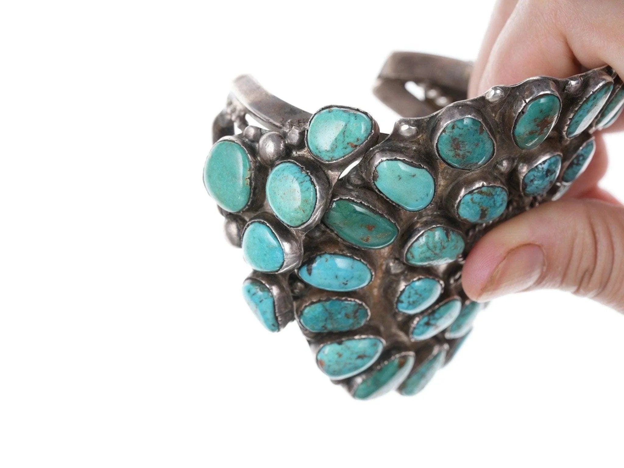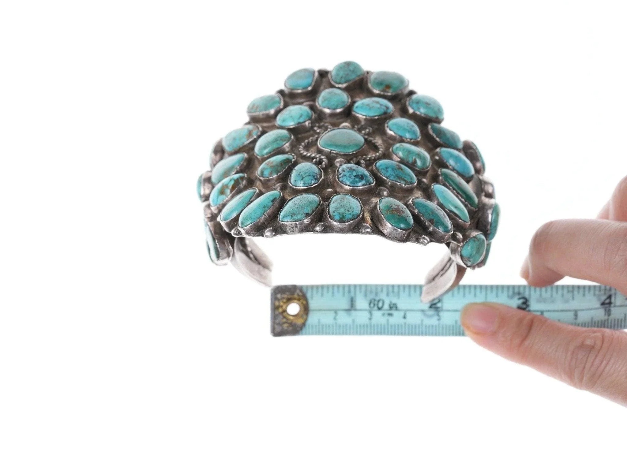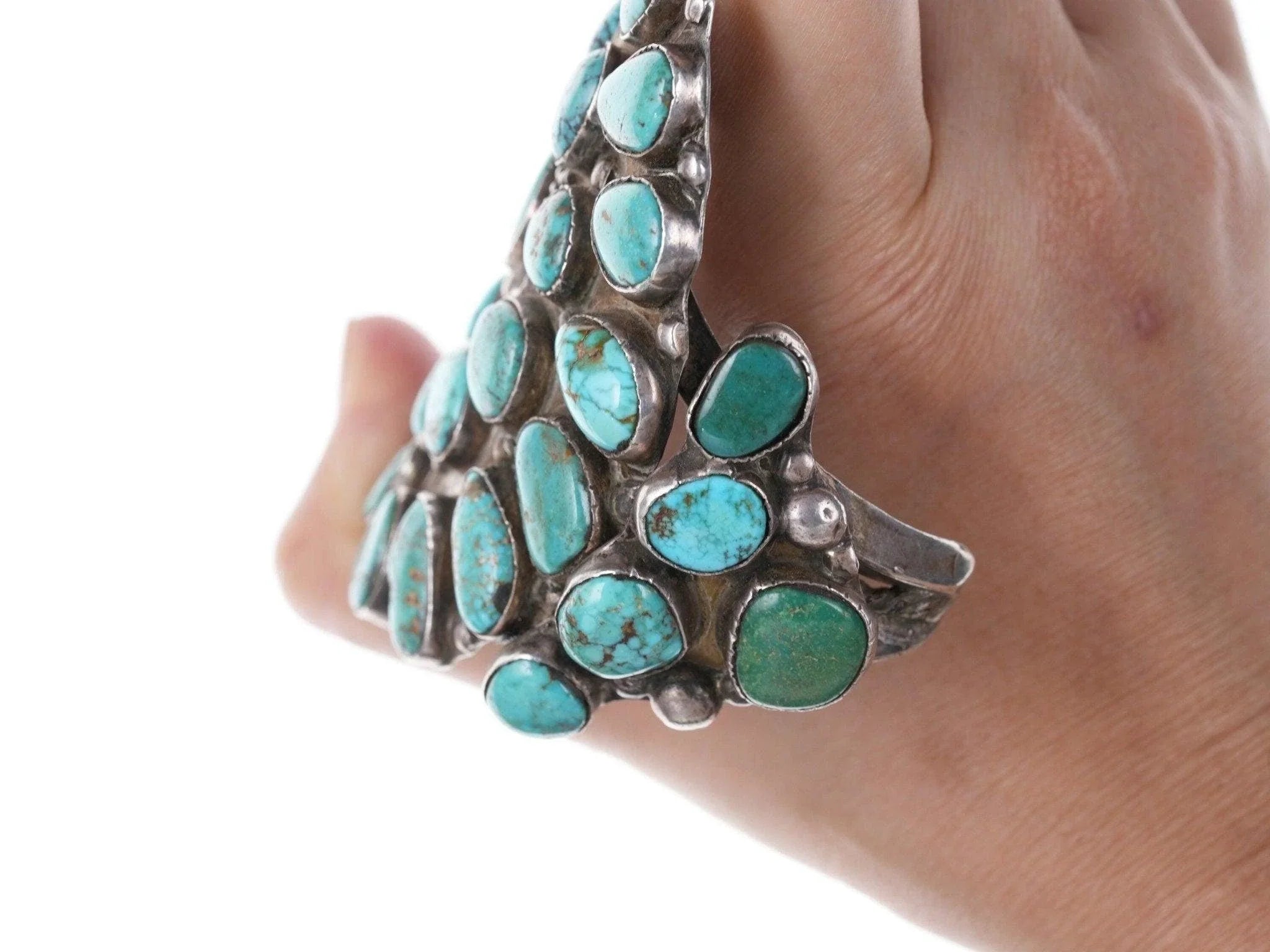 7" Riesiges 30er-40er Navajo-Silber-Türkis-Cluster-Armband. Passt bis zu einem 7"-Handgelenk.