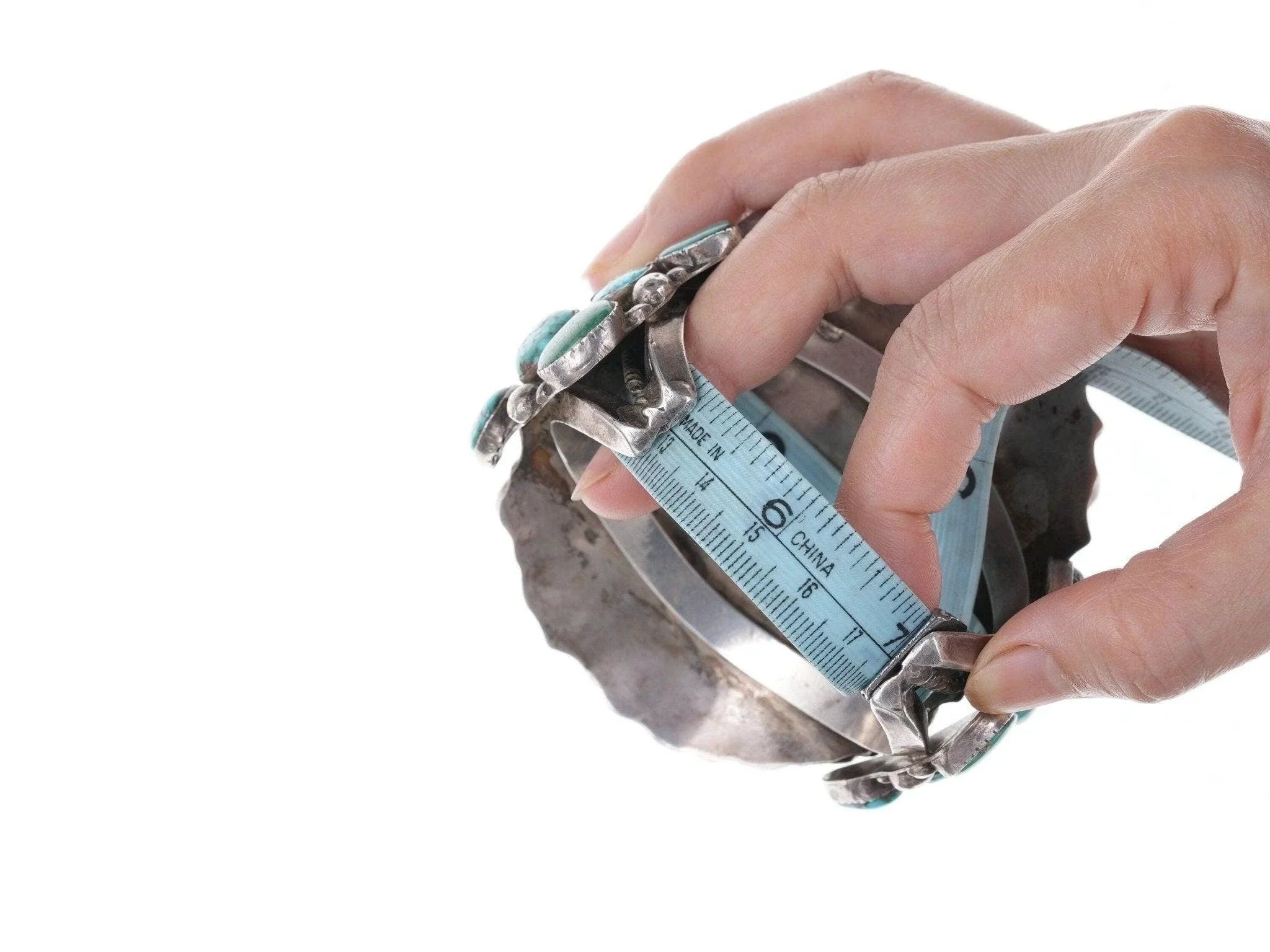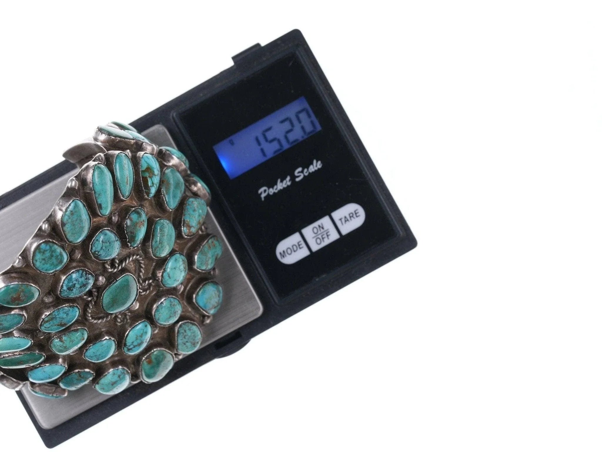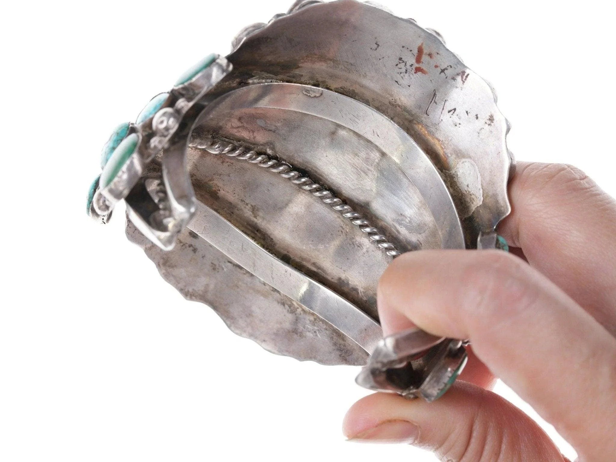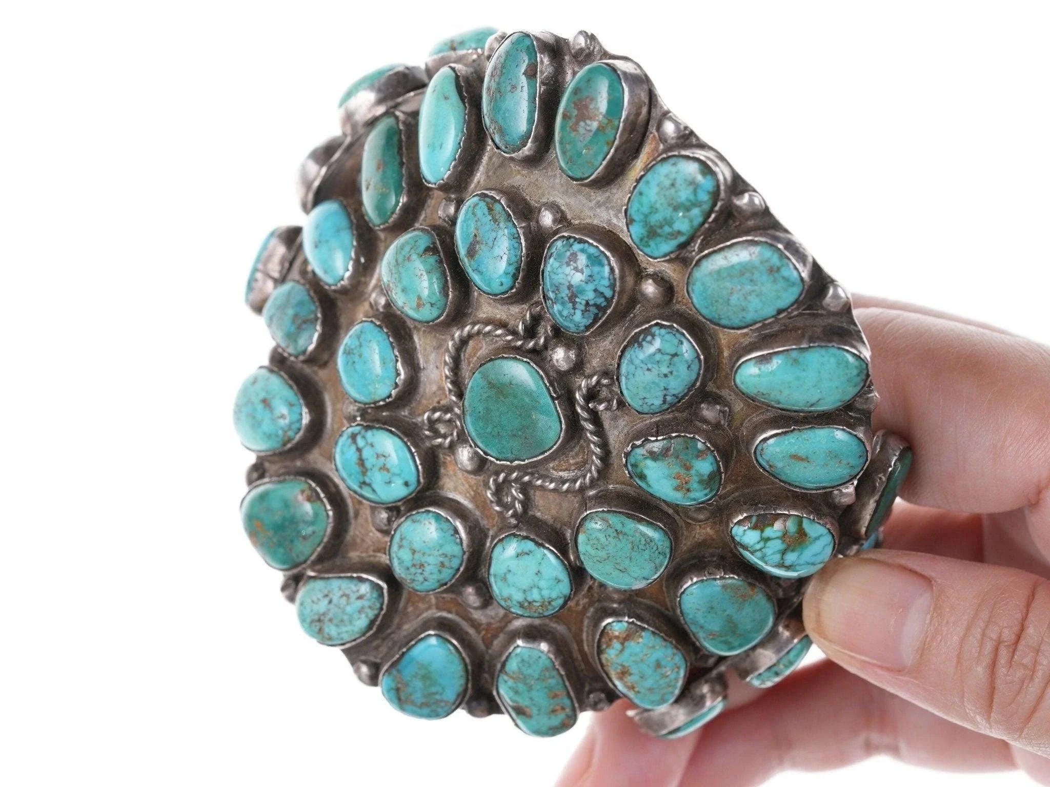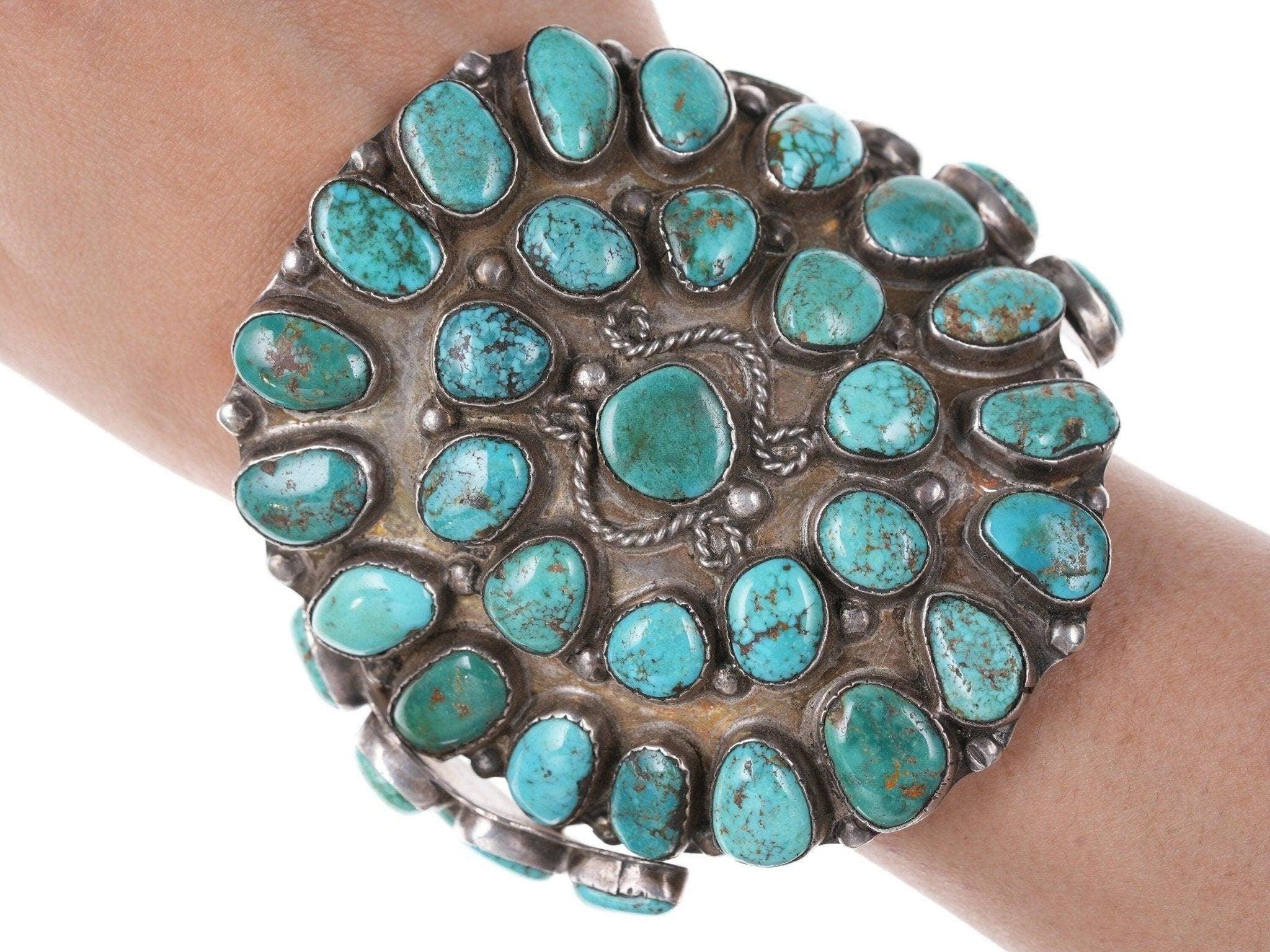 7" Riesiges 30er-40er Navajo-Silber-Türkis-Cluster-Armband. Passt bis zu einem 7"-Handgelenk.