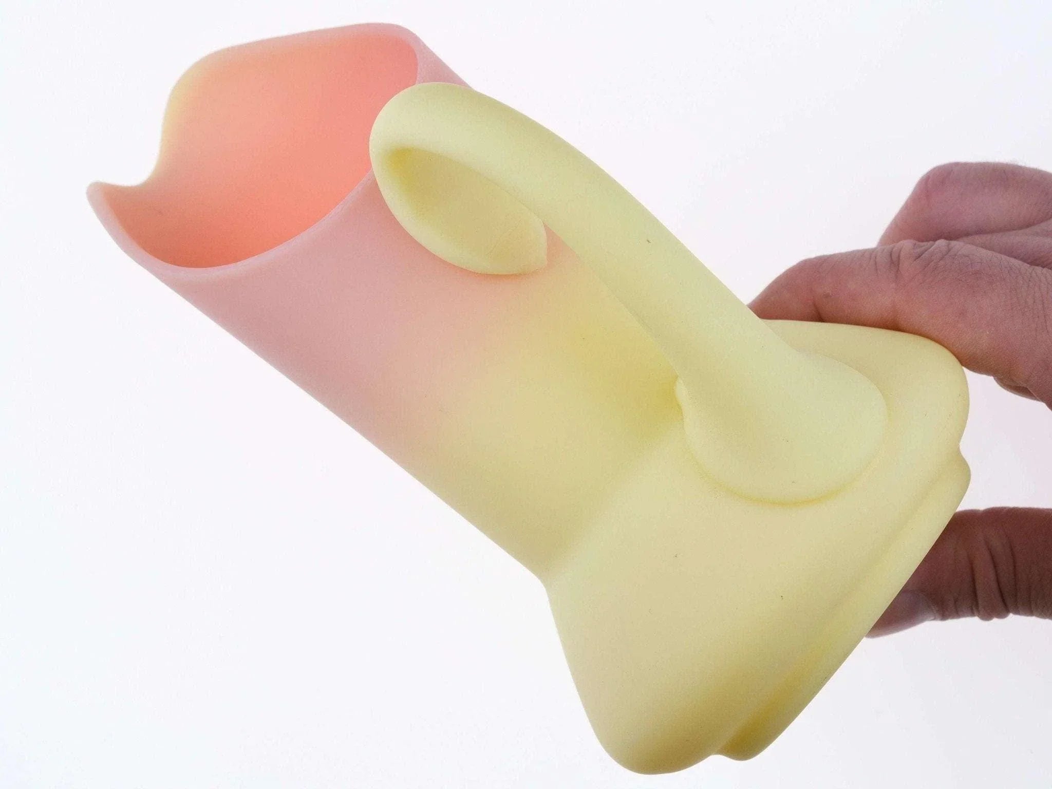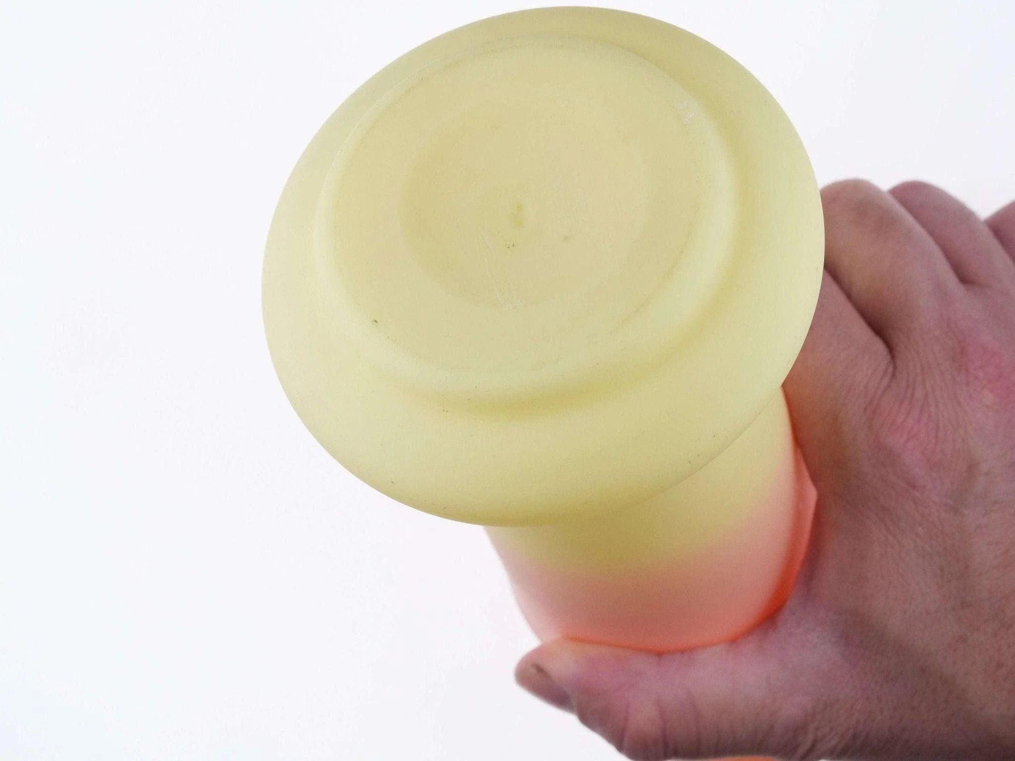 Dieses von Frederick Shirley entworfene und von der Mount Washington Glass Company hergestellte einschichtige Glas erhielt durch die Zugabe von Uranoxid und Gold zur ursprünglichen Glascharge eine zarte Färbung von rosa oder lachsfarben bis gelb. Dadurch entstand ein gelbes, undurchsichtiges Glas, das beim erneuten Erhitzen eine lachsfarbene Schattierung ins Gelbe annahm. Durch weiteres Erhitzen wurde die Lachsfarbe wieder gelb. Das Uran im Glas lässt die Vase hell fluoreszieren, wenn sie Schwarzlicht ausgesetzt wird. Burmesisches Glas wird in großem Umfang gesammelt und ist auch in allen großen amerikanischen Kunstglassammlungen enthalten. Dieses Glas ist heute selten, da die Herstellung sehr teuer war und nur für kurze Zeit hergestellt wurde.