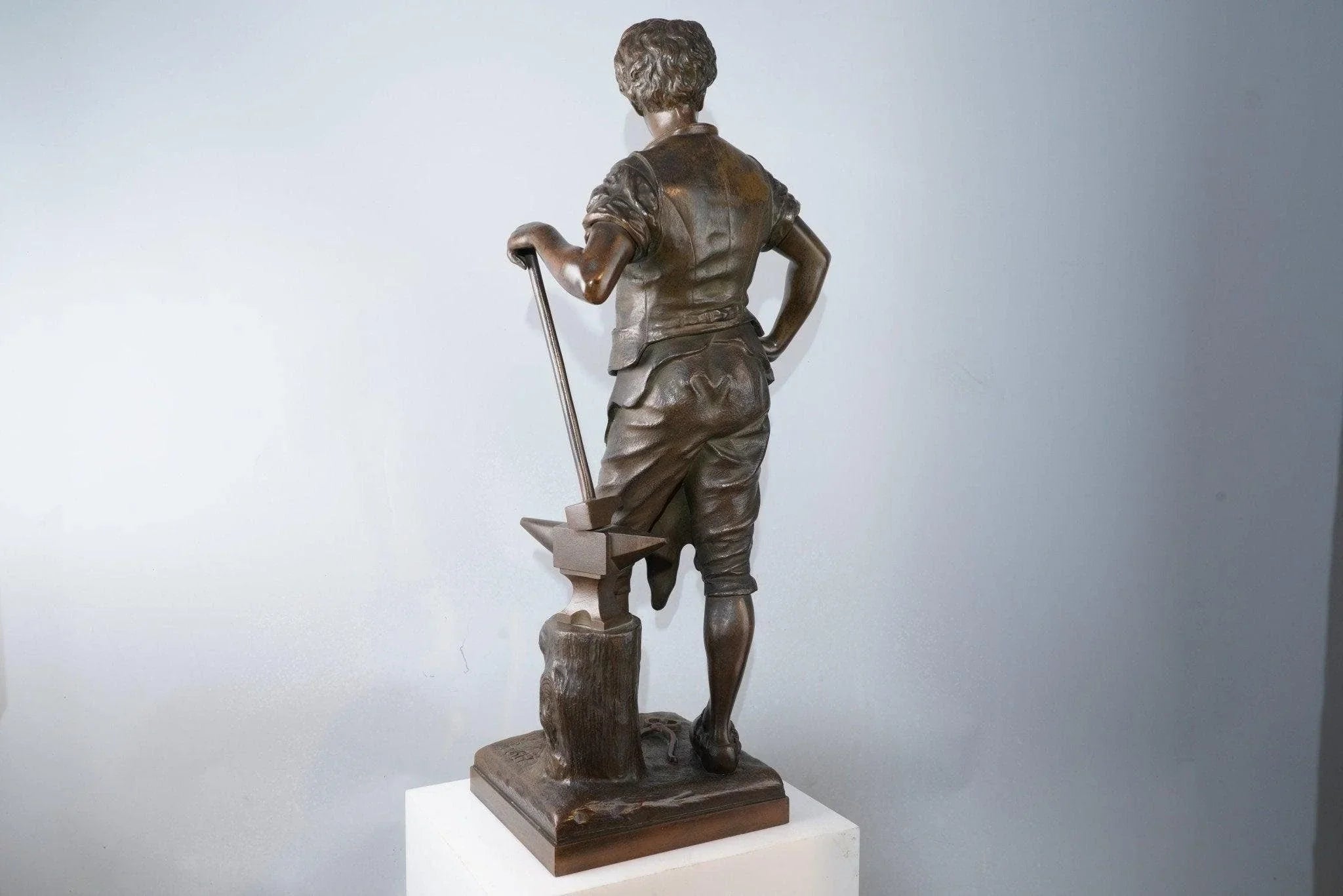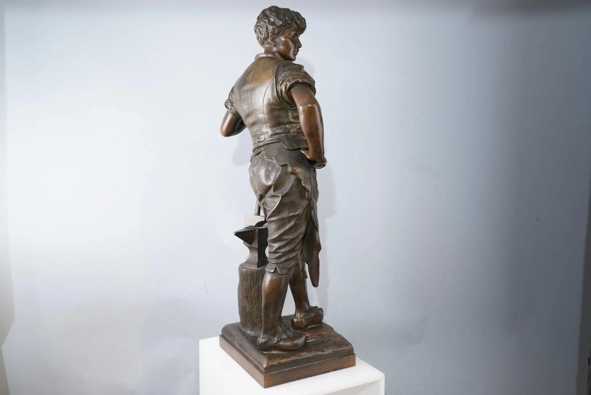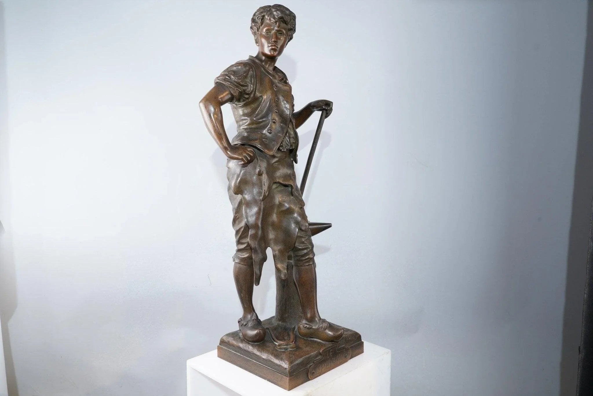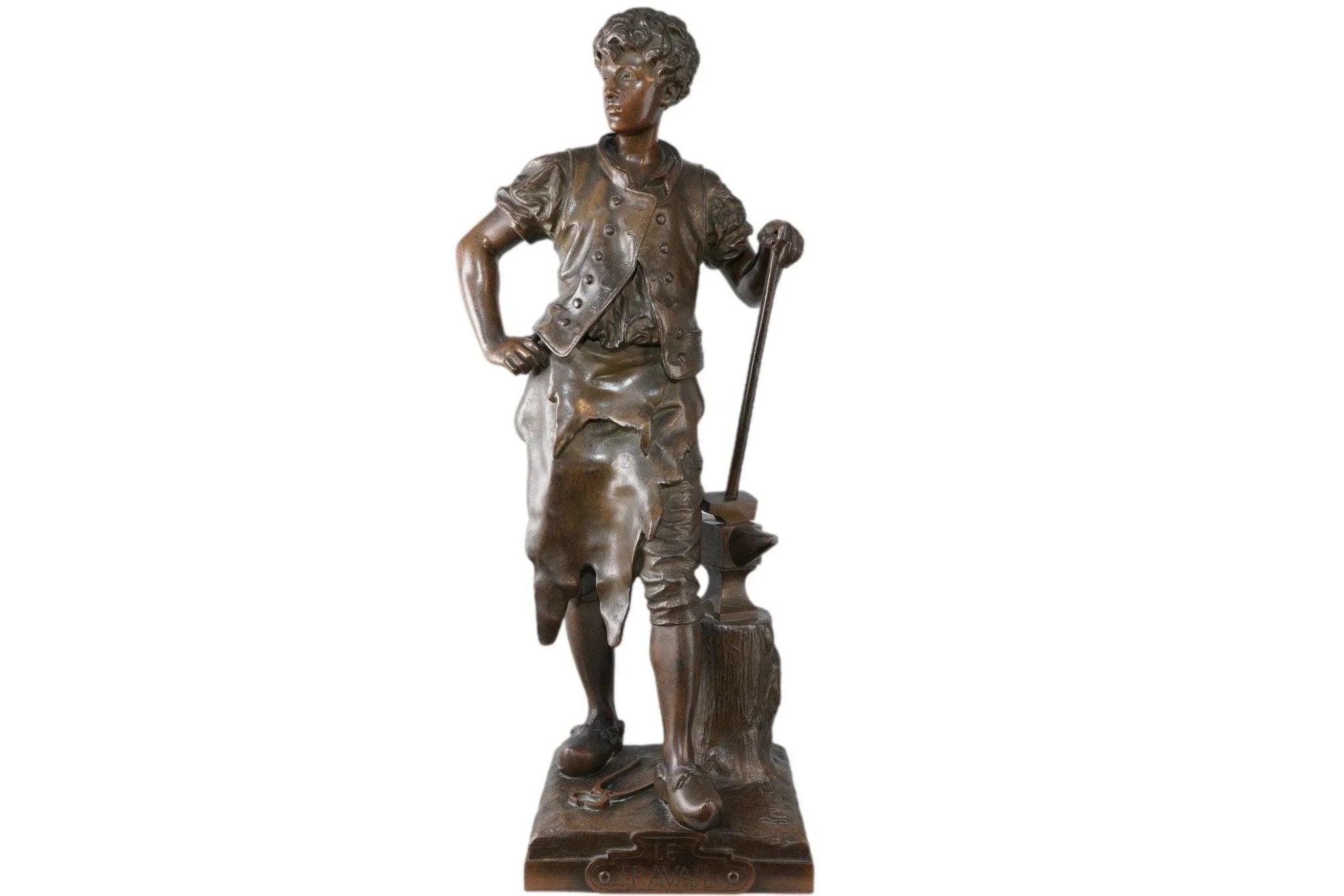 20" Eutrope Bouret (1833-1906) Französische Bronzeschmiedskulptur „Le Travail“