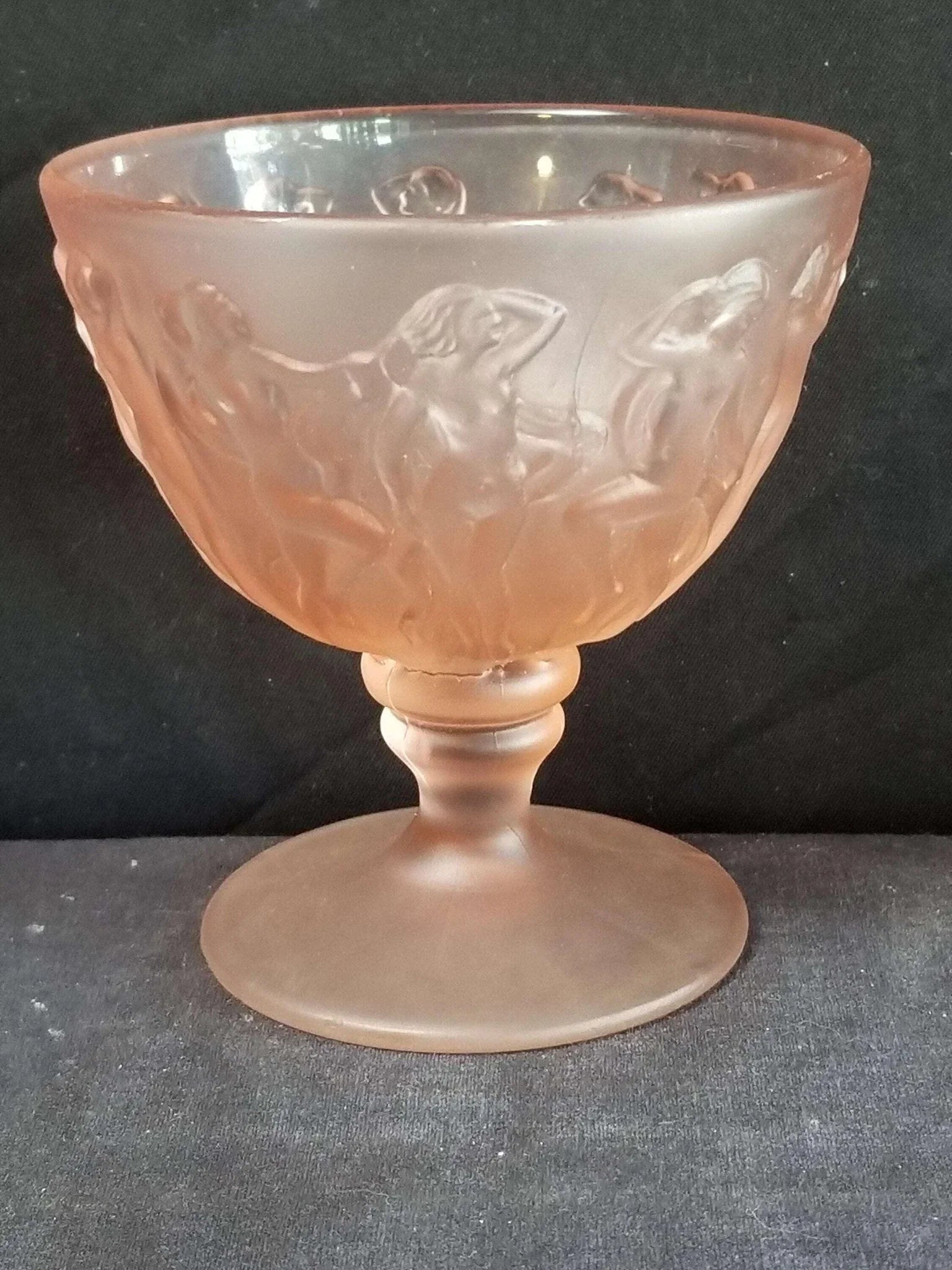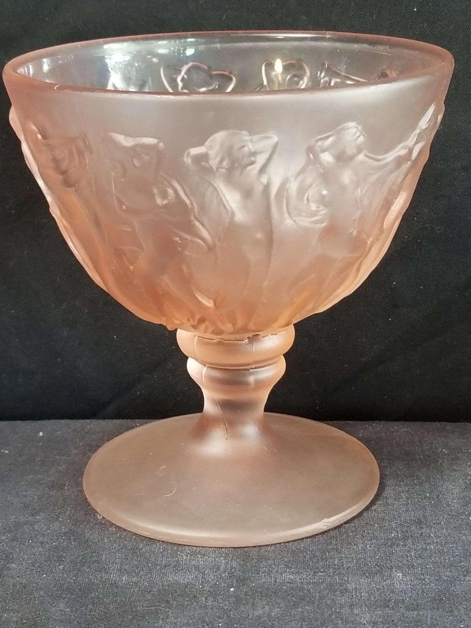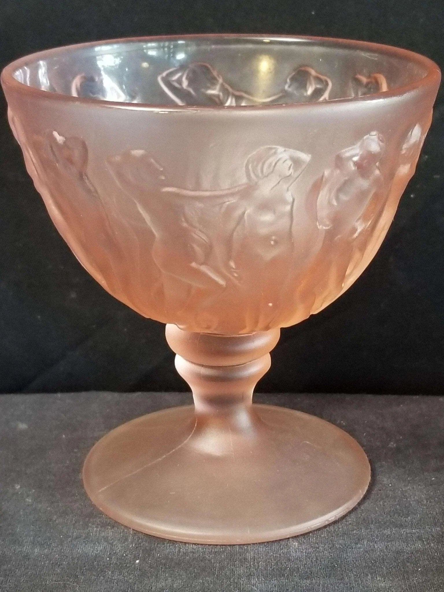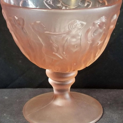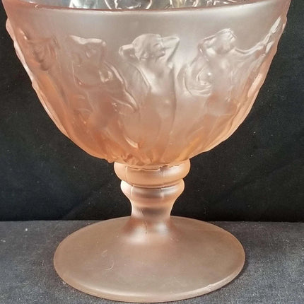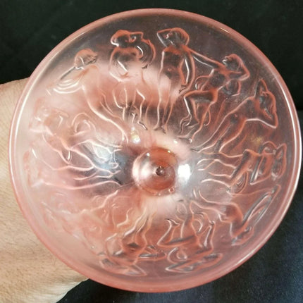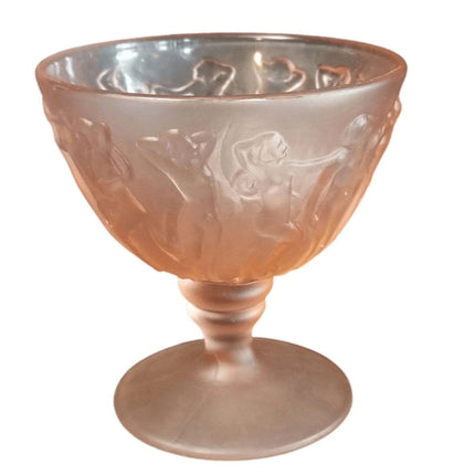 Consolidated Dancing Nymphs Pink Satin Sherbet Nude Women Periode Art Deco Depression Glas 1930er Jahre 3 13/16" hoch (mehrere verfügbar)