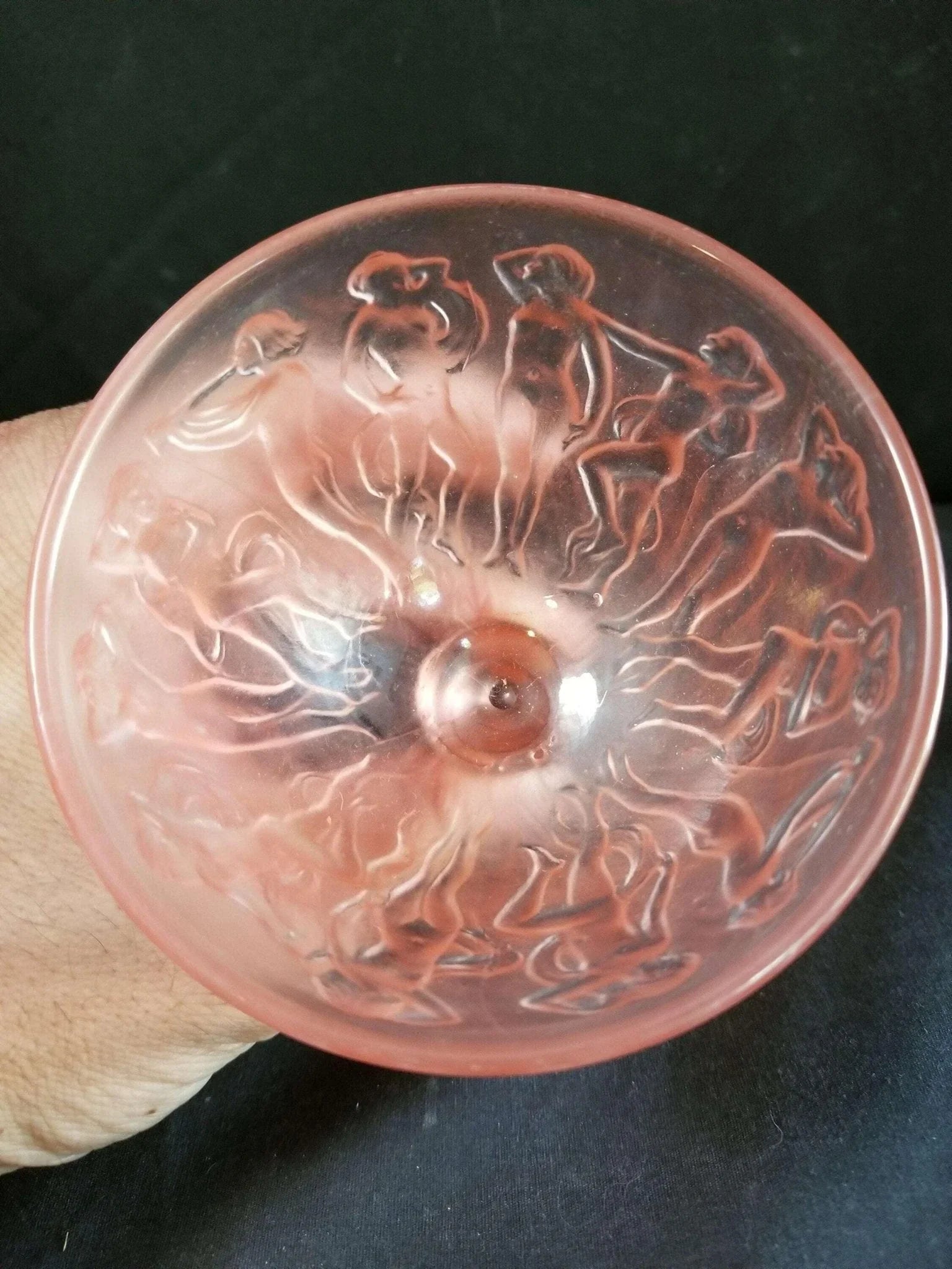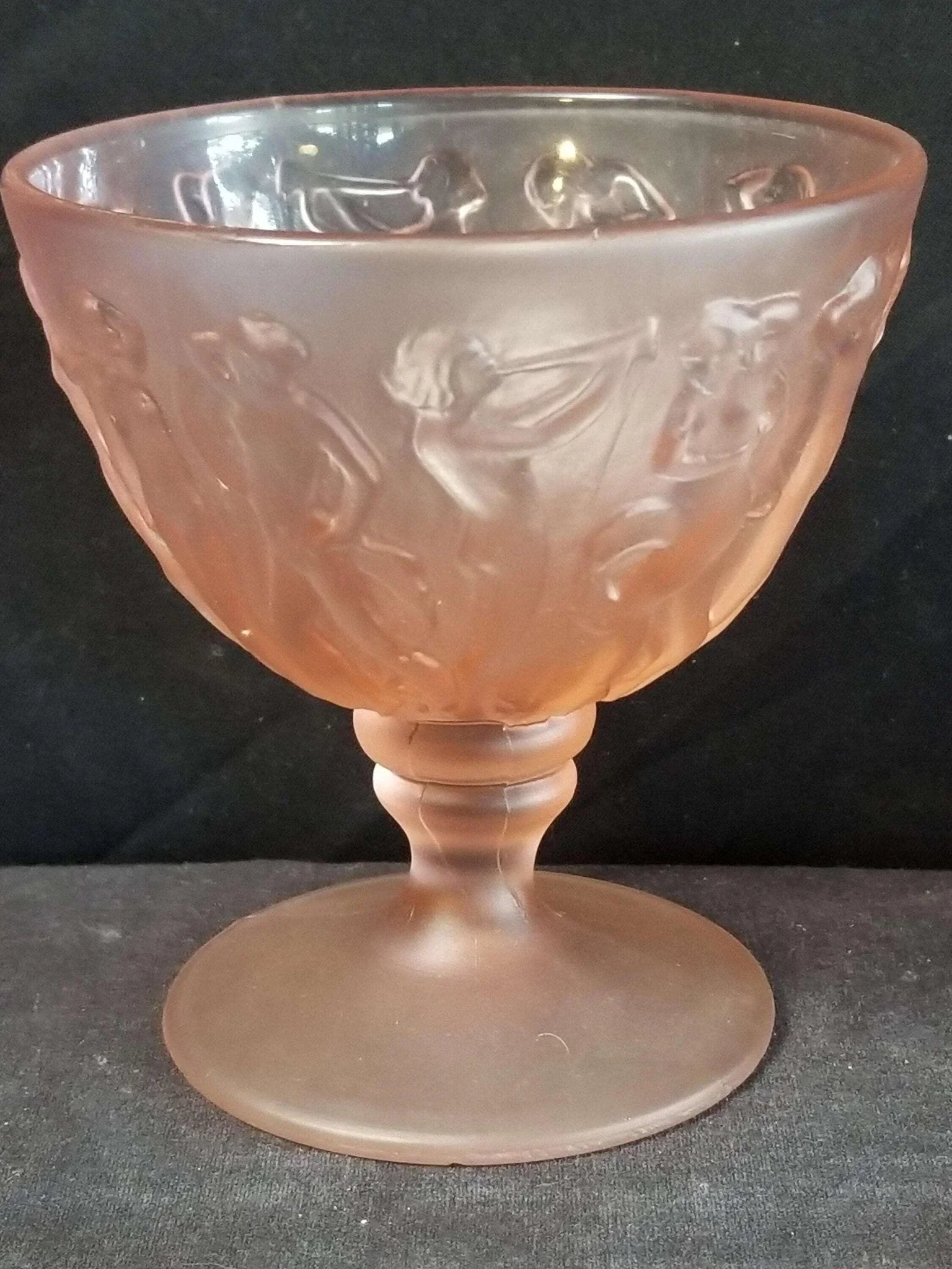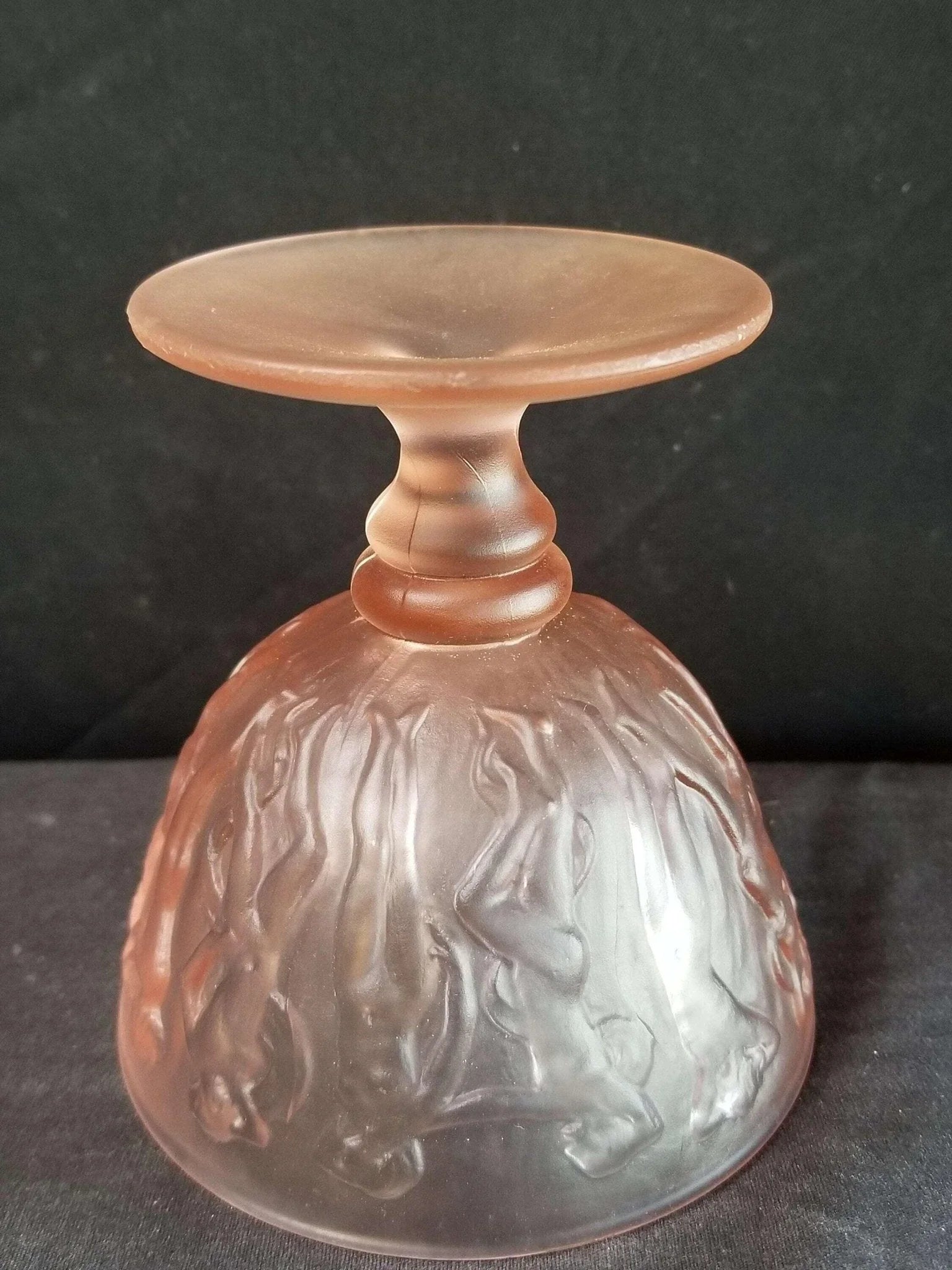 Consolidated Dancing Nymphs Pink Satin Sherbet Nude Women Periode Art Deco Depression Glas 1930er Jahre 3 13/16" hoch (mehrere verfügbar)