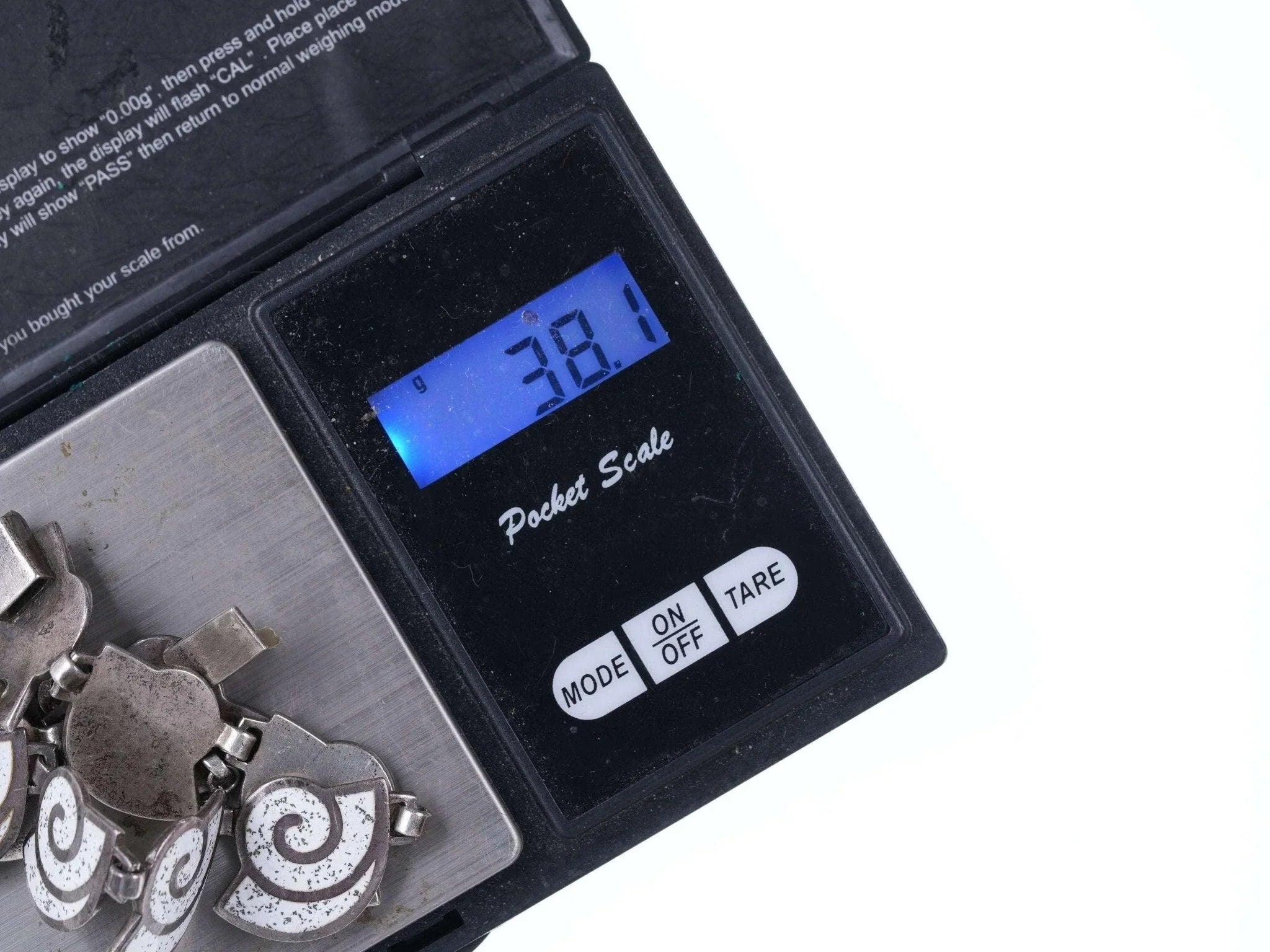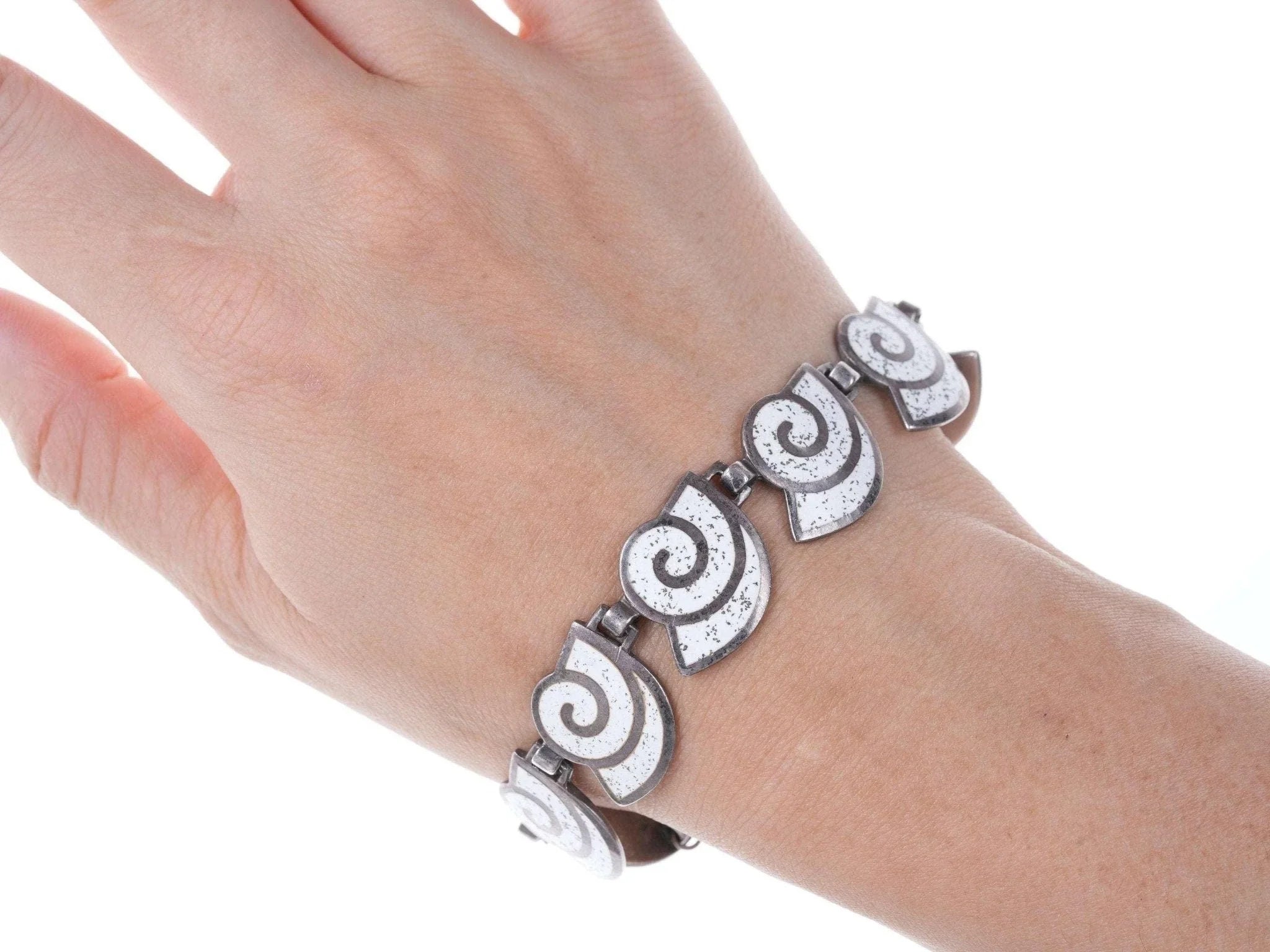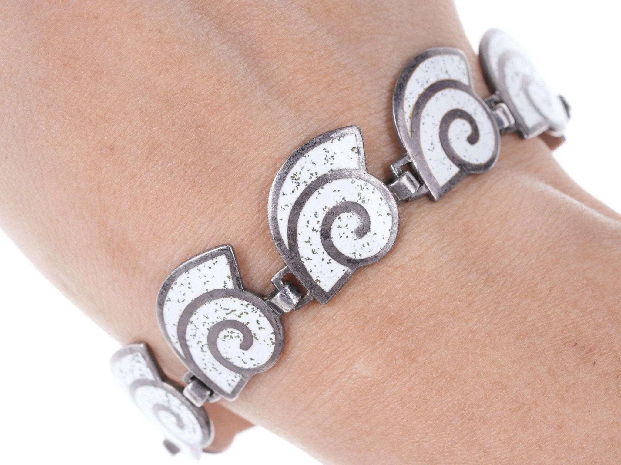 Margot De Taxco Emaille-Armband aus Sterlingsilber. Keine Probleme, keine Beschädigung des Zahnschmelzes.