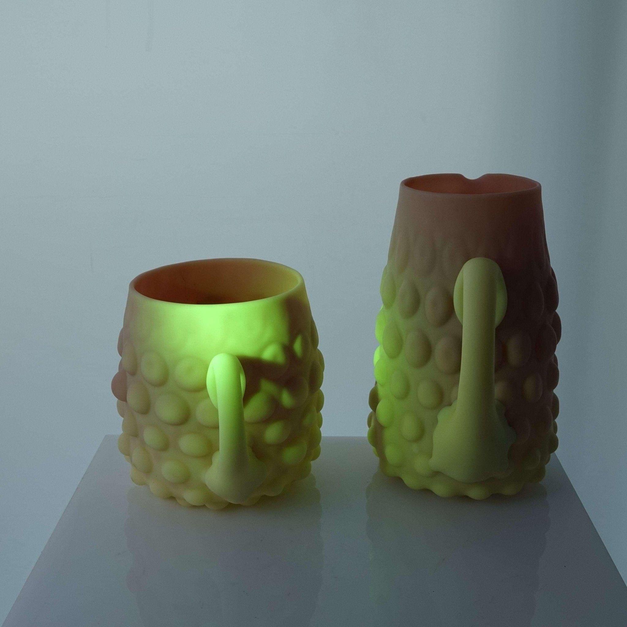 Burmesisch ist ein Uranglas. Die Formel zur Herstellung von burmesischem Glas enthält Uranoxid mit Zusatz von Goldtinktur. Das Uranoxid erzeugte die inhärente sanfte gelbe Farbe des burmesischen Glases. Aufgrund des hinzugefügten Goldes wurde die charakteristische rosafarbene Schattierung der Burmesen durch erneutes Erhitzen des Objekts im Ofen erzeugt. Die Verweildauer im Ofen bestimmt die Intensität der Farbe. Seltsamerweise nimmt das Objekt bei erneuter Hitzeeinwirkung wieder die ursprüngliche gelbe Farbe an.
