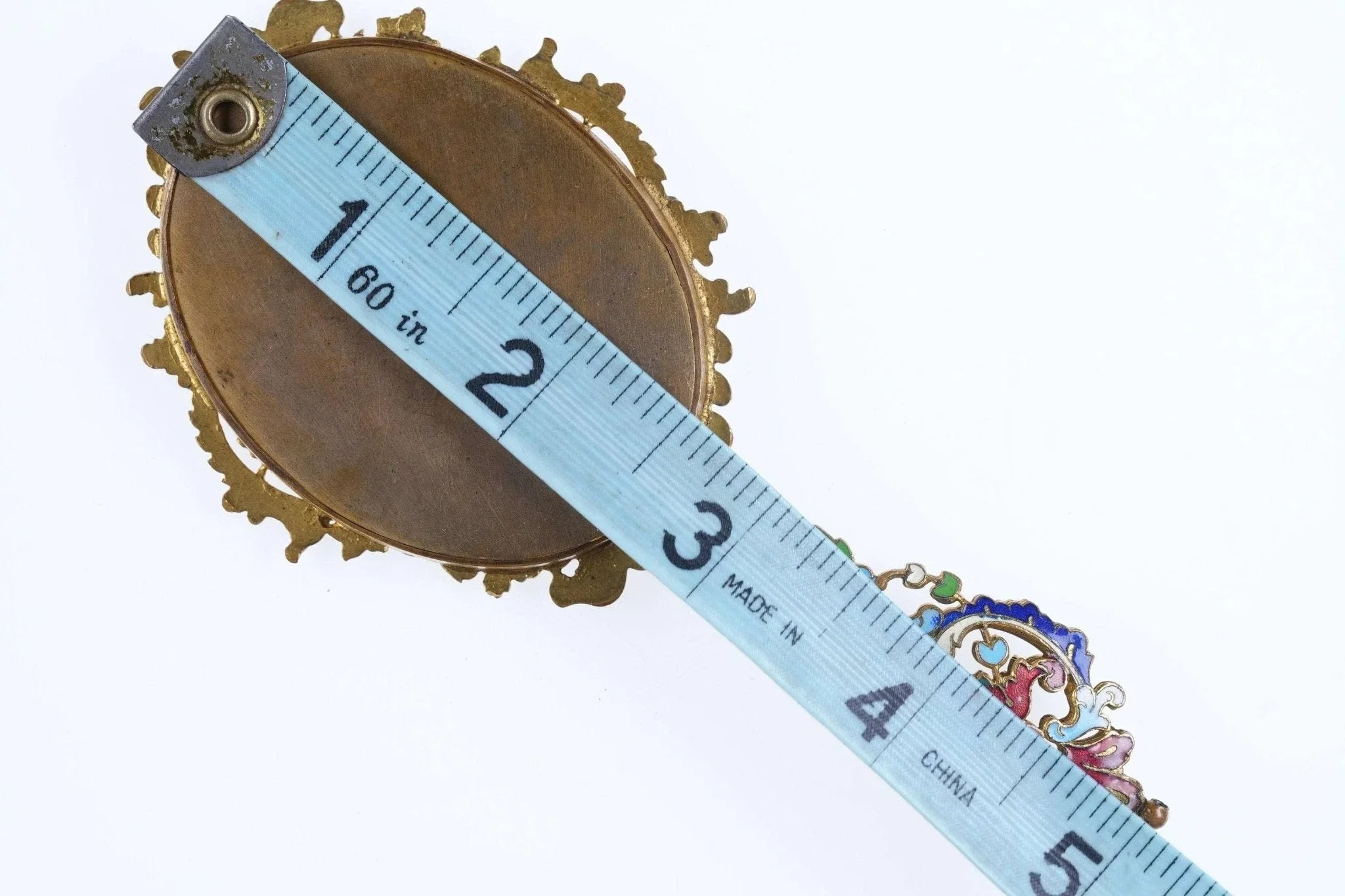 Um 1900 französischer Champleve-Diminutivspiegel für Anhänger oder Kind