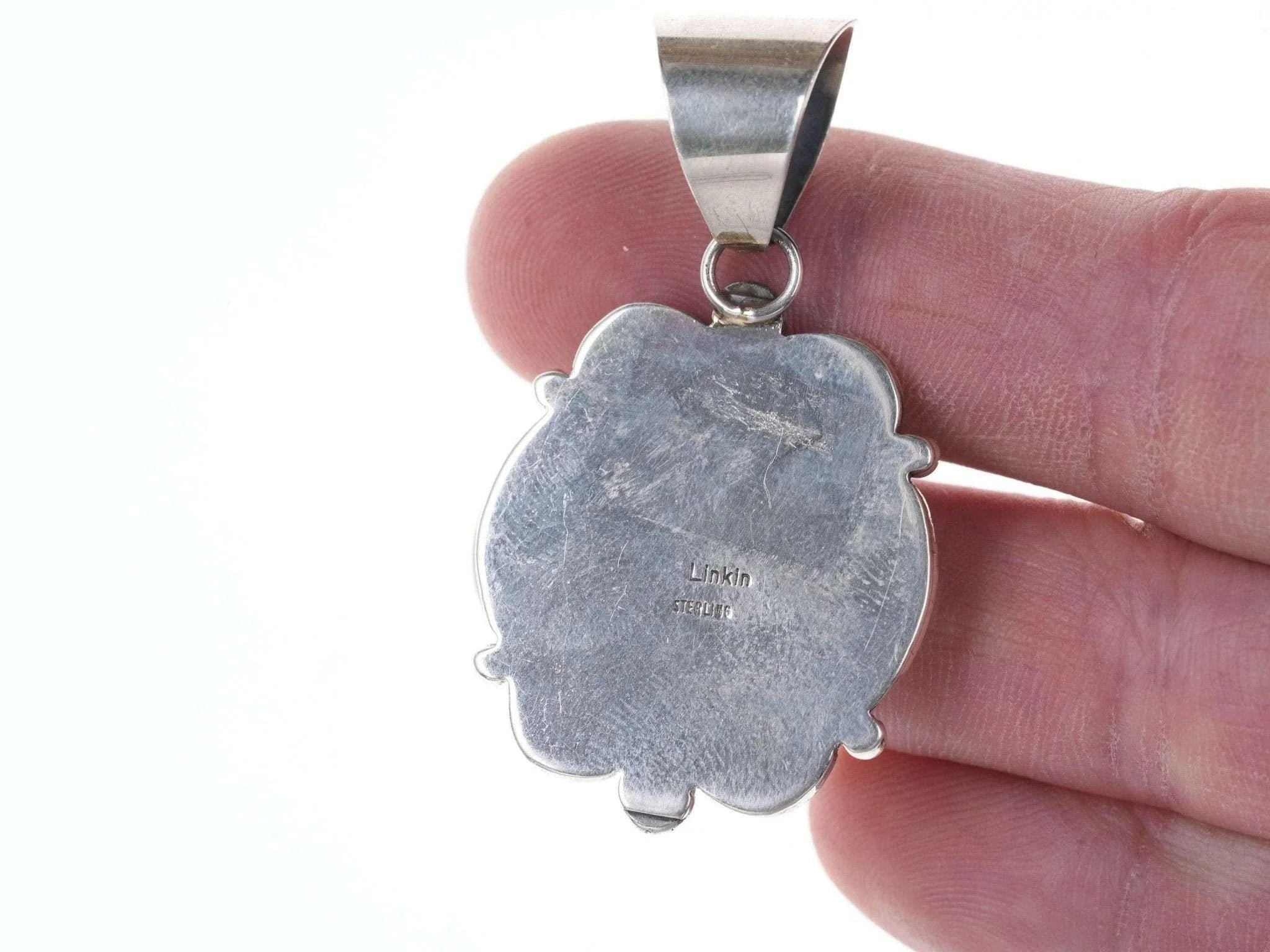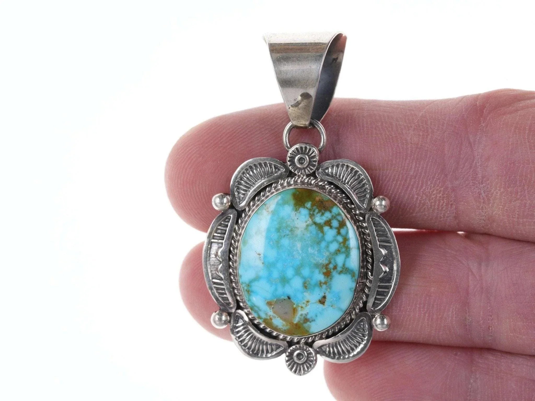 Ella Linkin Navajo Türkis Sterling Stampwork Anhänger. 2,25" hoch x 1,25" breit x 12,5 Gramm ohne Probleme, scheint ungetragen.