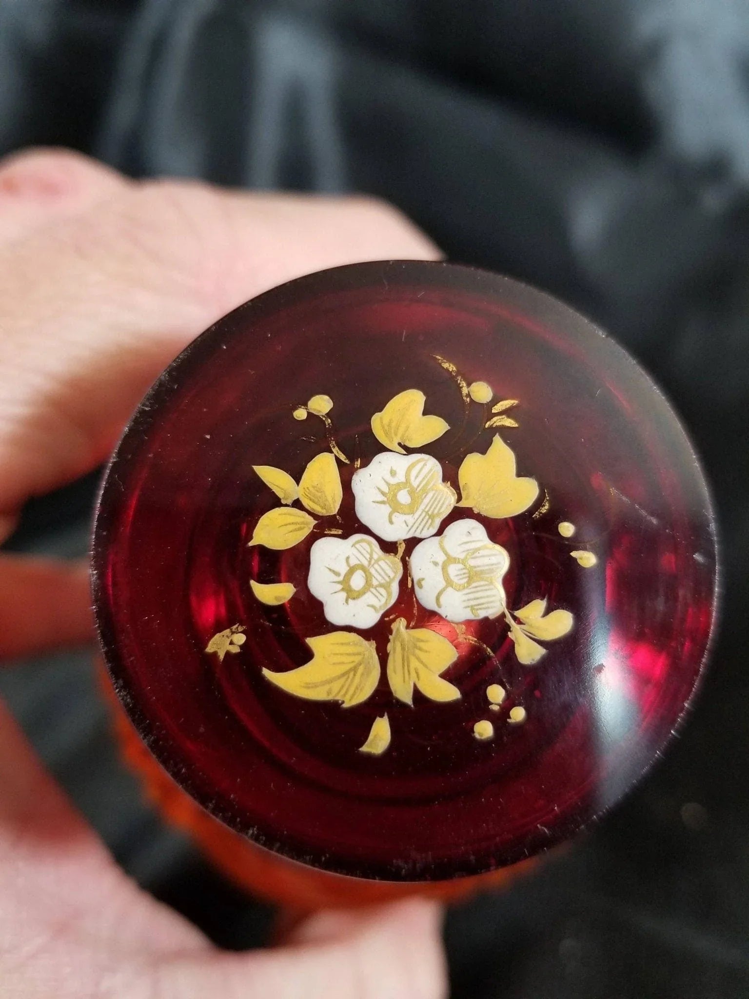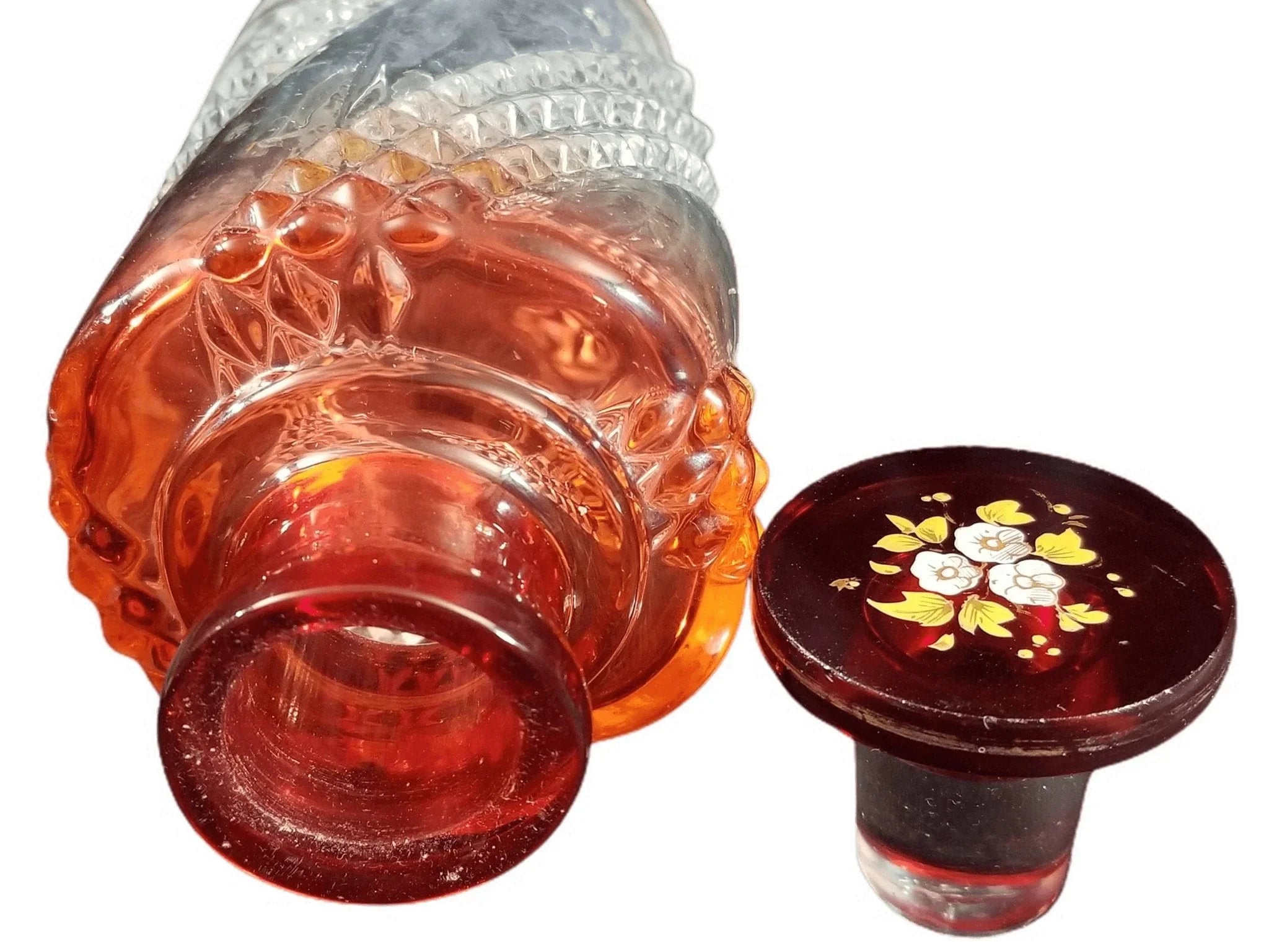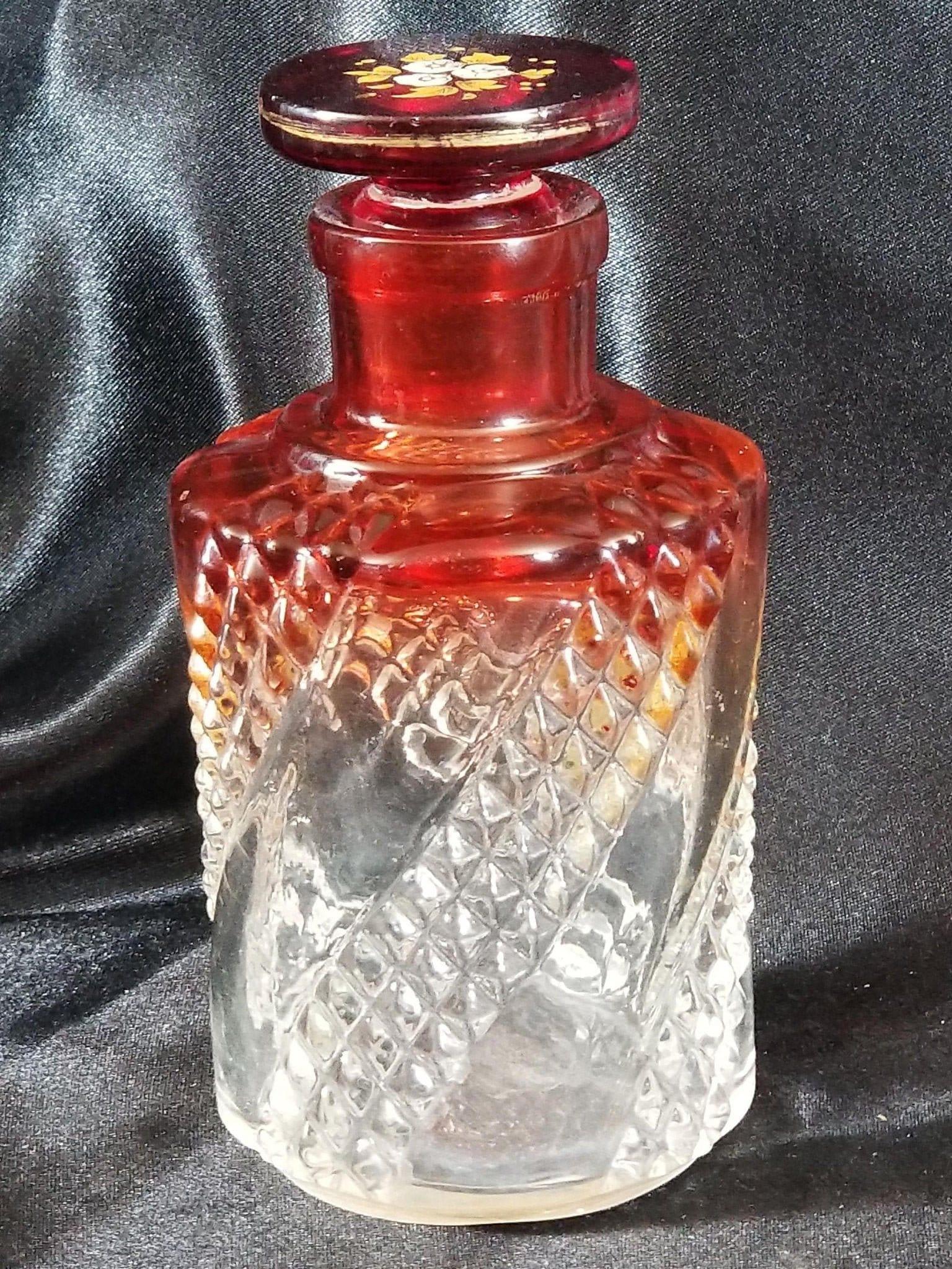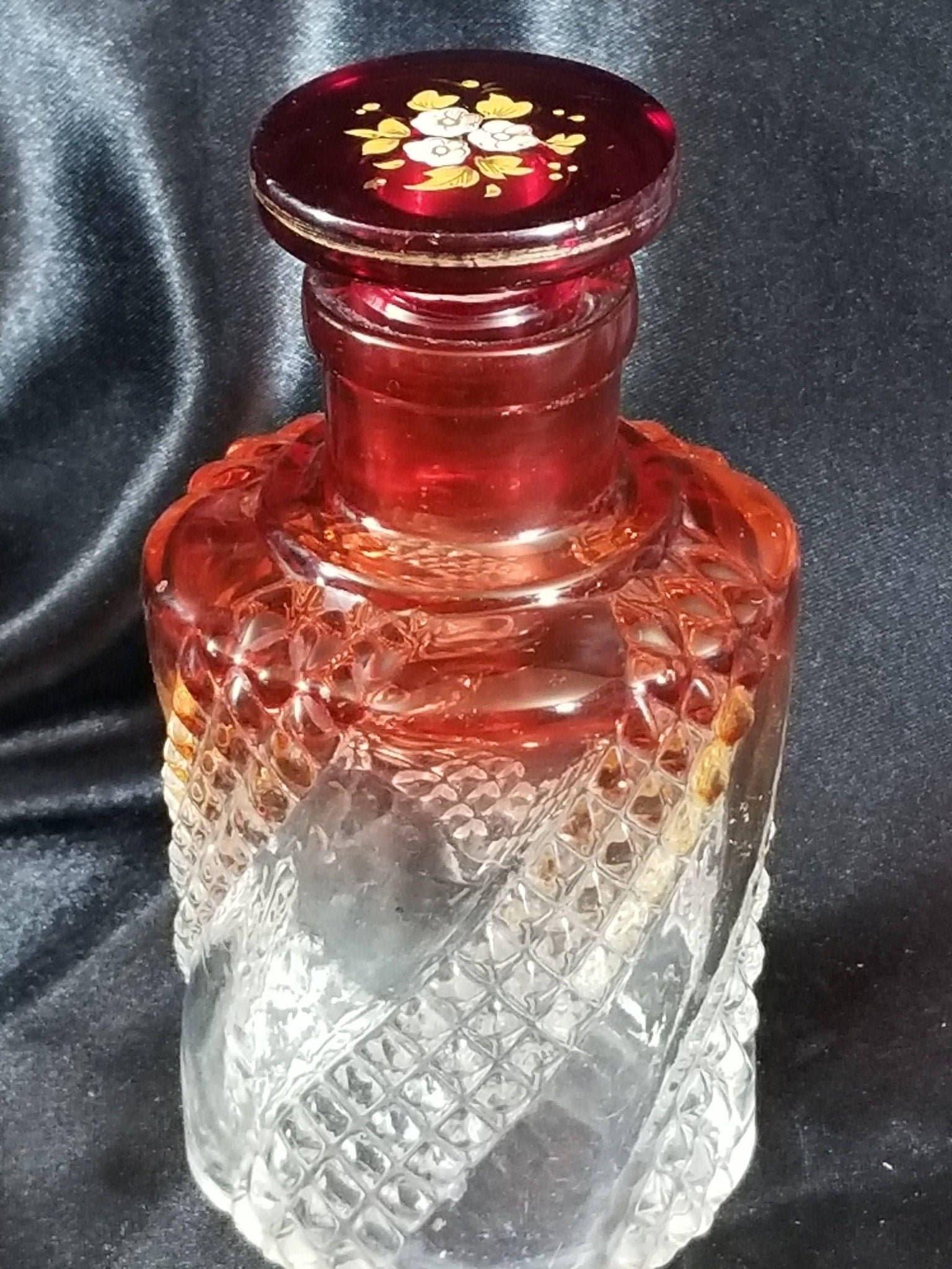 Baccarat Rose Tiente Rubina Duftflasche aus Glas mit emailliertem Deckel um 1890