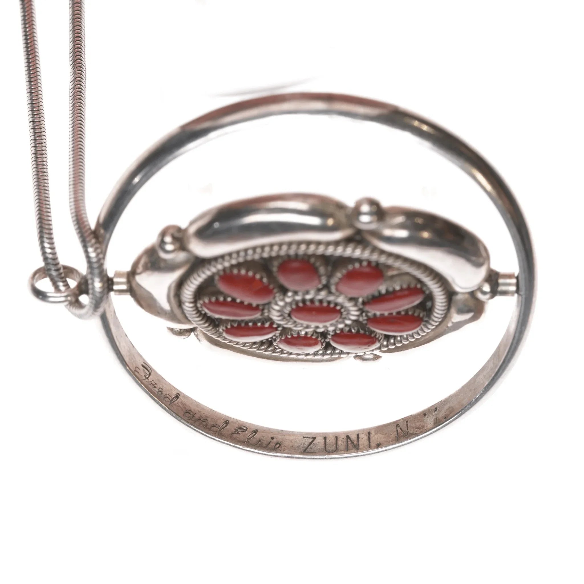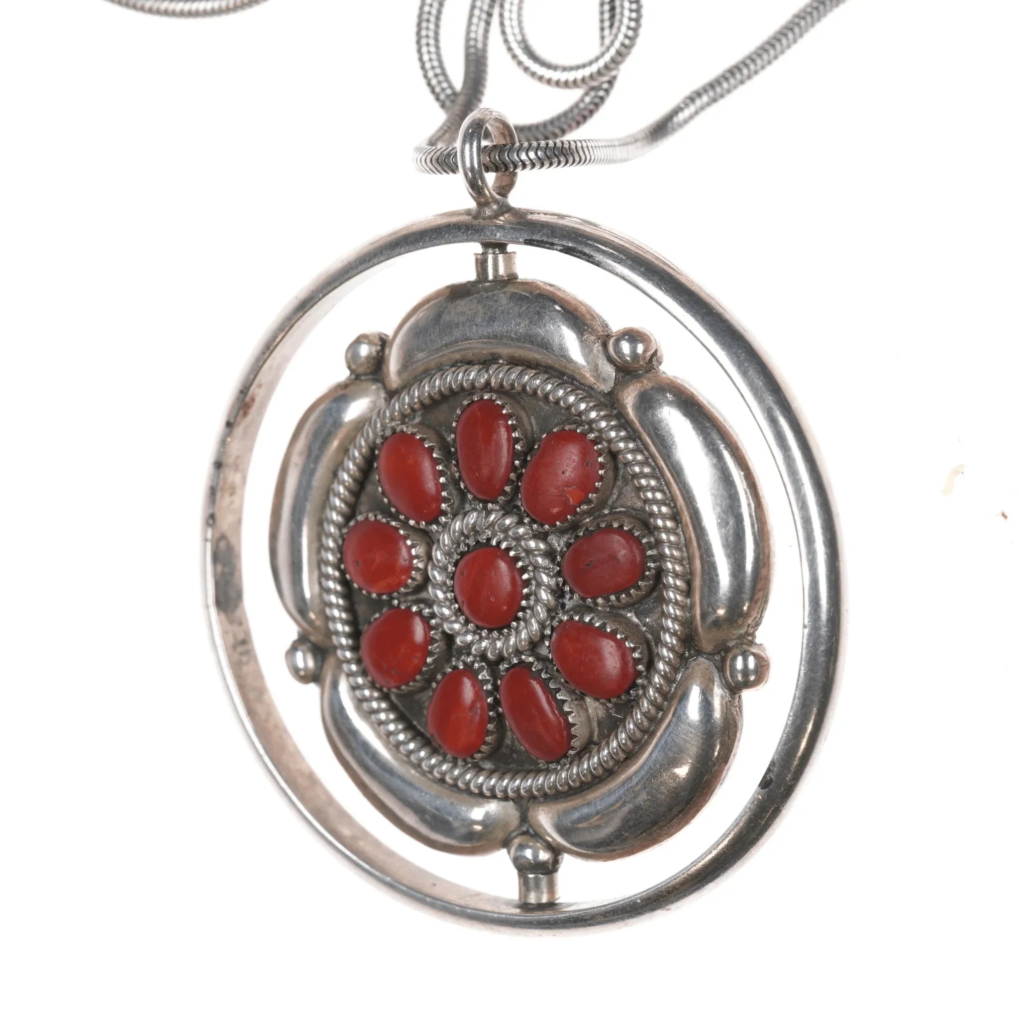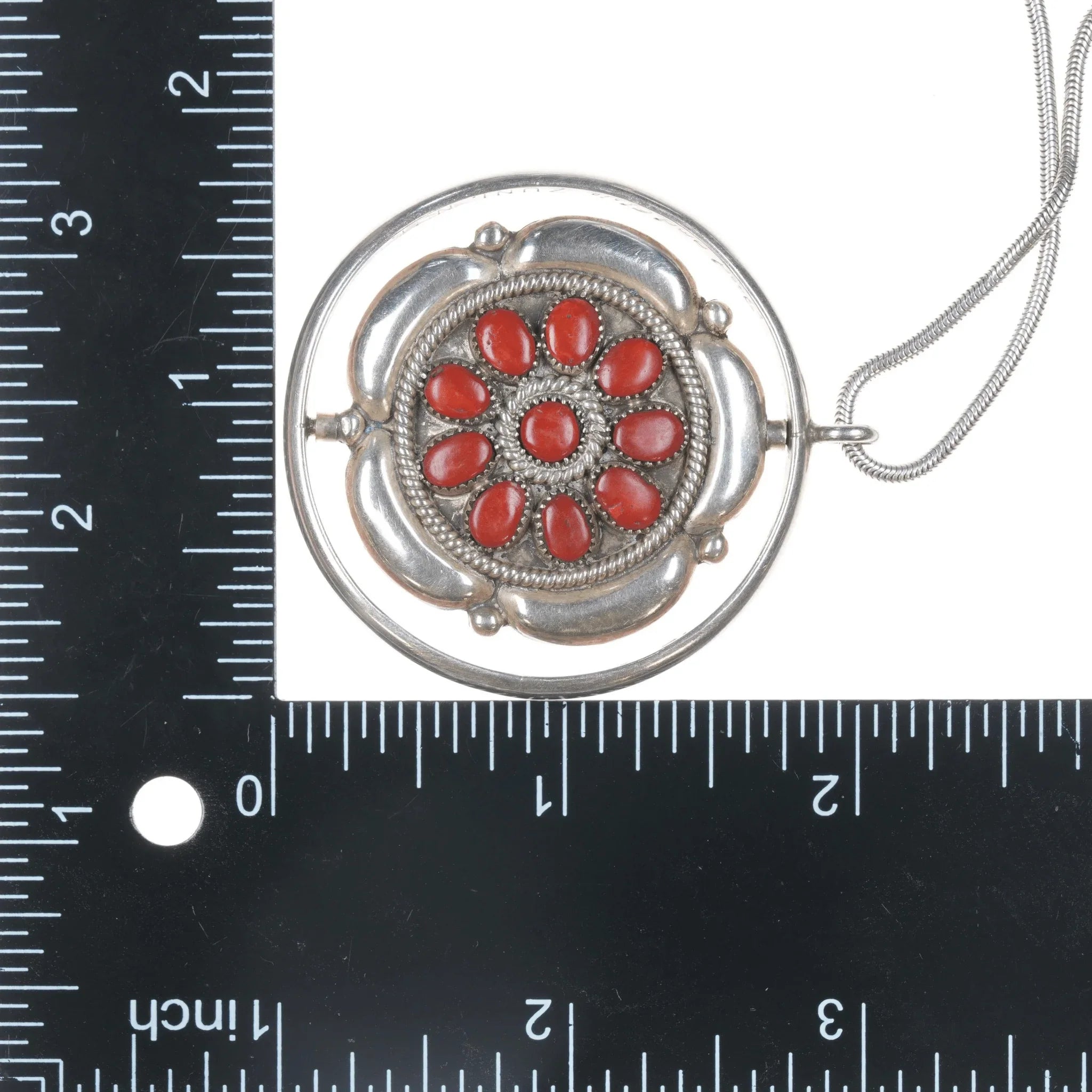 Fred & Elsie Lonconsello Reversible spinner pendant turquoise and coral sterling, throwing in free 24" Italian sterling necklace. No issues.