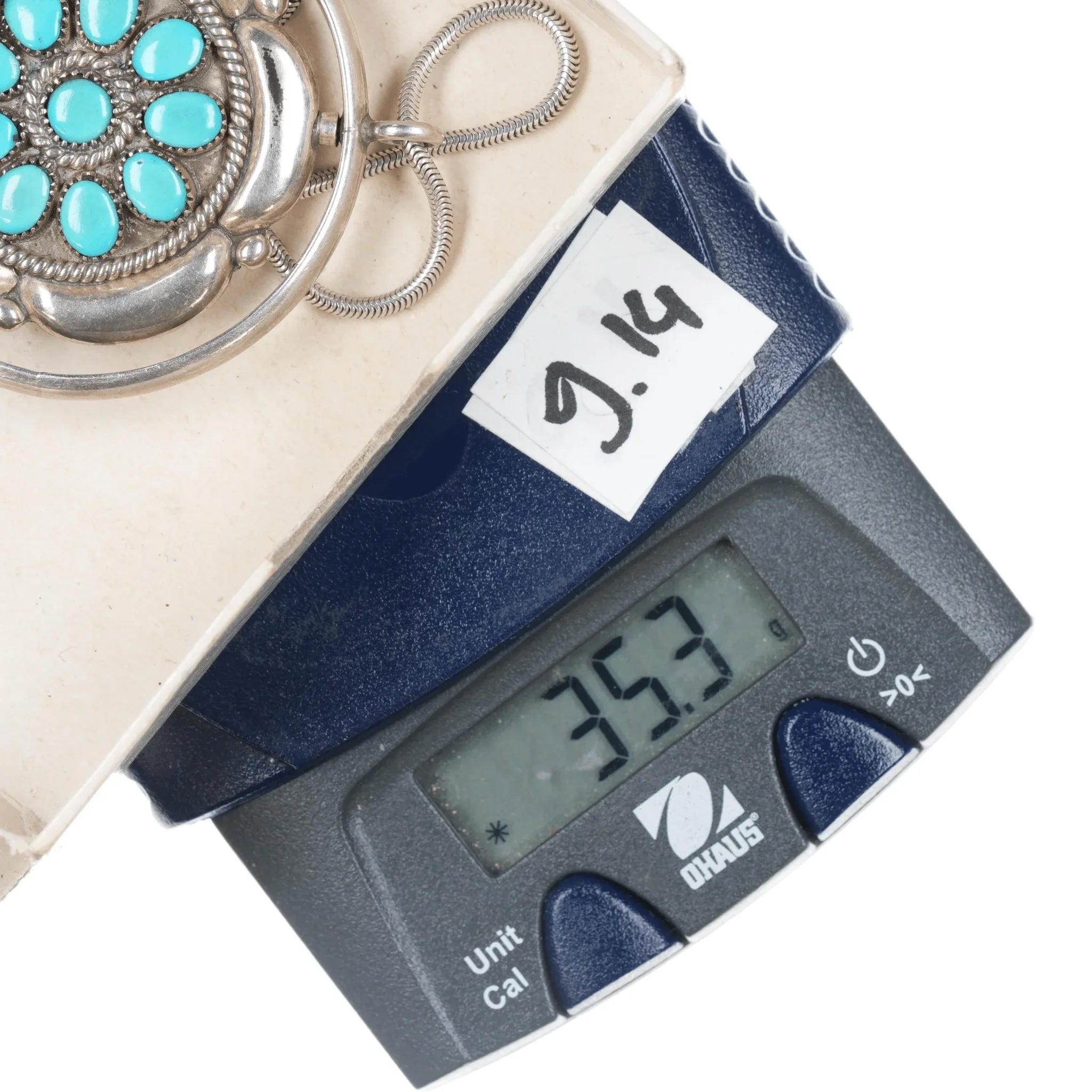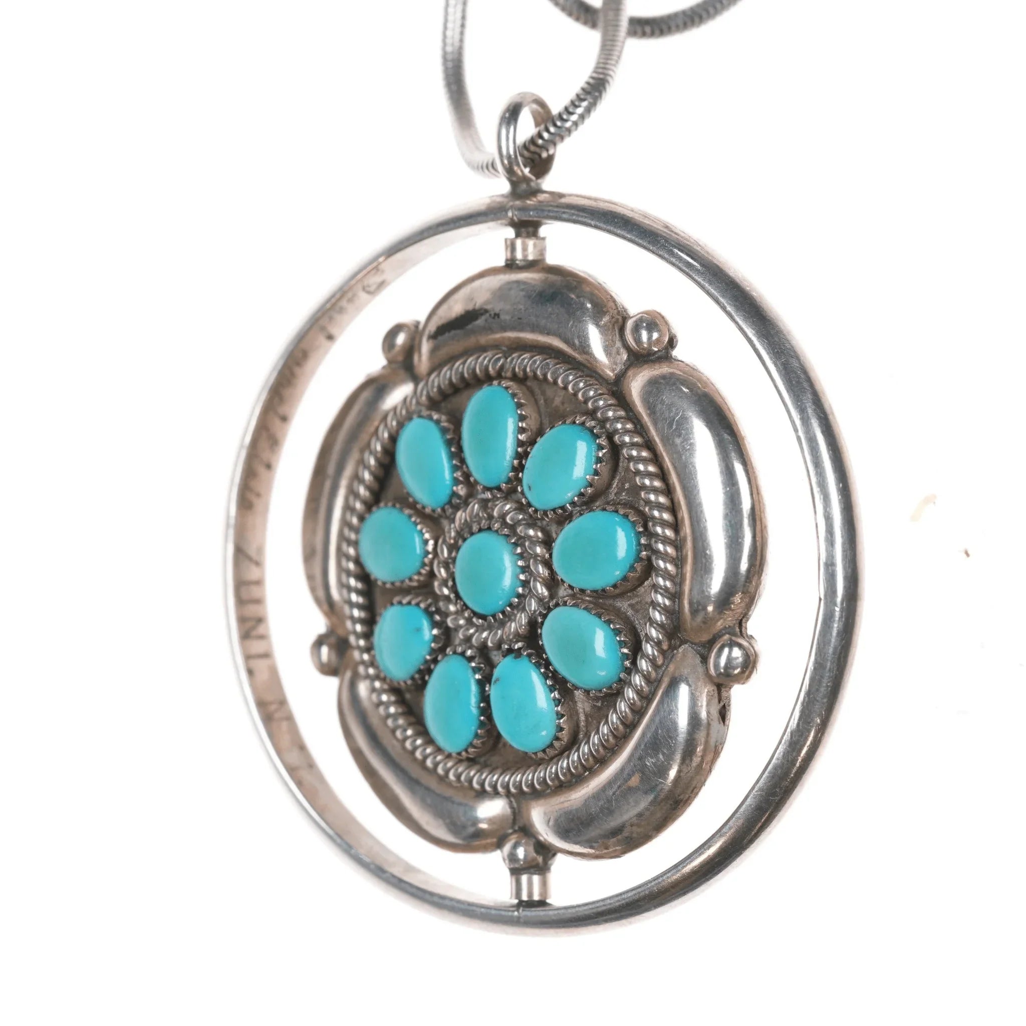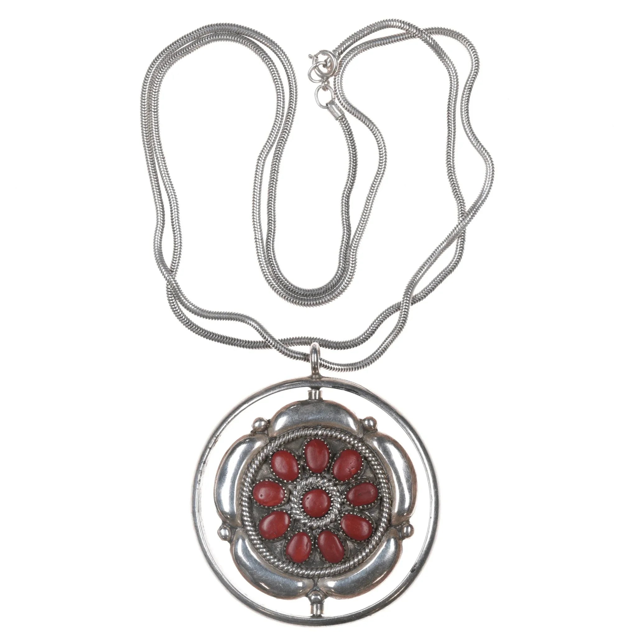 Fred & Elsie Lonconsello Reversible spinner pendant turquoise and coral sterling, throwing in free 24" Italian sterling necklace. No issues.