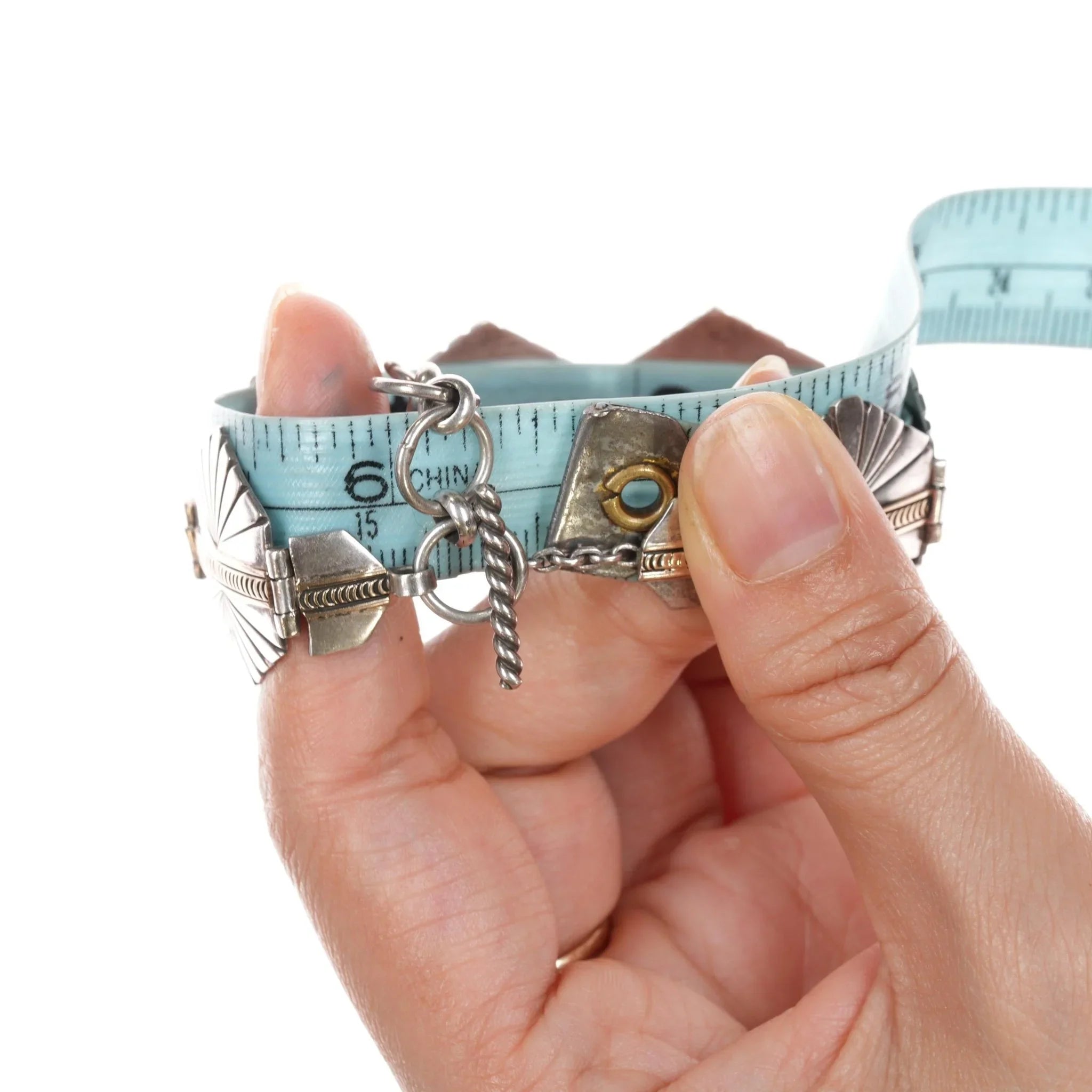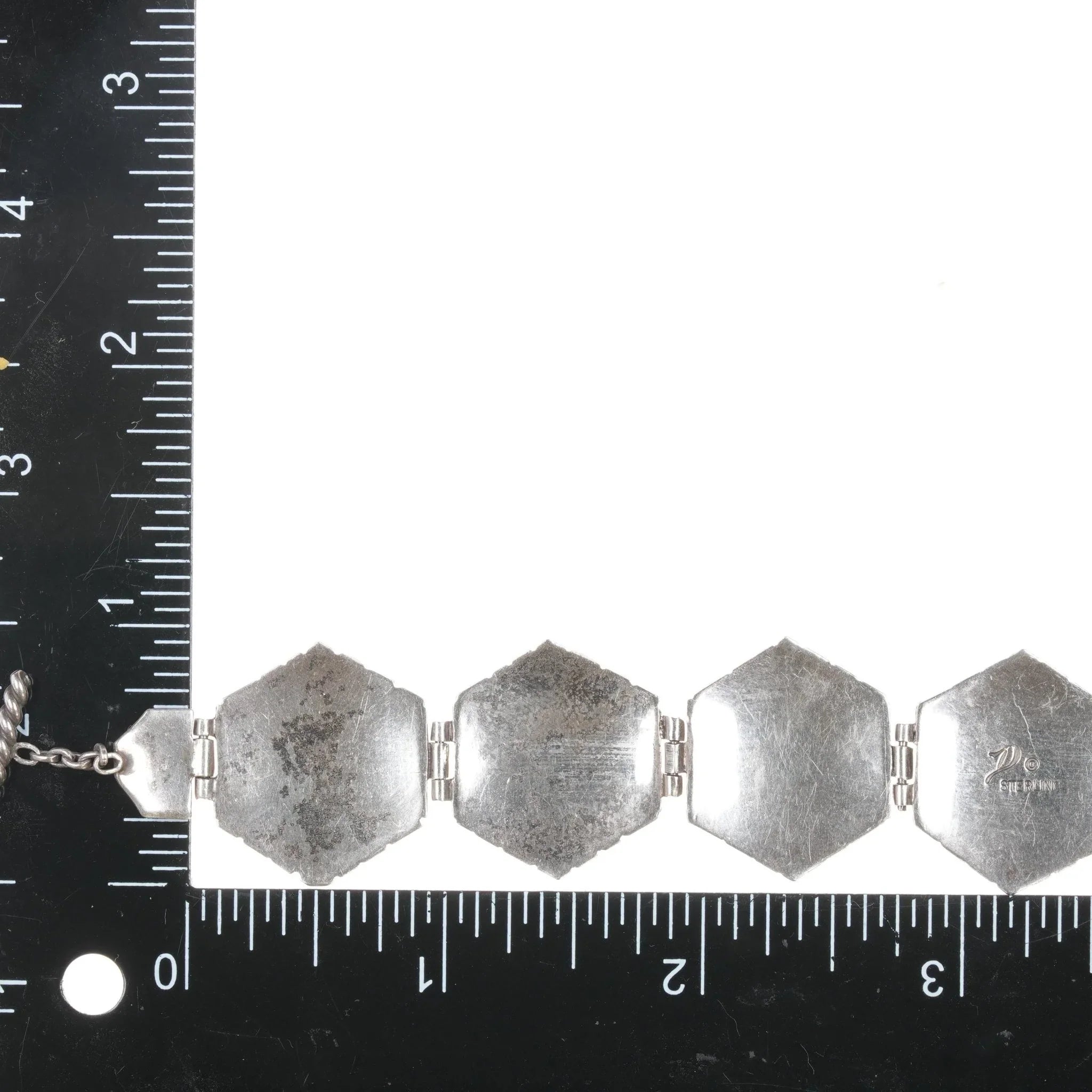 Marked or unmarked as shown in pics, weight<br>and other measurements in pics. Sorry but my jewelry is stored in a secure<br>location and cannot be accessed for more pictures, videos, or measurements until<br>sold. If you look at pictures/description your question should be answered.<br>Thank you so much for your time and consideration!<br><br>All precious metals are tested and guaranteed, any Native American jewelry<br>referred to as Silver or Sterling is guaranteed to be a minimum of 90% (coin)<br>silver and possibly higher content. Anything marked is guaranteed to be what<br>it‘s marked, most bracelets are photographed on a 6" wrist (non hairy), rings<br>photographed on the appropriate sized finger when possible. With bracelets if<br>the measurement is not given in the description then inside circumference is<br>shown where the metal meets the number on the the cloth tape measure.