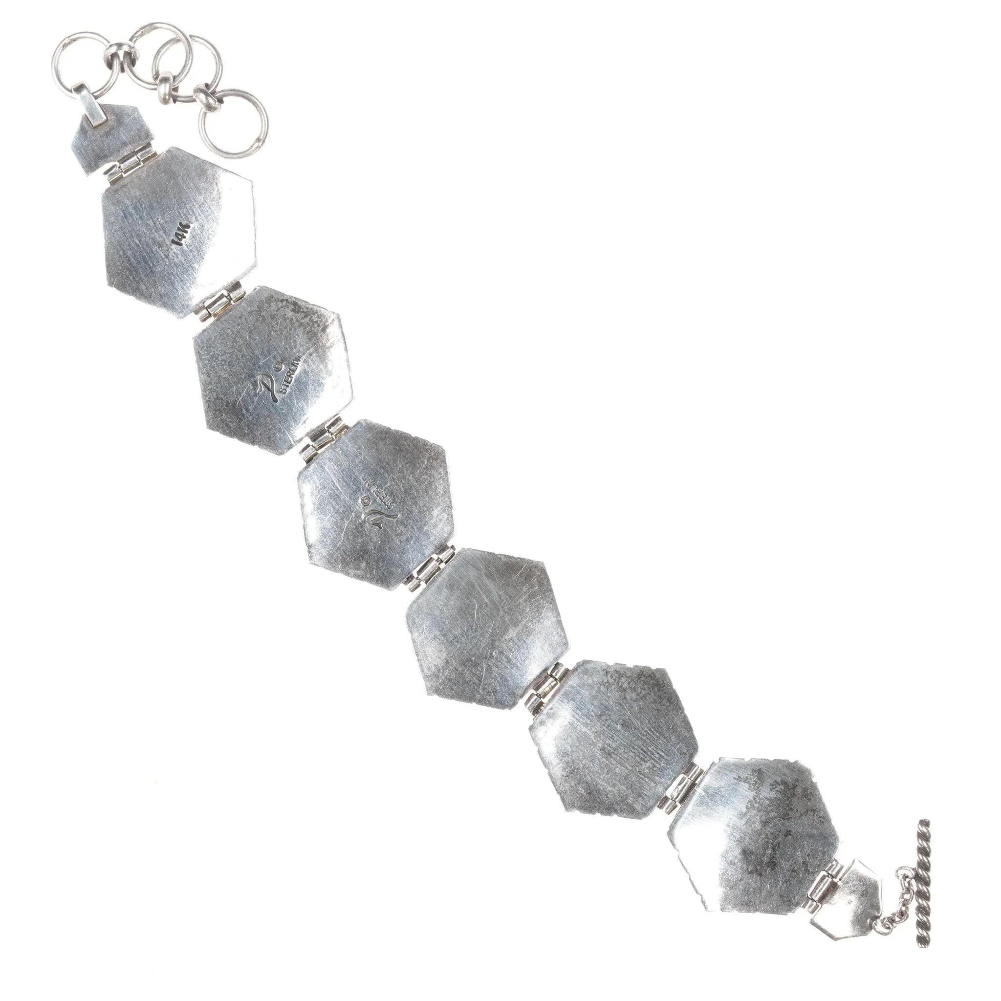 Joe Delgarito Navajo sterling/14k 6.75"-8" Adjustable link bracelet, weight and measurements in pics.