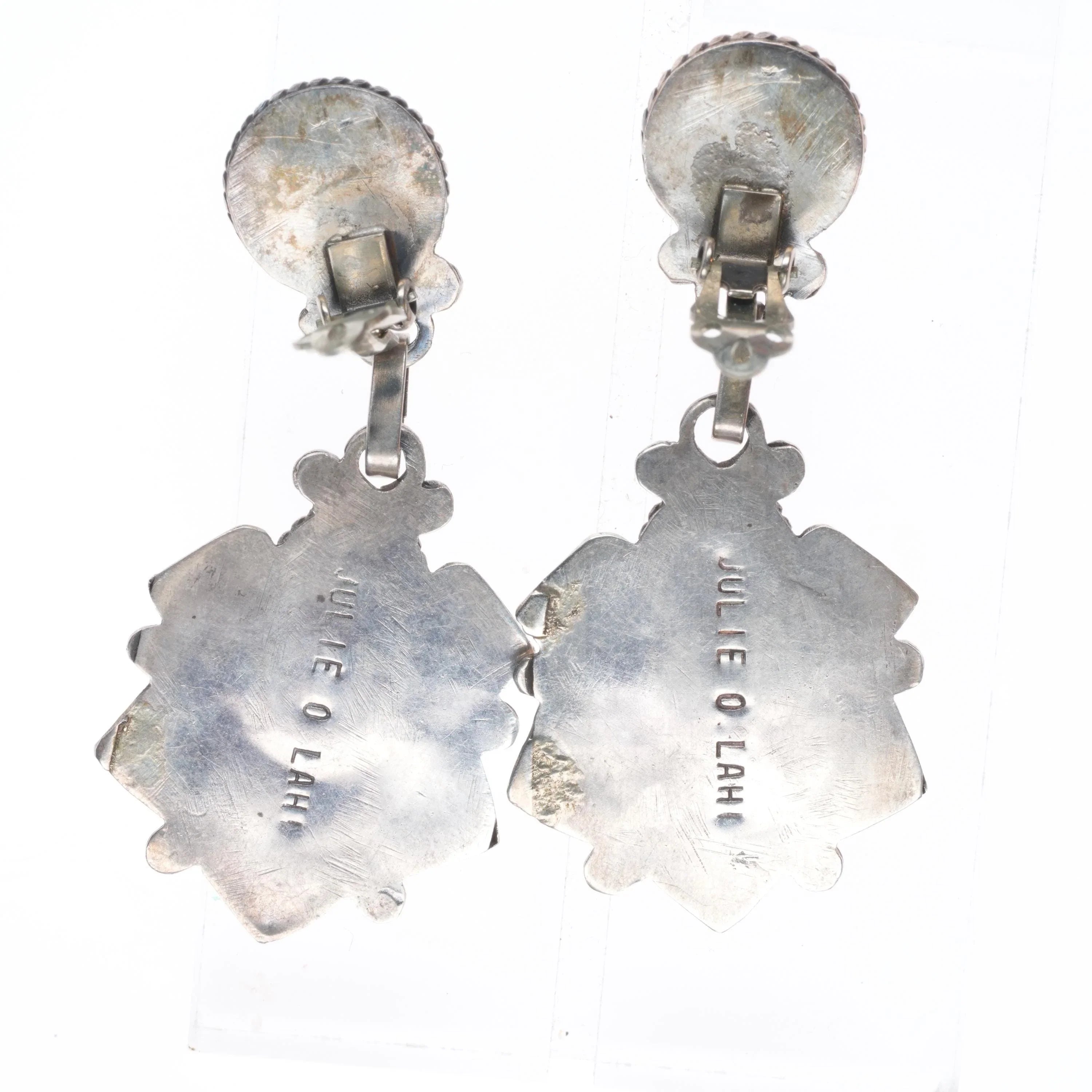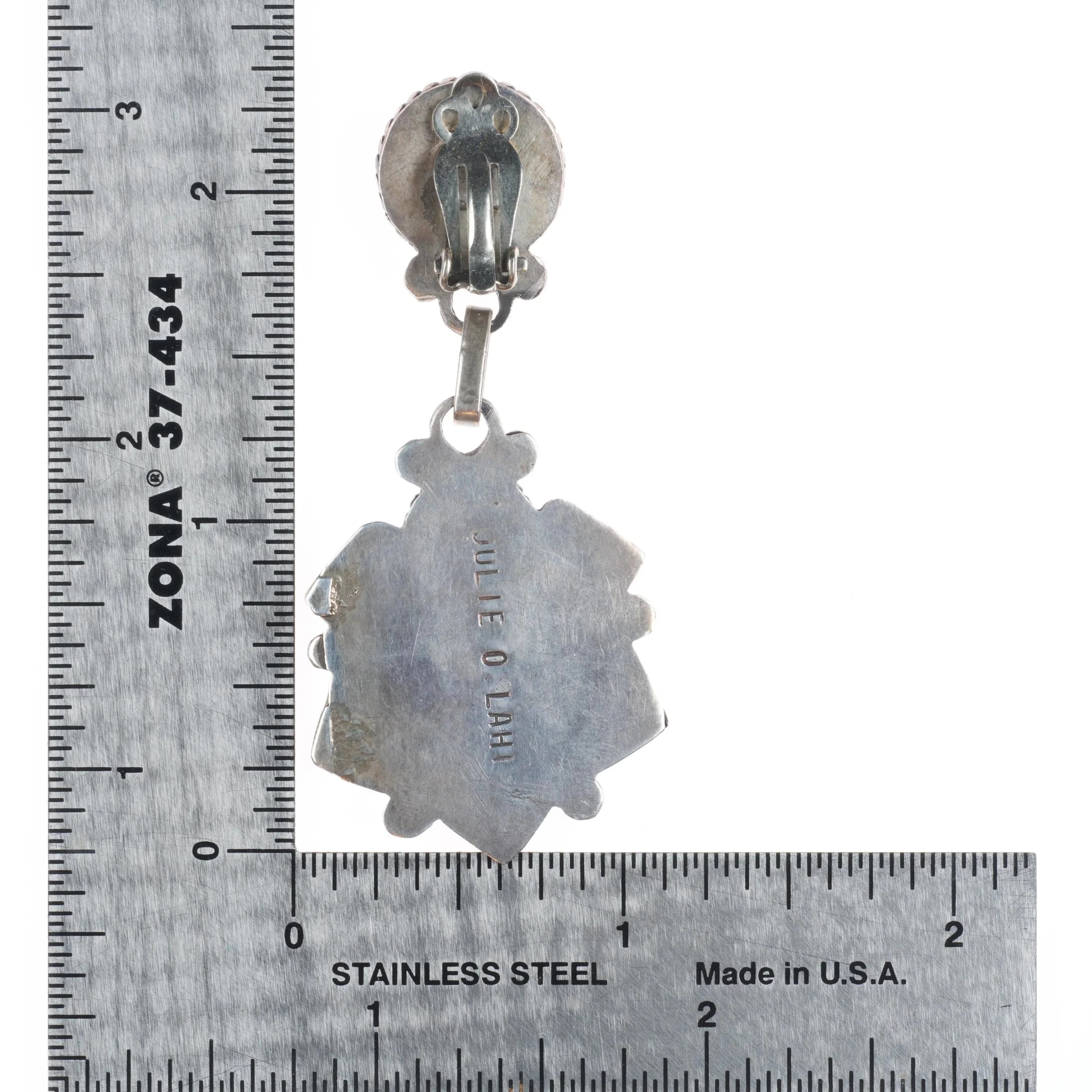Julie Ondelacey Lahi Zuni sterling silver earrings w/nice natural turquoise. Great earrings with no issues, tested and guaranteed solid sterling silver, any marks detected, weight, and measurements will be shown in the pictures, strong springs on clips.