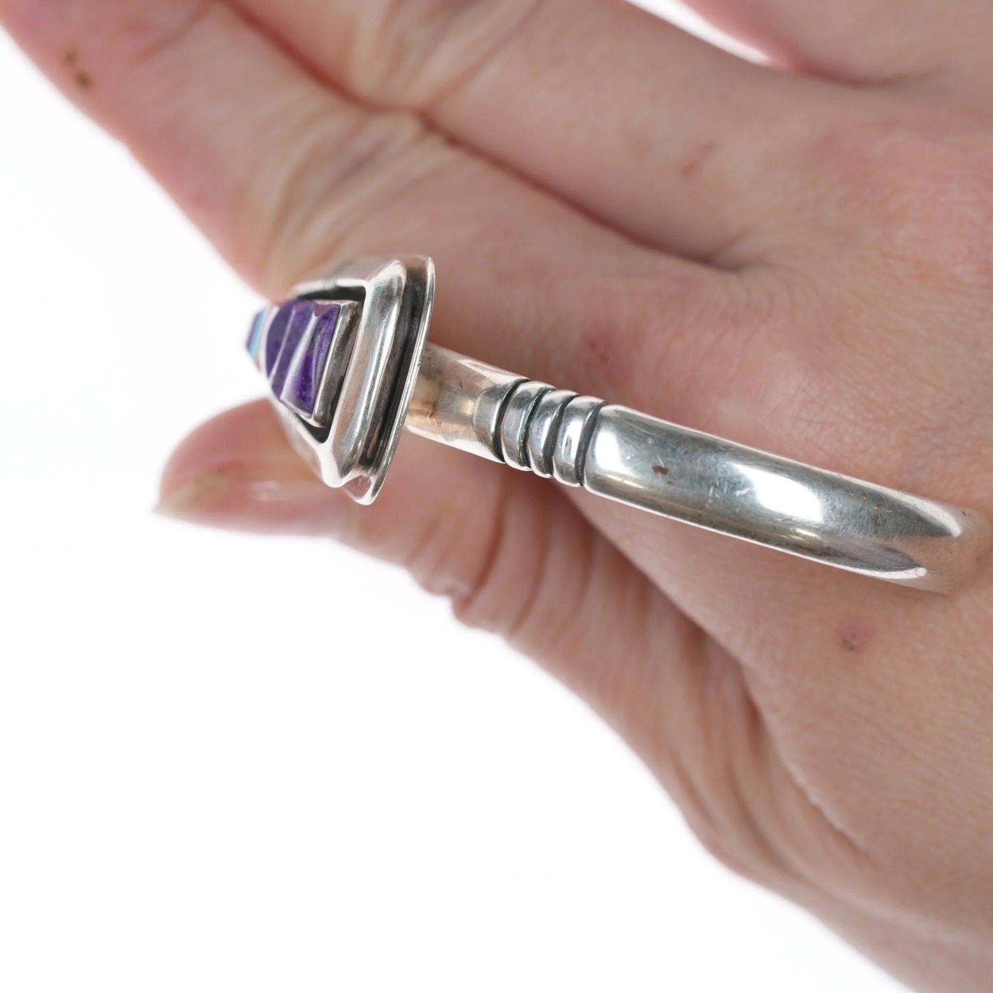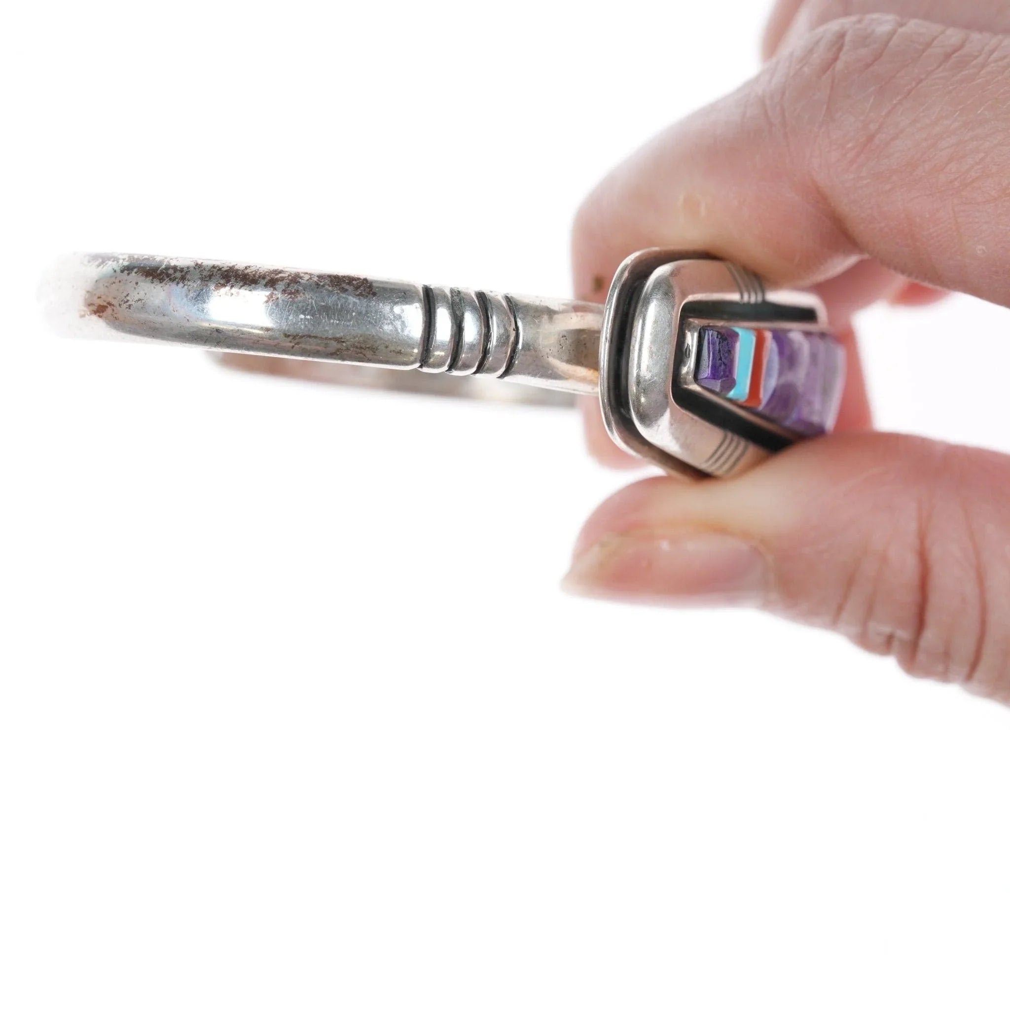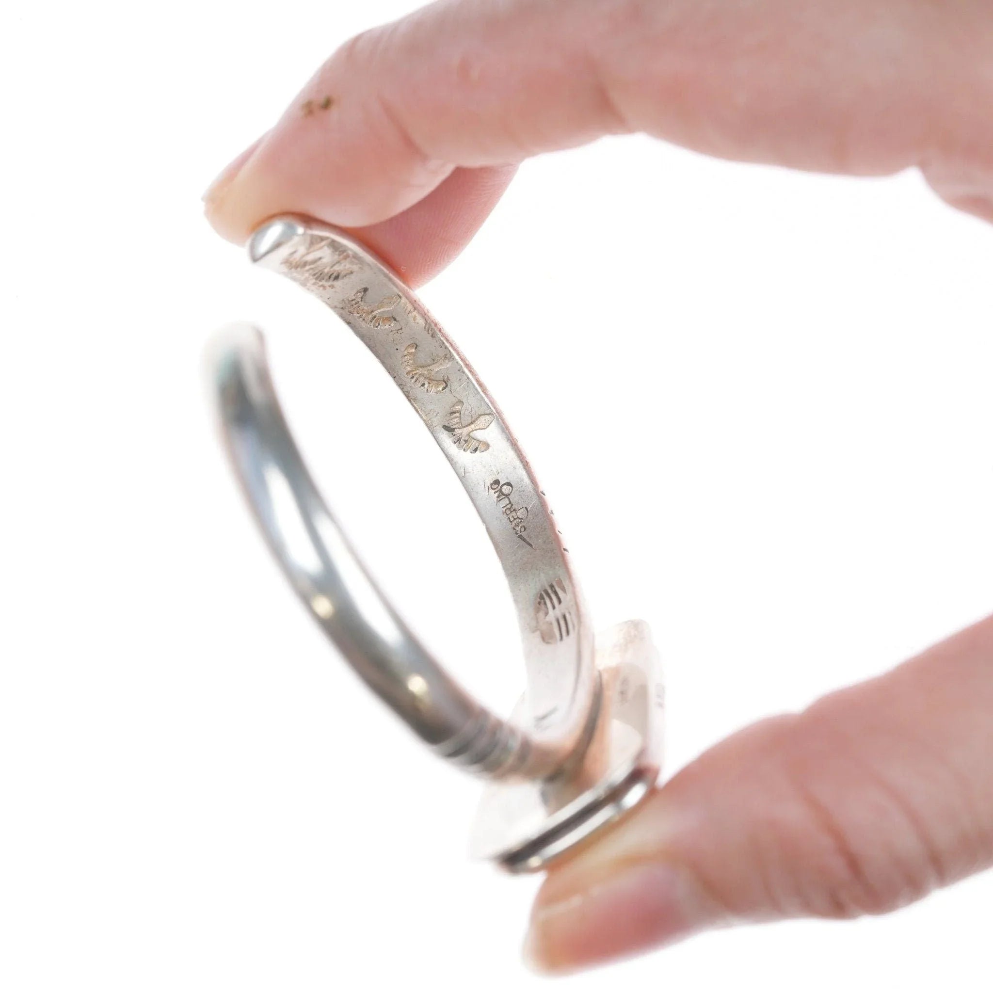 Alle Edelmetalle werden geprüft und garantiert. Jeder als Silber oder Sterling bezeichnete Schmuck der amerikanischen Ureinwohner besteht garantiert zu mindestens 90 % (Münz-)Silber und möglicherweise zu einem höheren Gehalt. Alles, was markiert ist, ist garantiert das, was markiert ist. Die meisten Armbänder werden an einem 6-Zoll-Handgelenk fotografiert, Ringe, wenn möglich, an einem Finger der entsprechenden Größe. Bei Armbändern, wenn das Maß nicht in der Beschreibung angegeben ist, wird der Innenumfang dort angezeigt, wo das Metall trifft die Zahl auf dem Stoffmaßband.