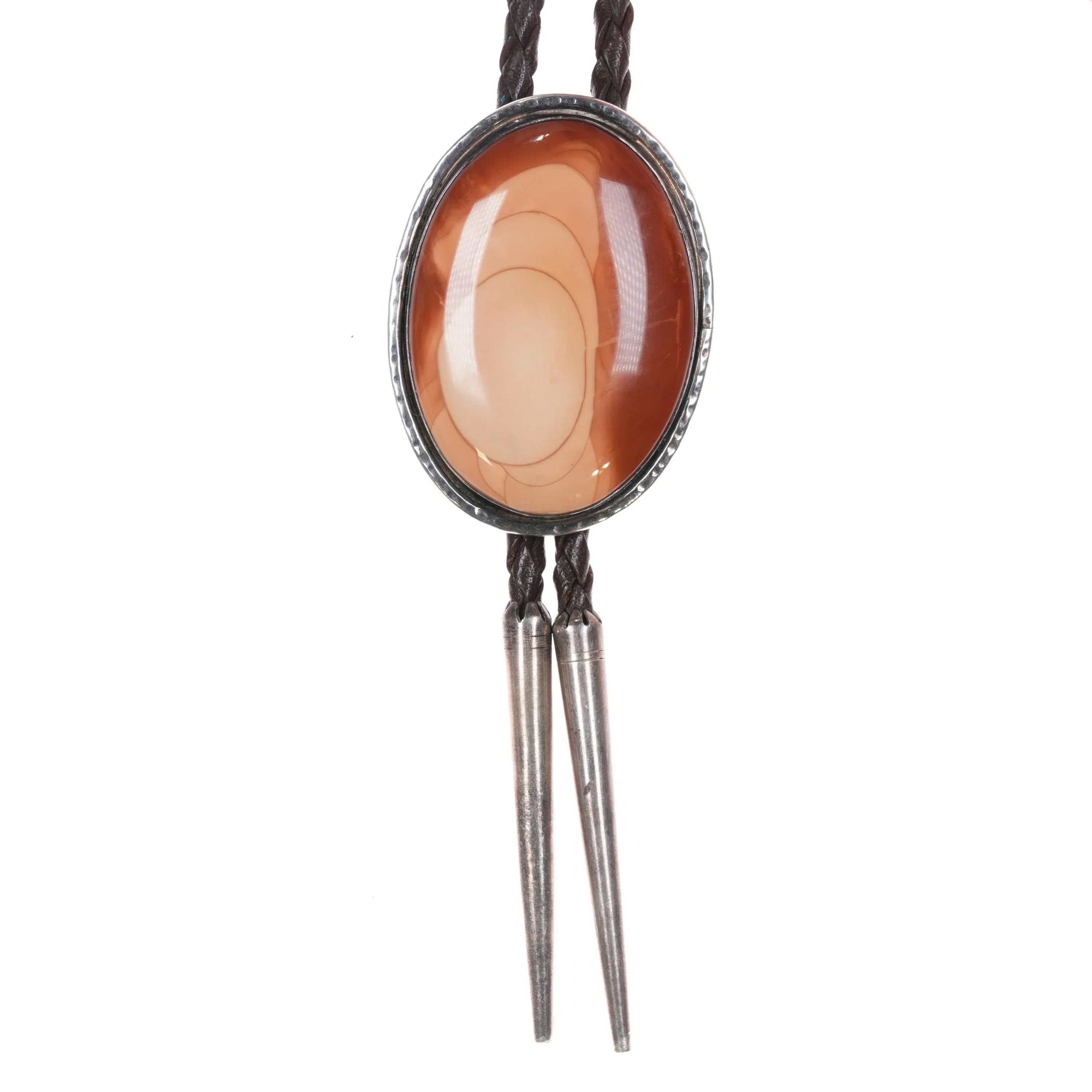 Large 1970's BJS Sterling silver and jasper southwestern bolo tie