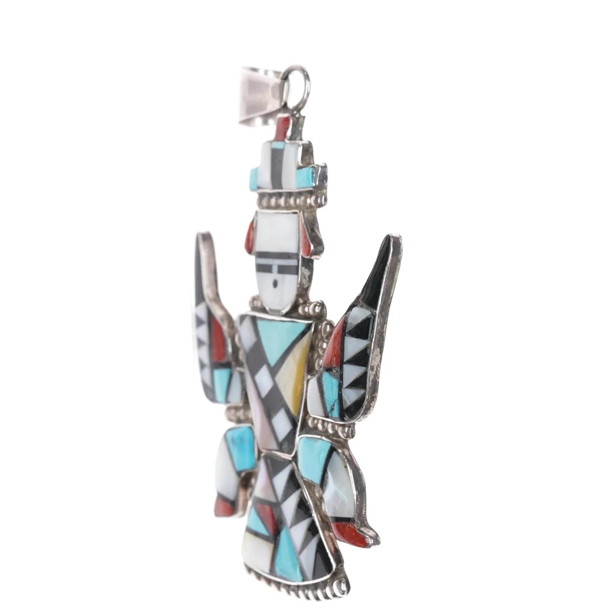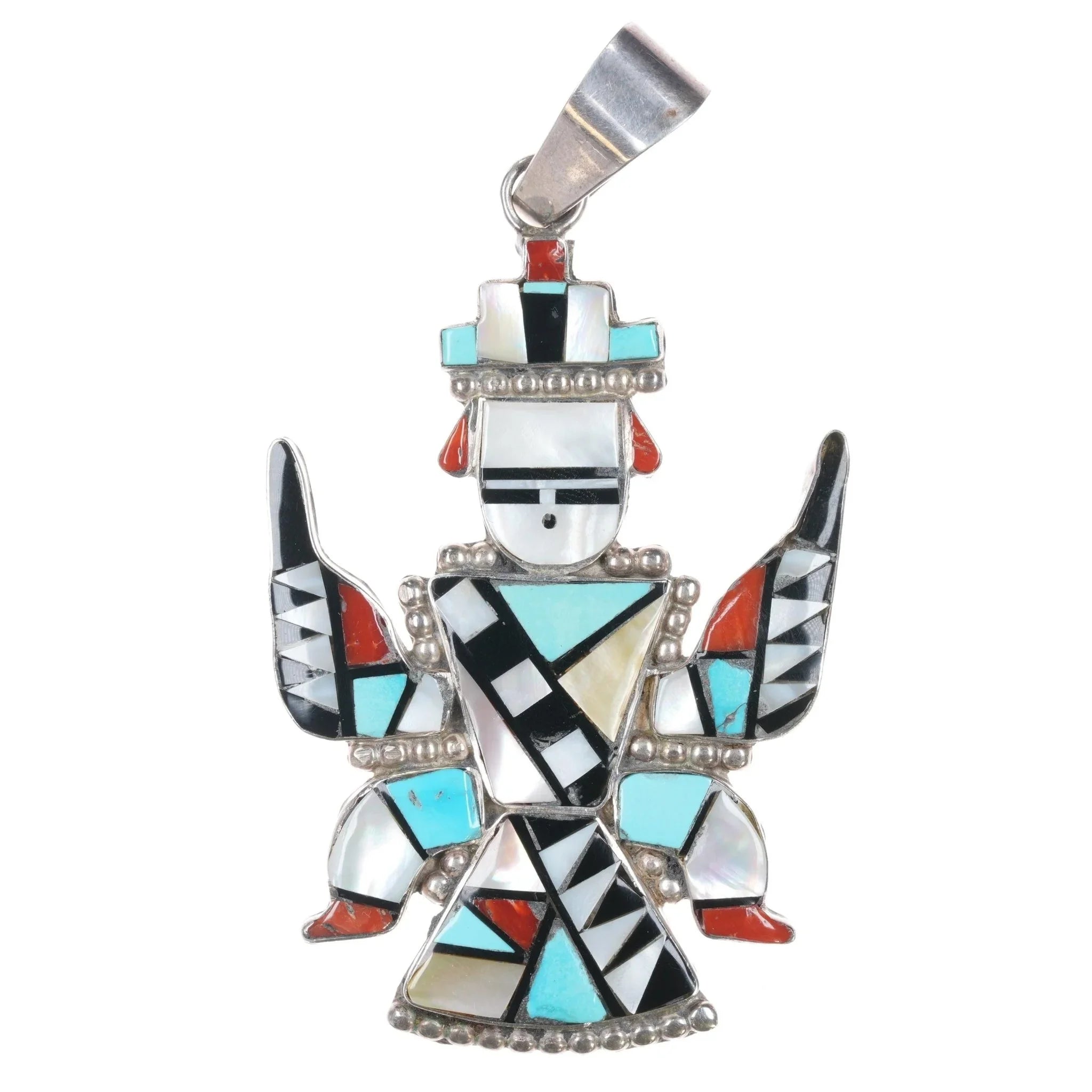 Large Marisa Selecion Zuni sterling intarsia inlay knifewing pendant