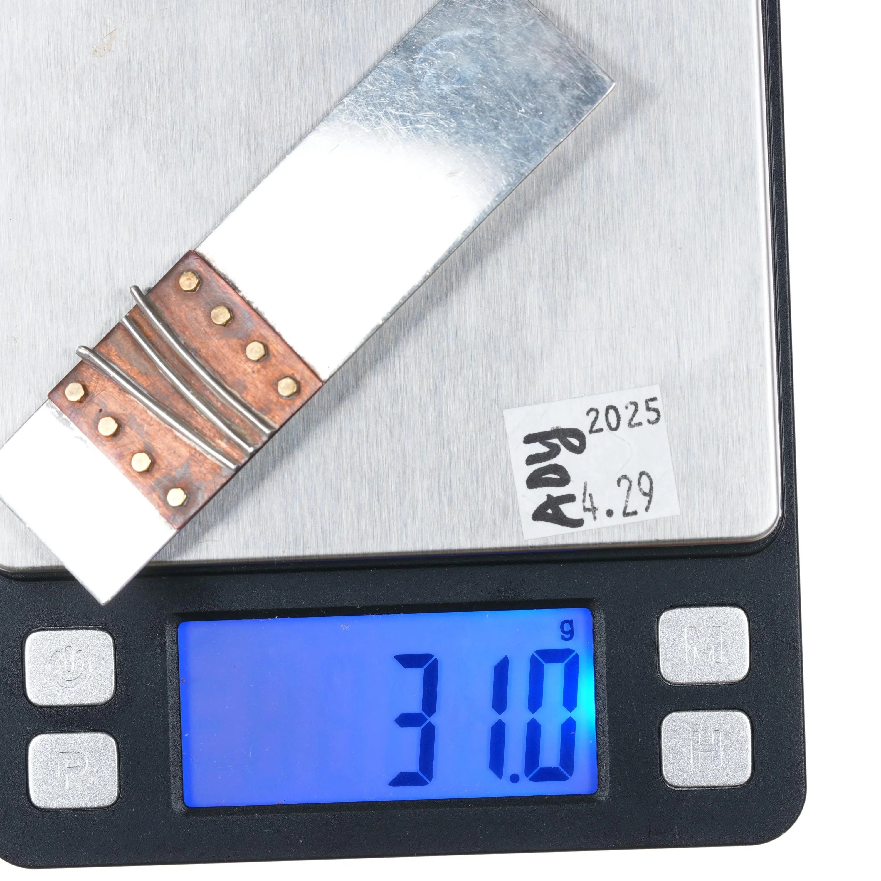 Large TT Machine Age Modernist sterling silver copper/brass art pin . Weight and measurements in pics, all solid sterling. NO issues. This is fabulous but doesn‘t look like much in the pics. Very well designed and engineered sculptural pin. Unresearched.