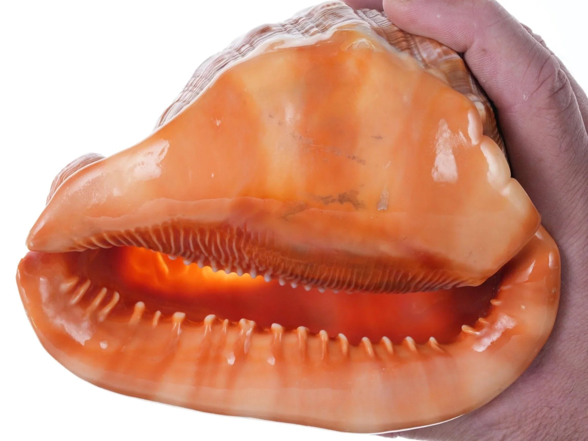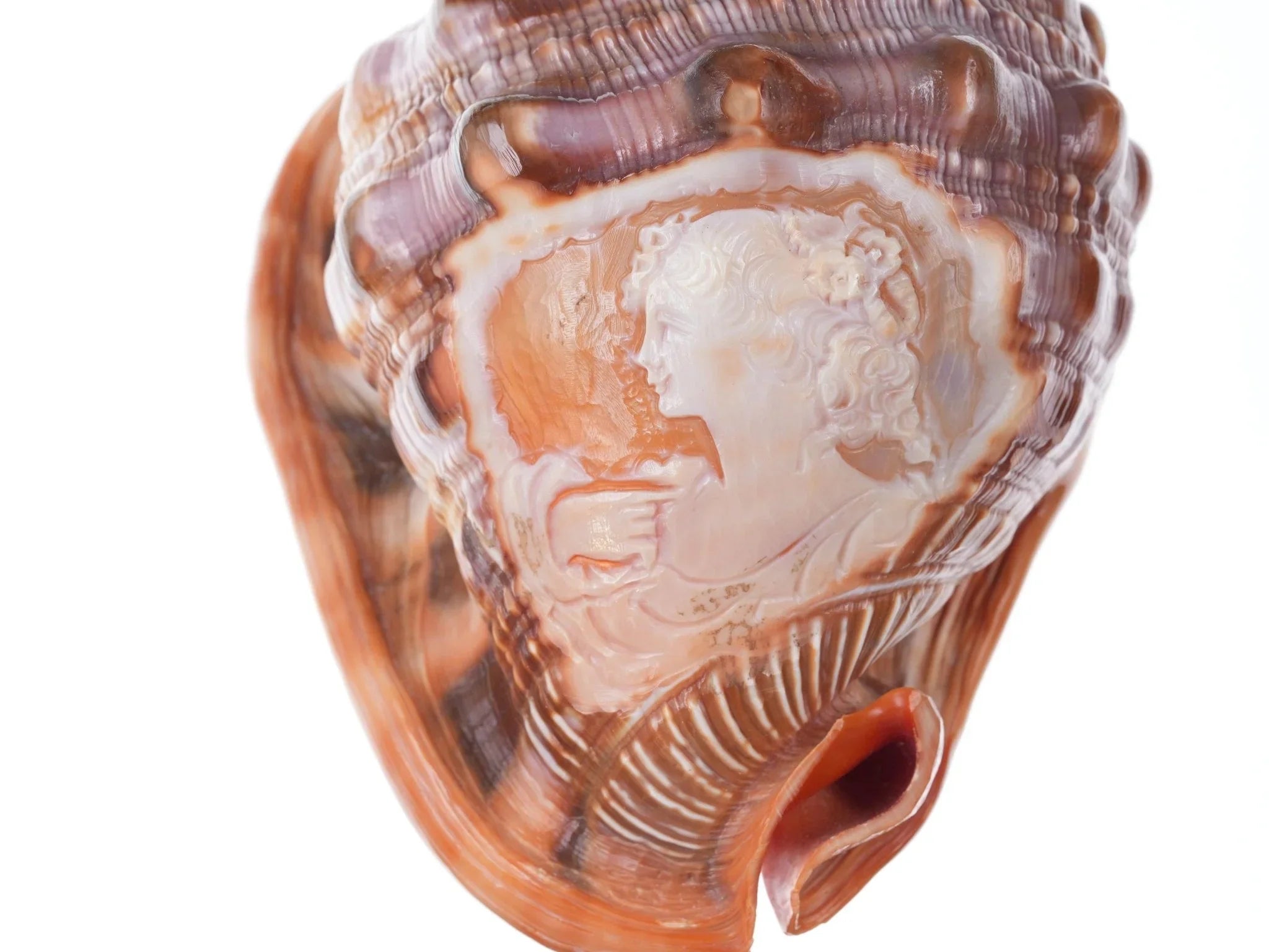 Large Vintage Carved Cameo Conch Shell 6" long x 4.5" wide x 3.75" tall with no<br>cracks or chips, lots of carving, fantastic shell from the first half of the<br>20th century. tw147