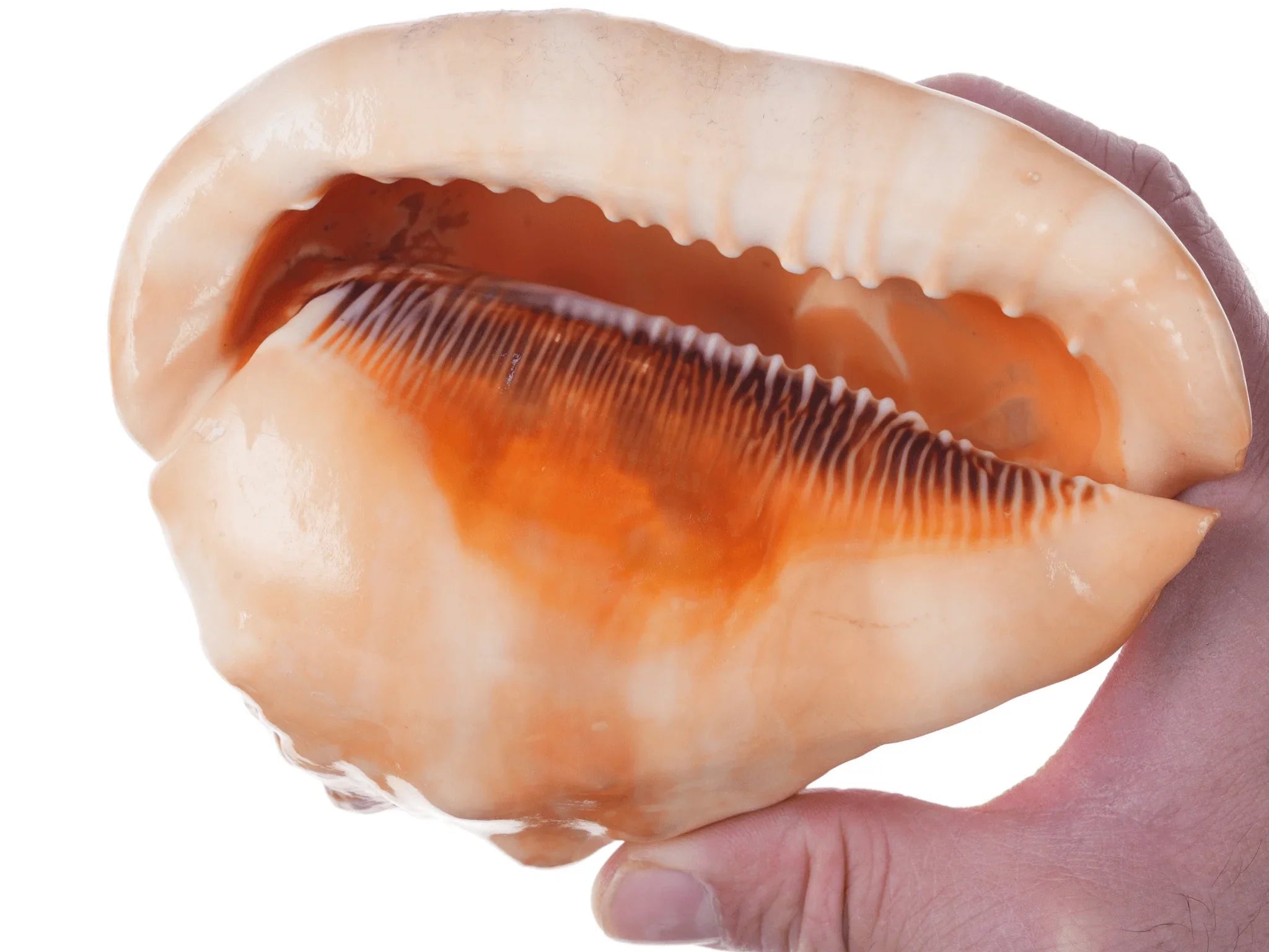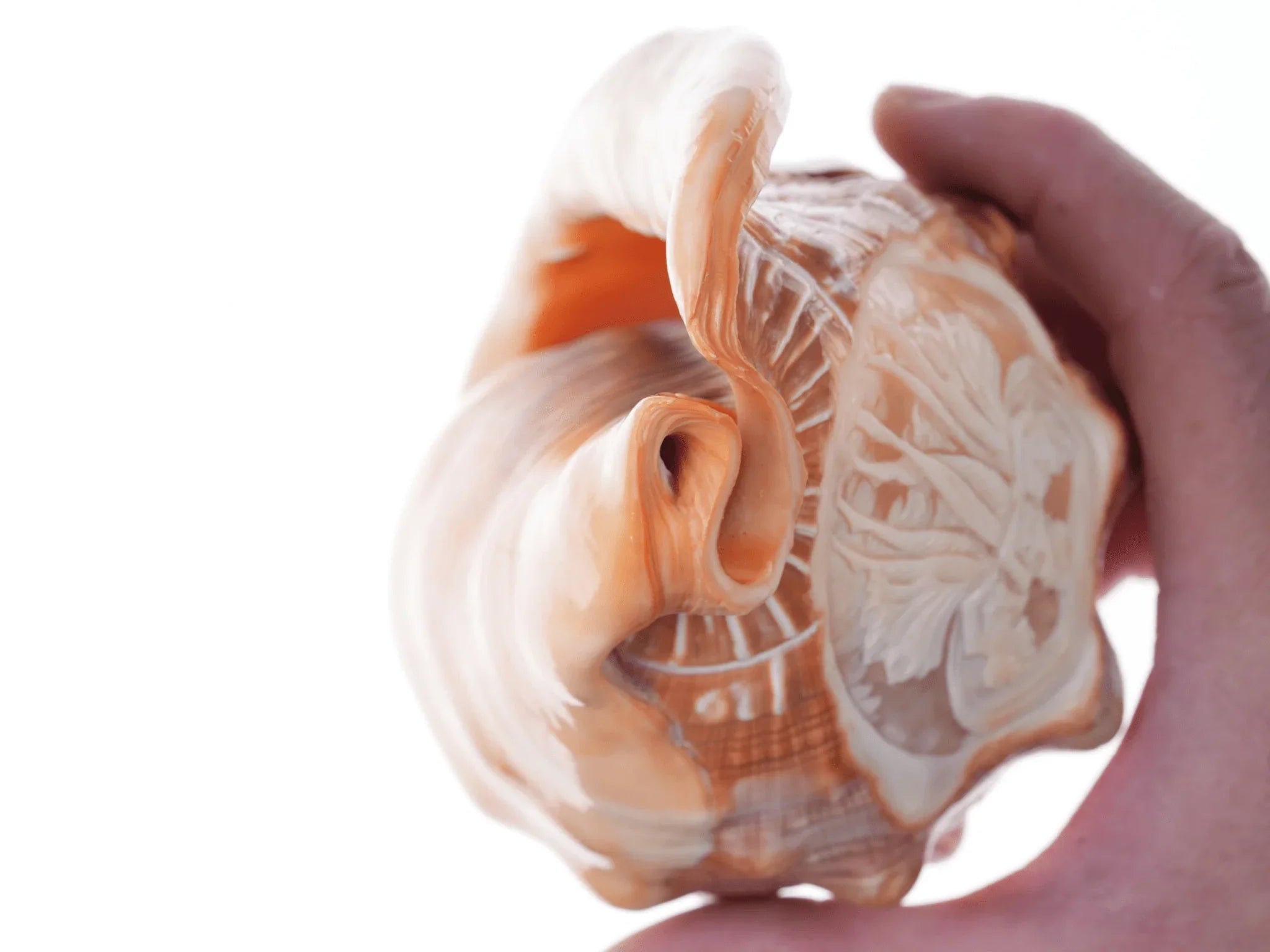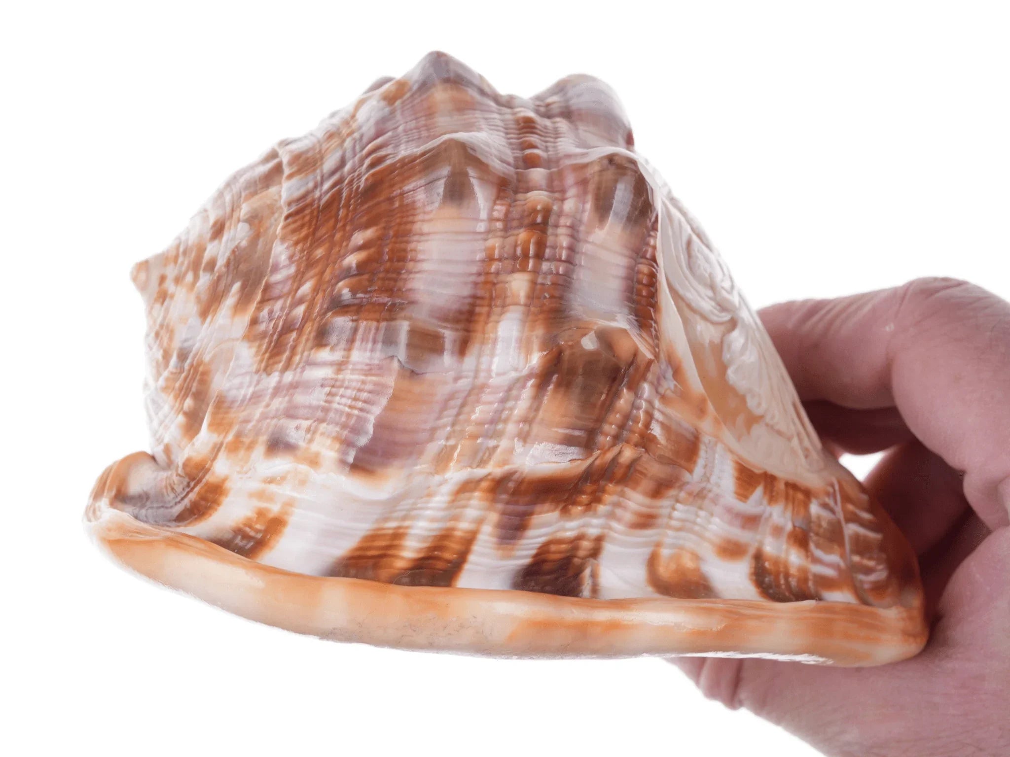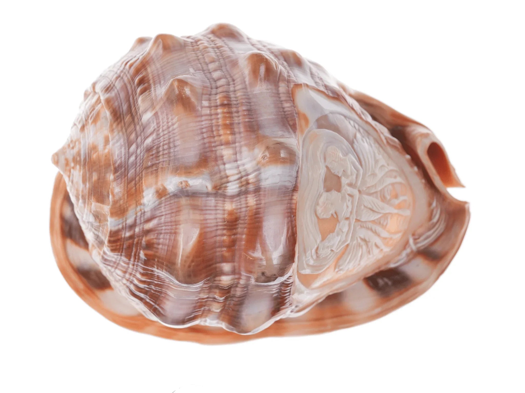 Large Vintage Carved Cameo Conch Shell 5.75" long x 4" wide x 3.75" tall with no<br>cracks or chips, lots of carving, fantastic shell from the first half of the<br>20th century.<br>tw147