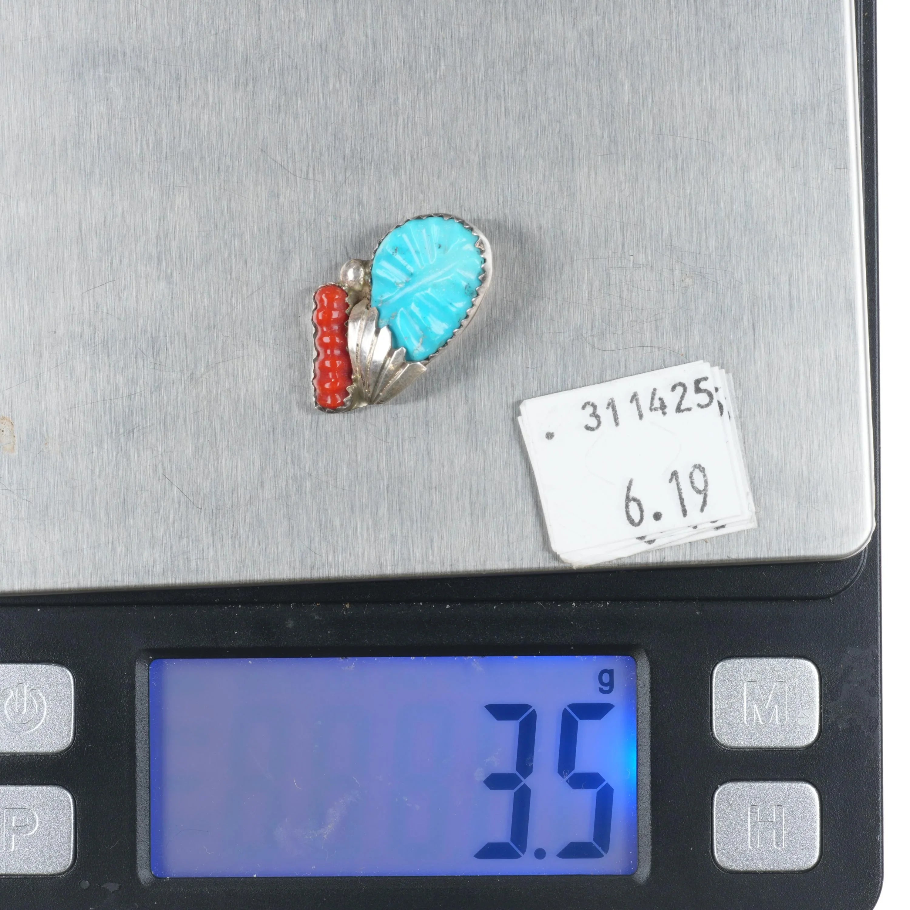 Loyolita Tsatte Zuni sterling silver carved turquoise/coral small pendant