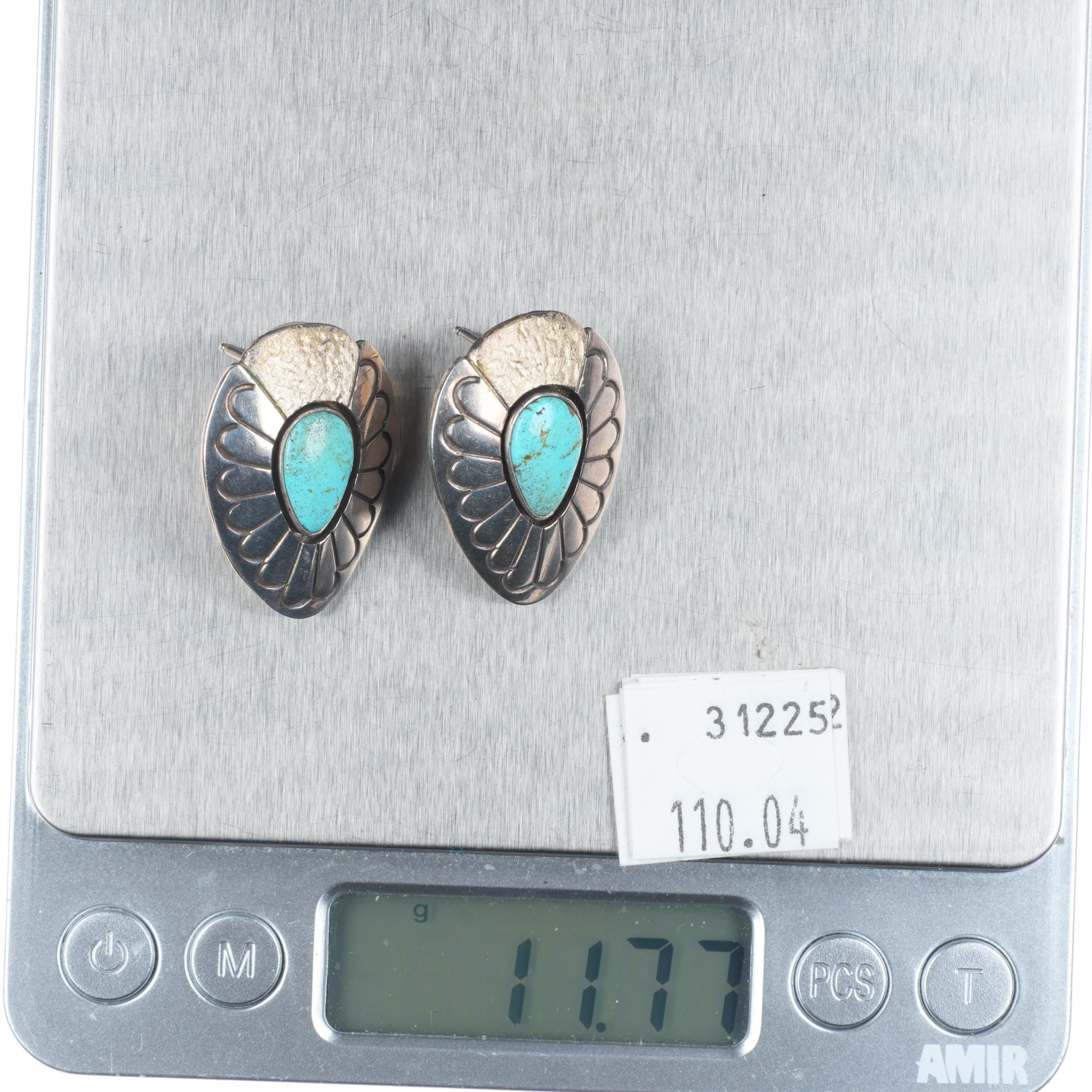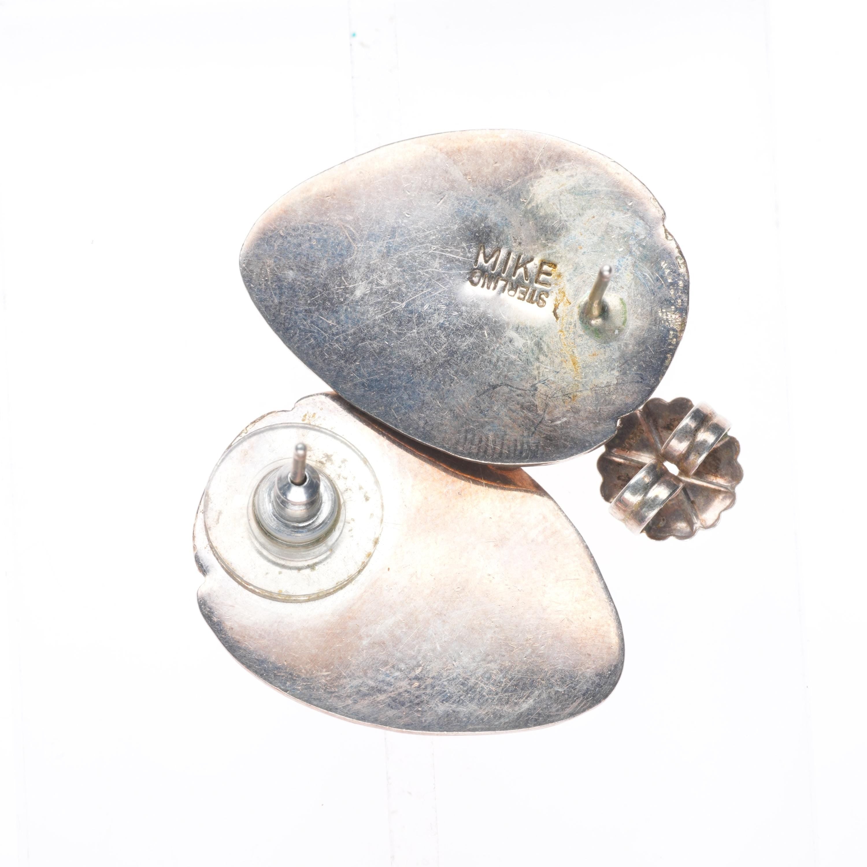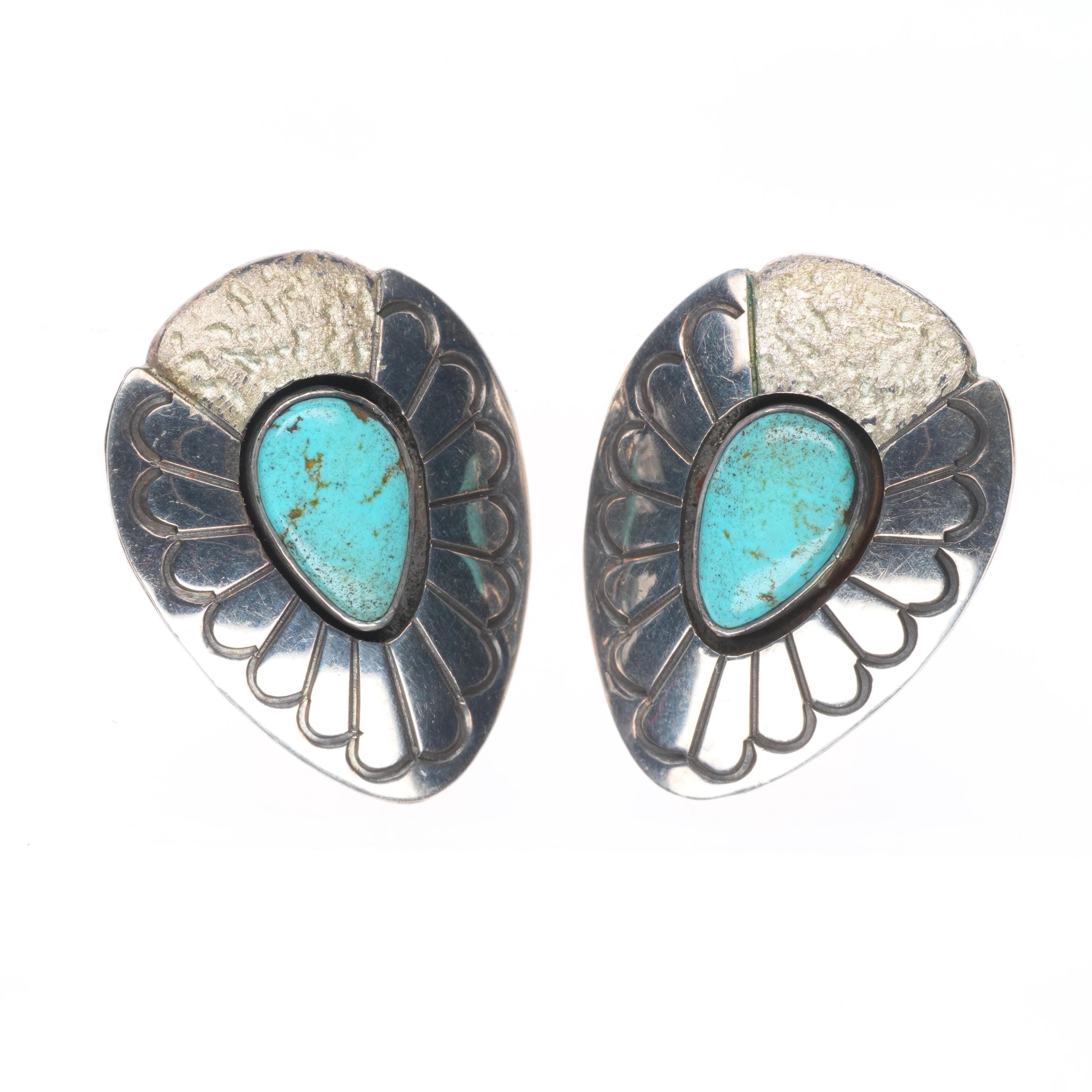 Mike Begay Vintage Navajo sterling silver and turquoise deep stamped earrings