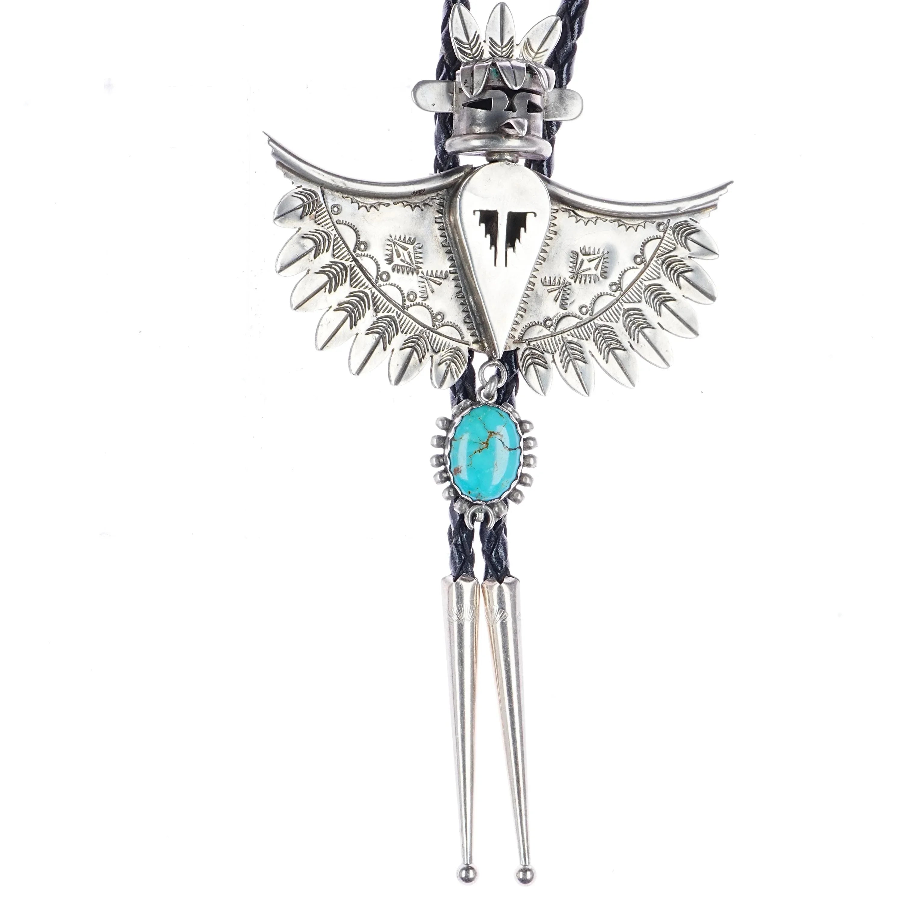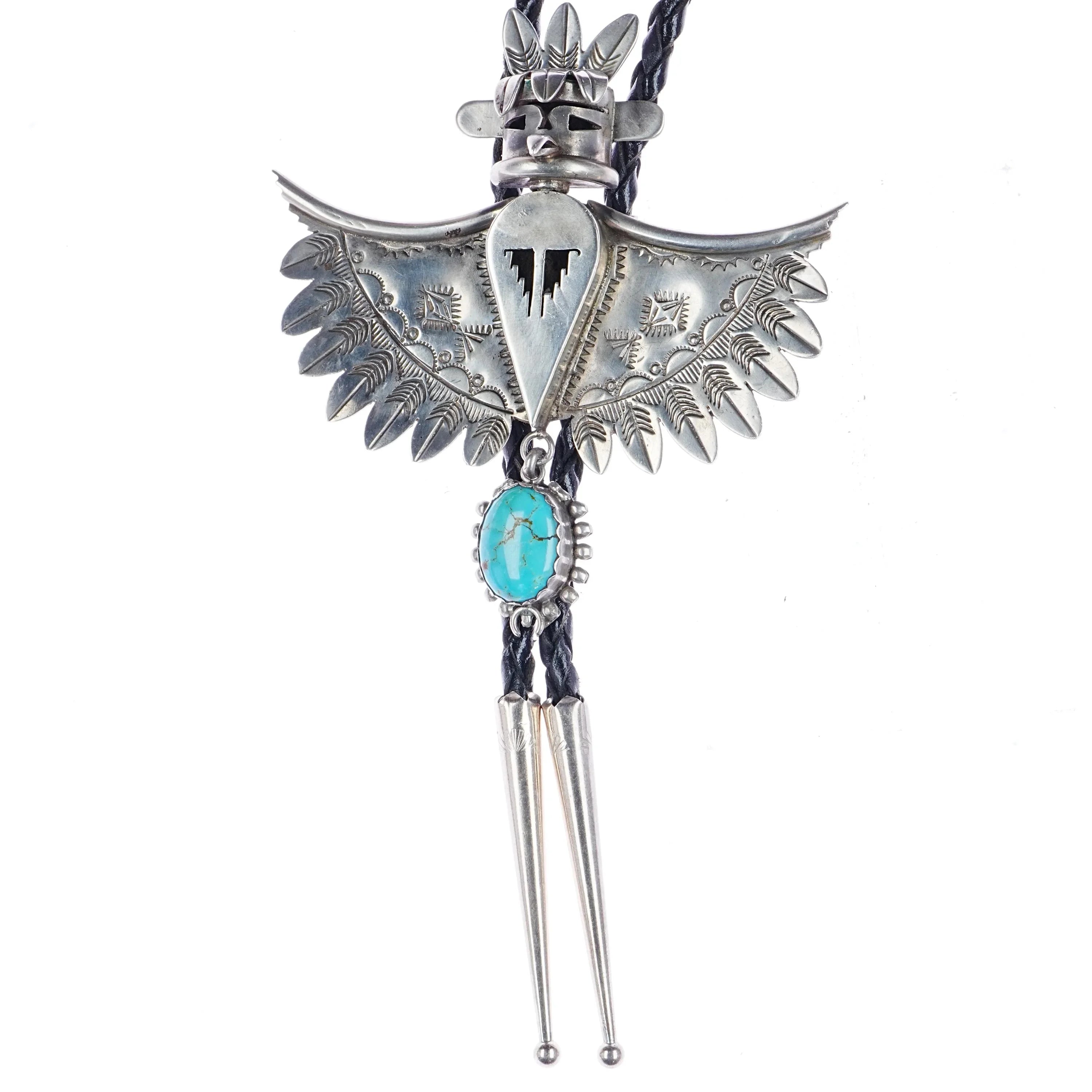 Nelson Morgan Navajo sterling and turquoise kachina bolo tie