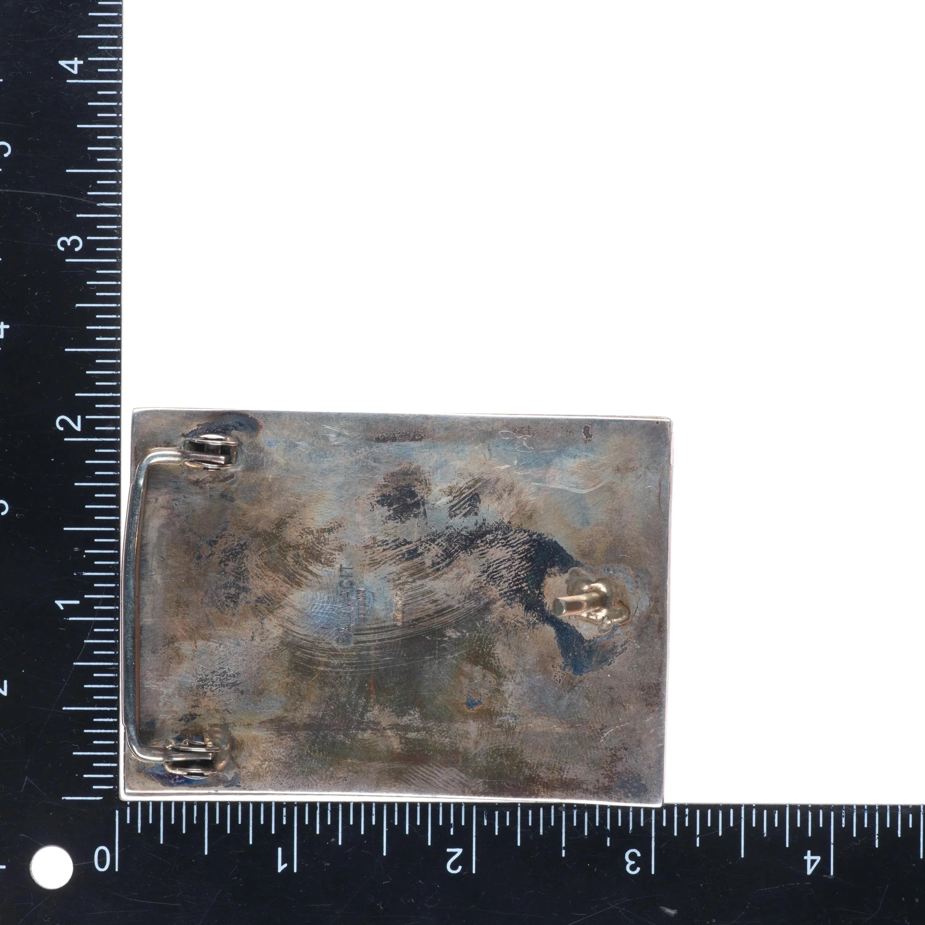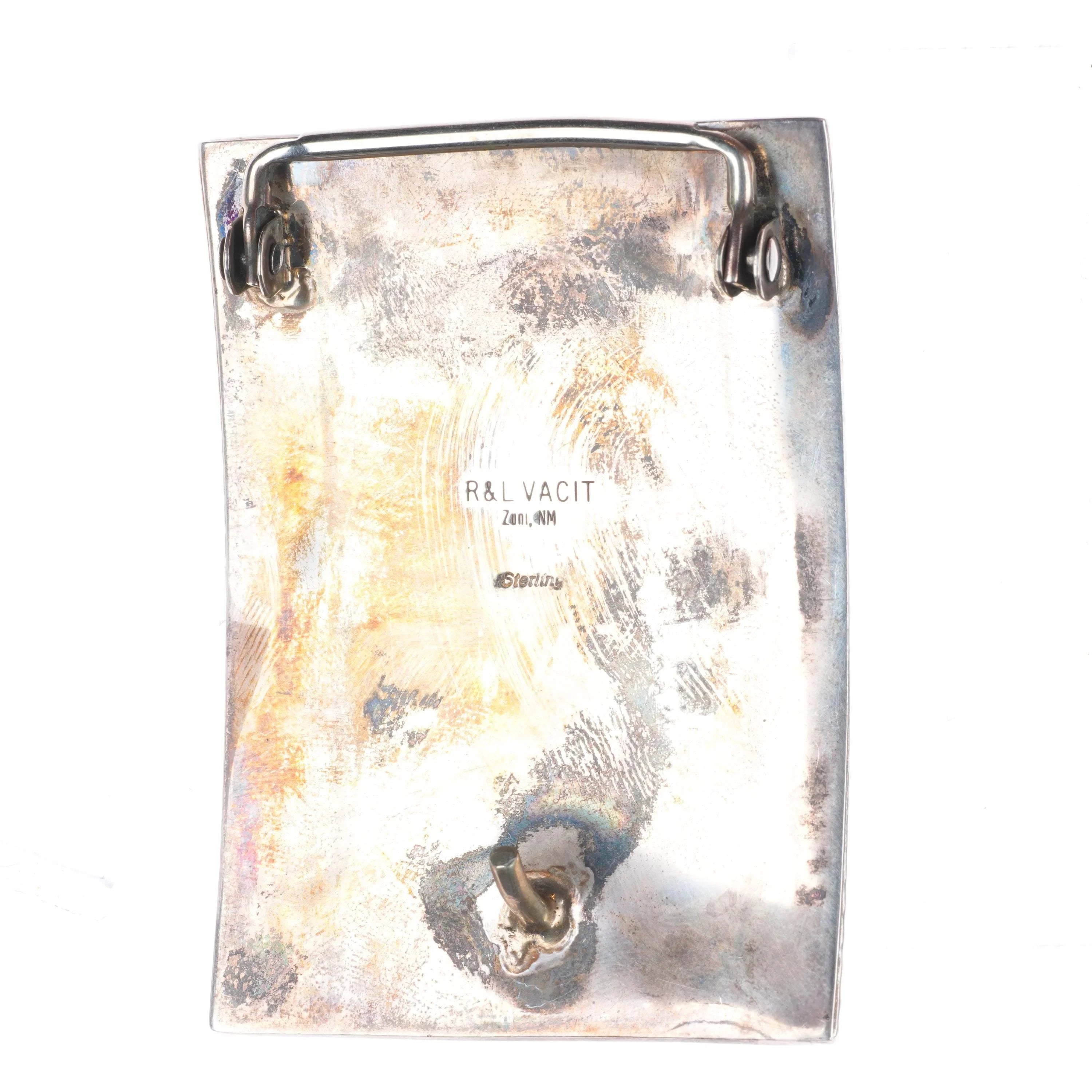 Rick & Lucy Vacit Zuni inlay sterling silver belt buckle turquoise/coral