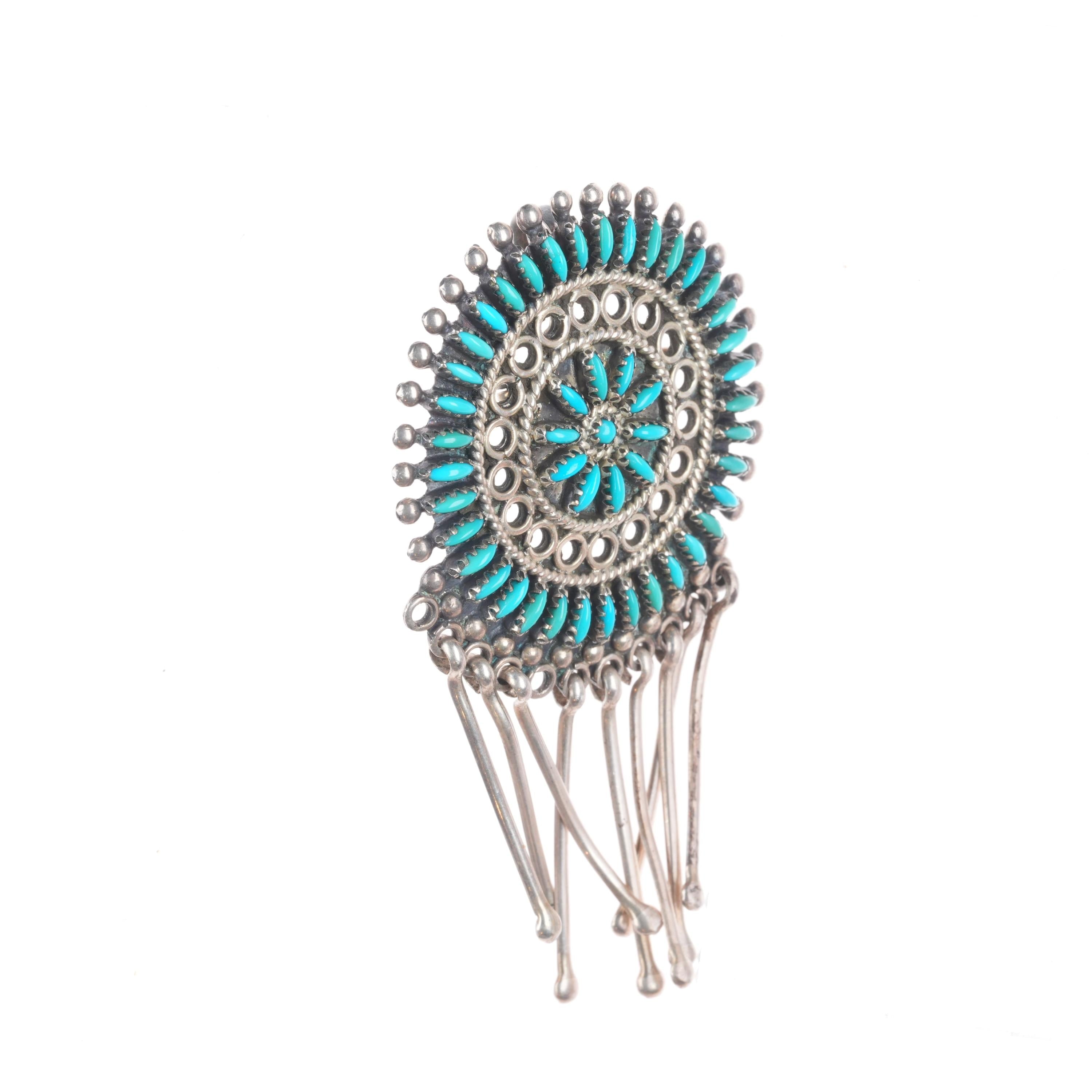 Seowtewa Zuni natural needlepoint turquoise sterling silver cluster pendant/pin