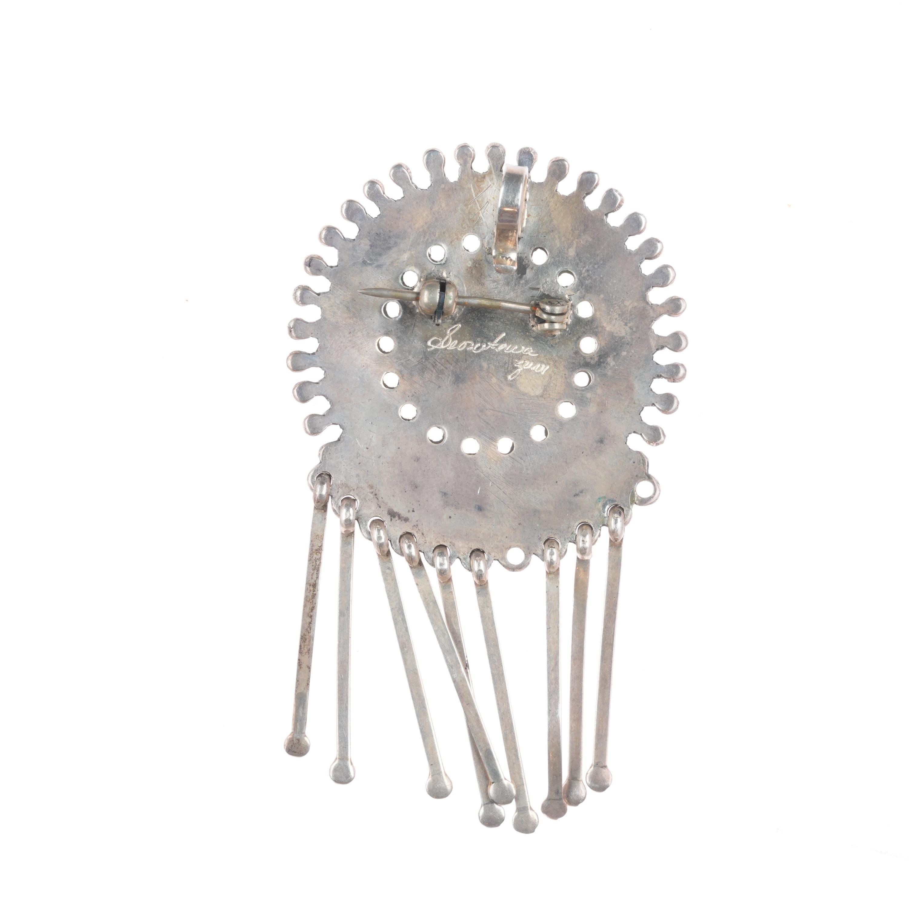 Seowtewa Zuni natural needlepoint turquoise sterling silver cluster pendant/pin, circa last quarter of the 20th century. Selling the pendant shown in good condition with measurements in pictures.