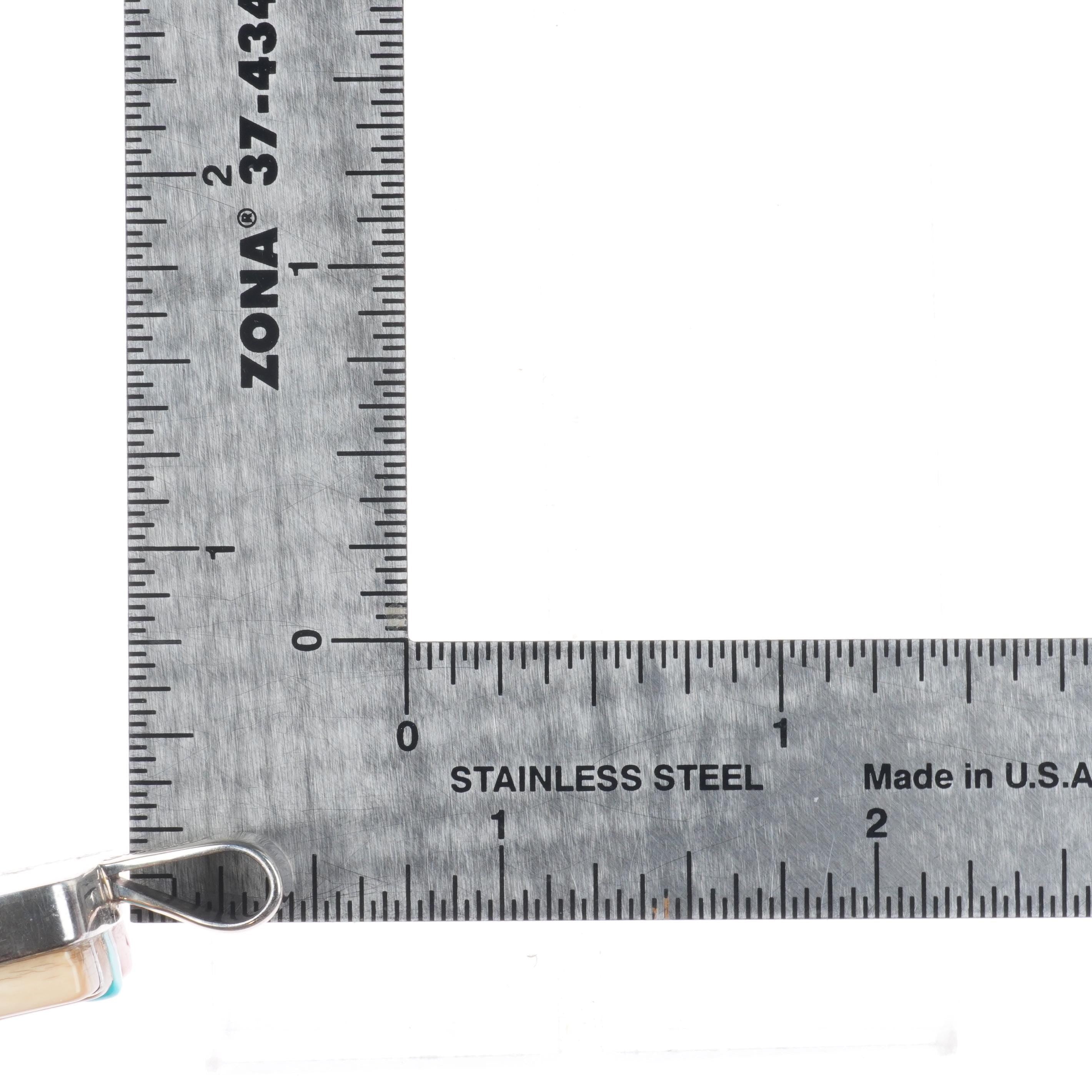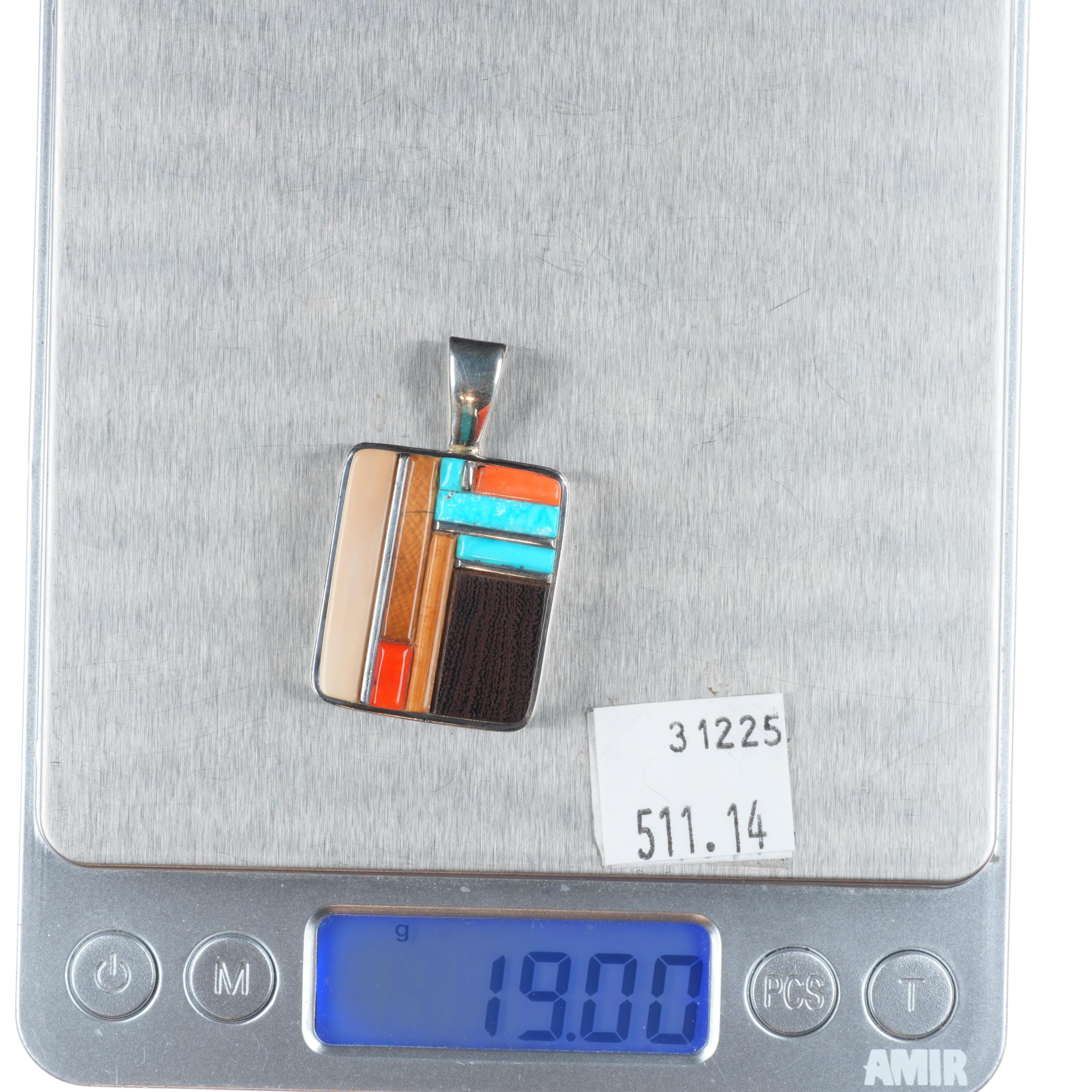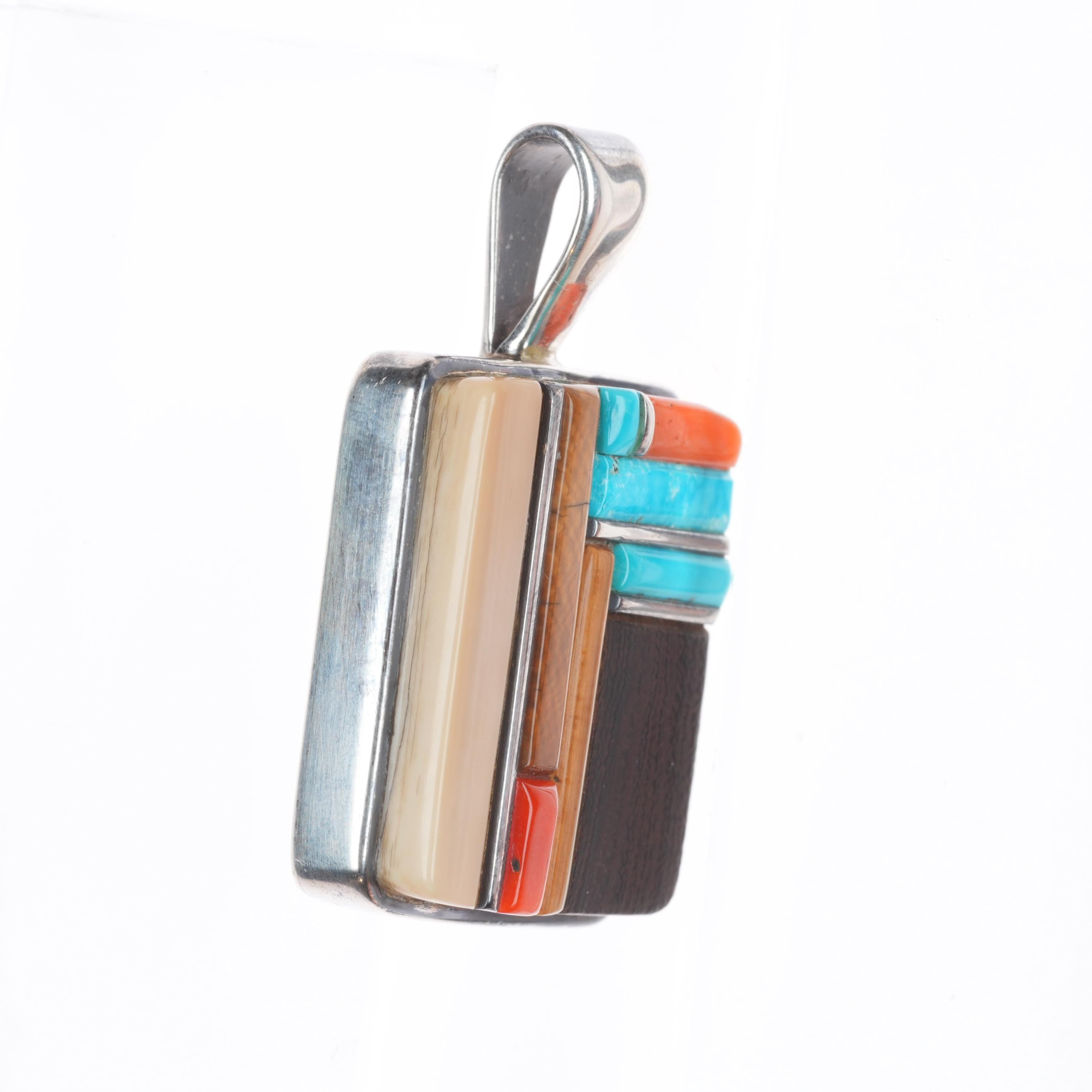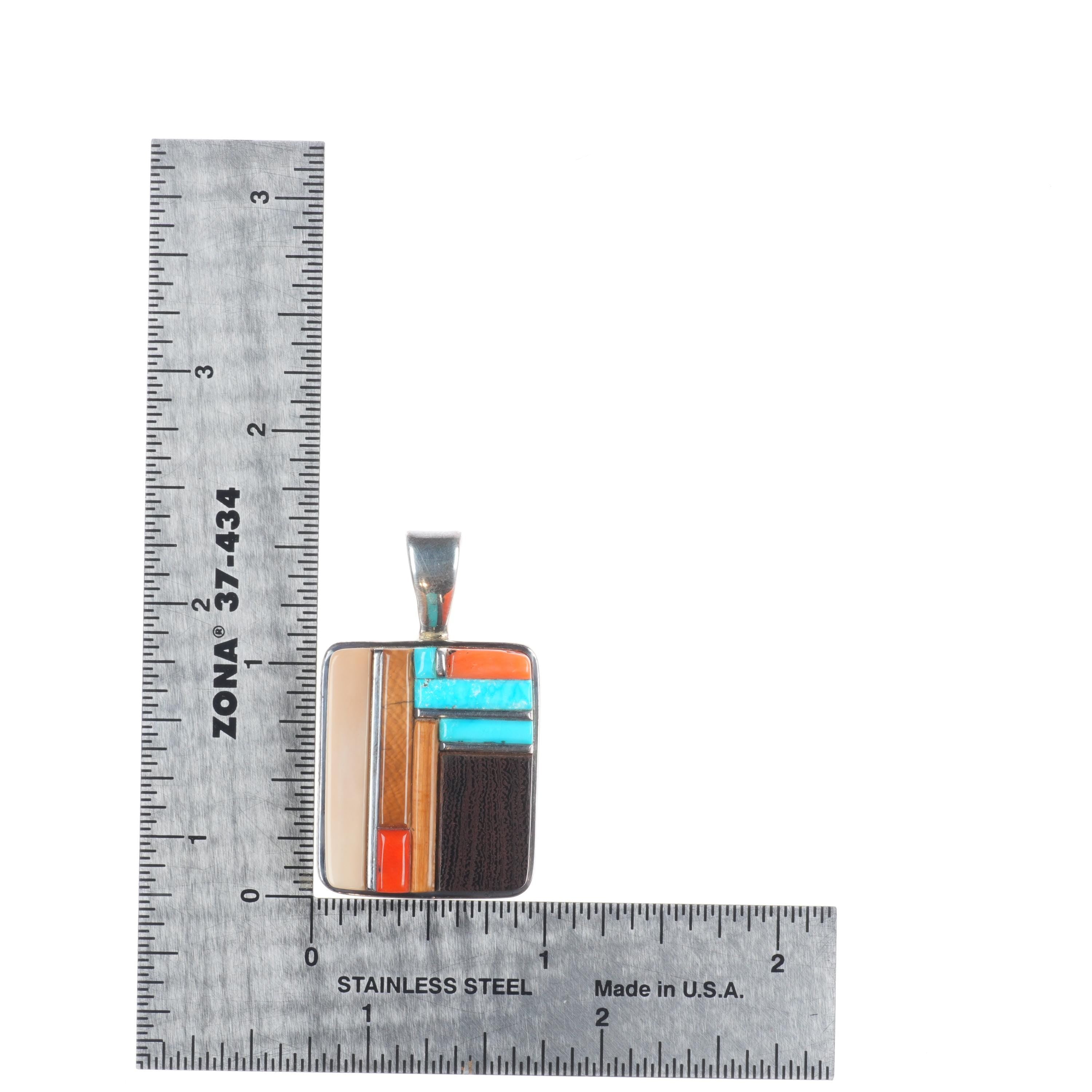 Sherian Honhongva Hopi turquoise, coral, fossil sterling silver corn row pendant. Tested and guaranteed solid sterling silver with weight and measurements in pictures. No issues.