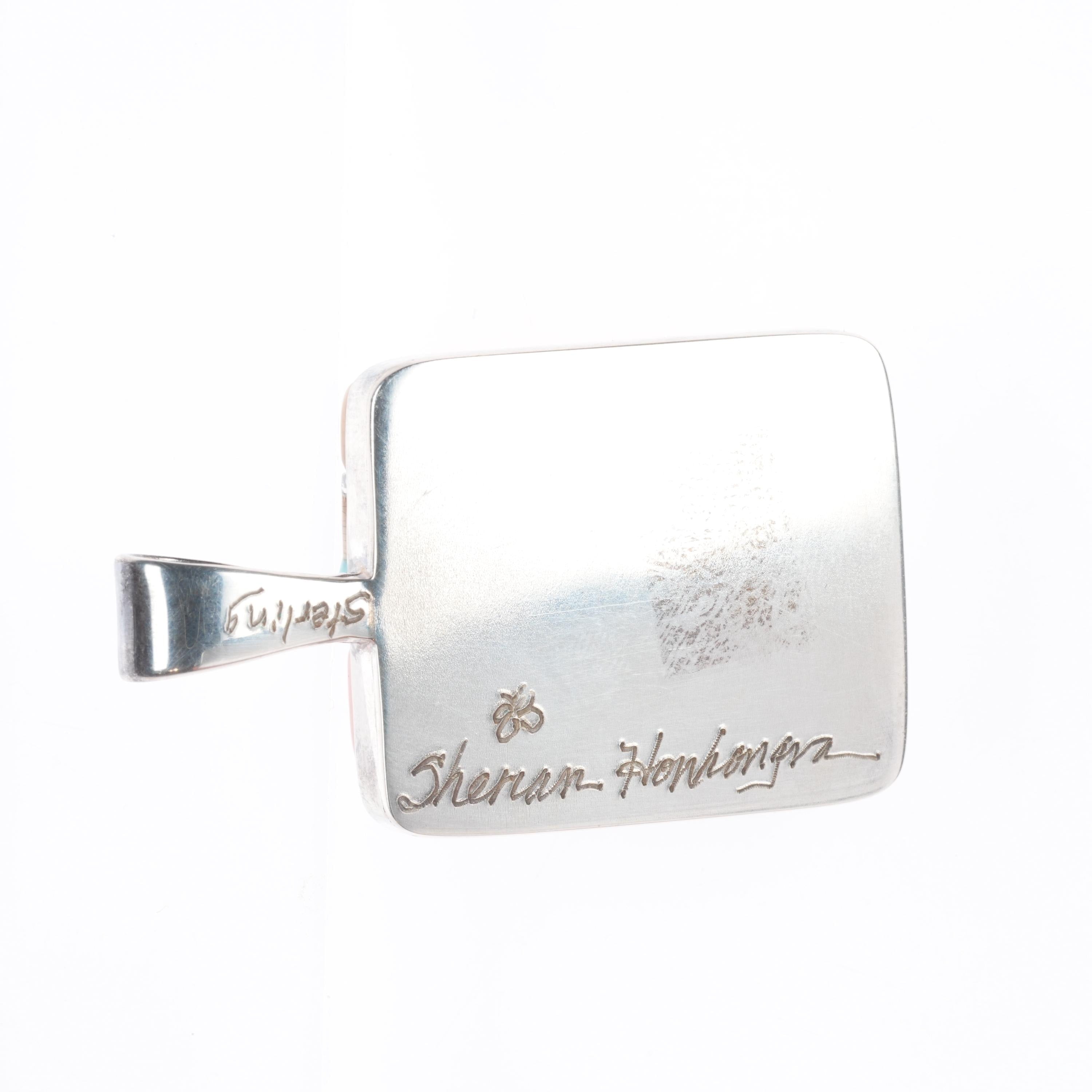 Sherian Honhongva is a Hopi Indian of the Badger clan and lives near Hotevilla. She learned silversmithing from her uncle, the well-known Charles Loloma. Sherian began working with Charles and her older sister, Verma in 1976. She started by learning to cut stones to be inlaid into jewelry. When Charles retired, Sherian remained working with her sister under the name Sonwai. In 1993, they decided to begin working independently of each other. Sherian’s jewelry is now stamped with her own name. Her work definitely reflects years of working with Loloma in his studio. She credits both Charles and Verma with her success. She has since been the featured artist in shows at the Department of Interior, Indian Craft Shop in Washington DC, and at the Eiteljorge Museum in Indianapolis, Indiana. Her work is featured in Southwestern Indian Jewelry by Dexter Cirillo, Hopi Jewelry, and Art of the Hopi by Jerry and Lois Jacka. Sherian has also been featured in the magazine Arizona Highways.