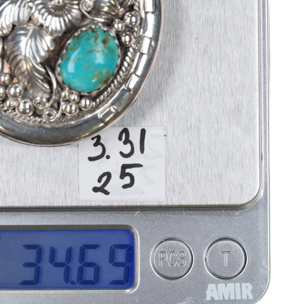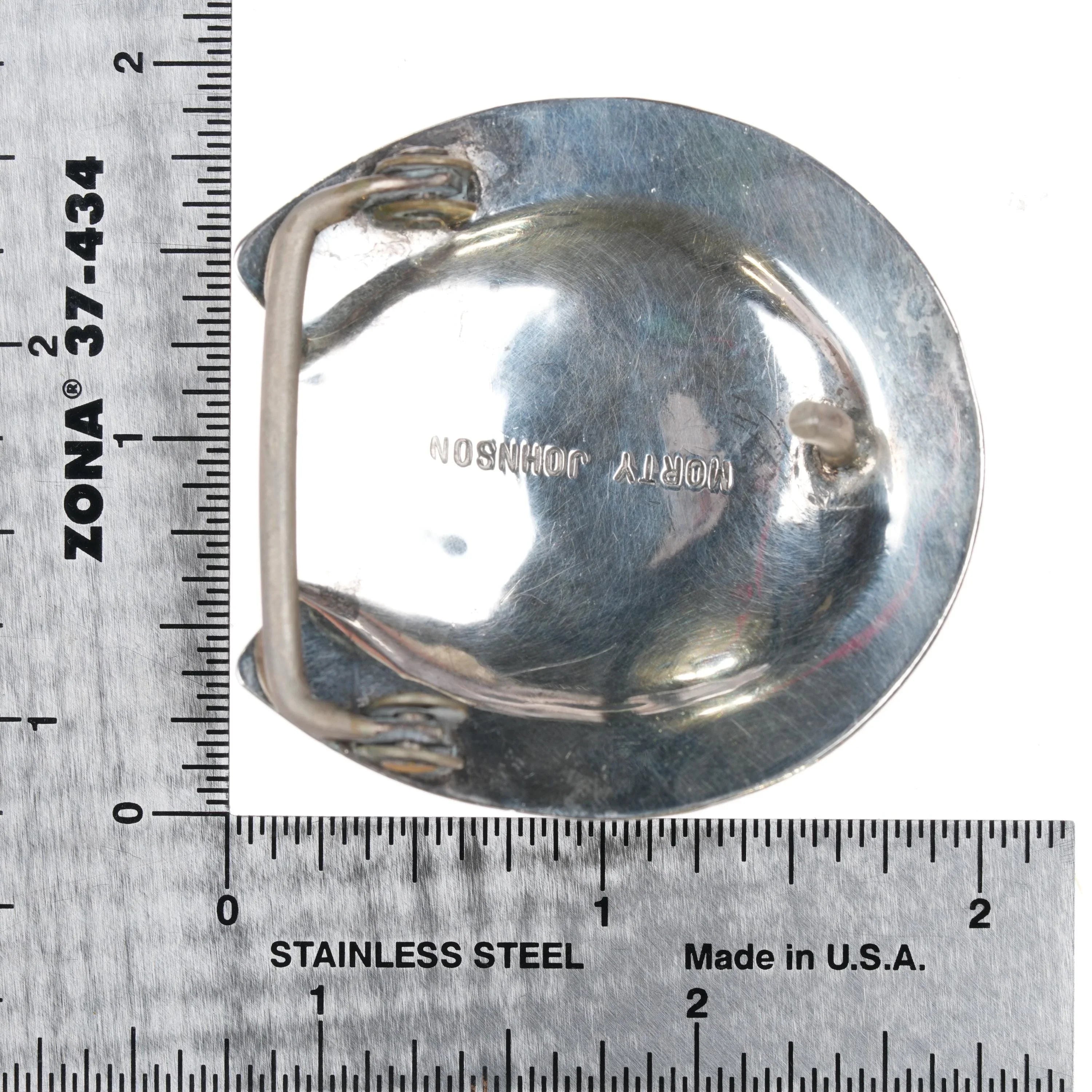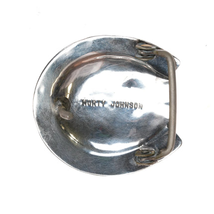 Small Vintage Morty Johnson Navajo silver and turquoise belt buckle