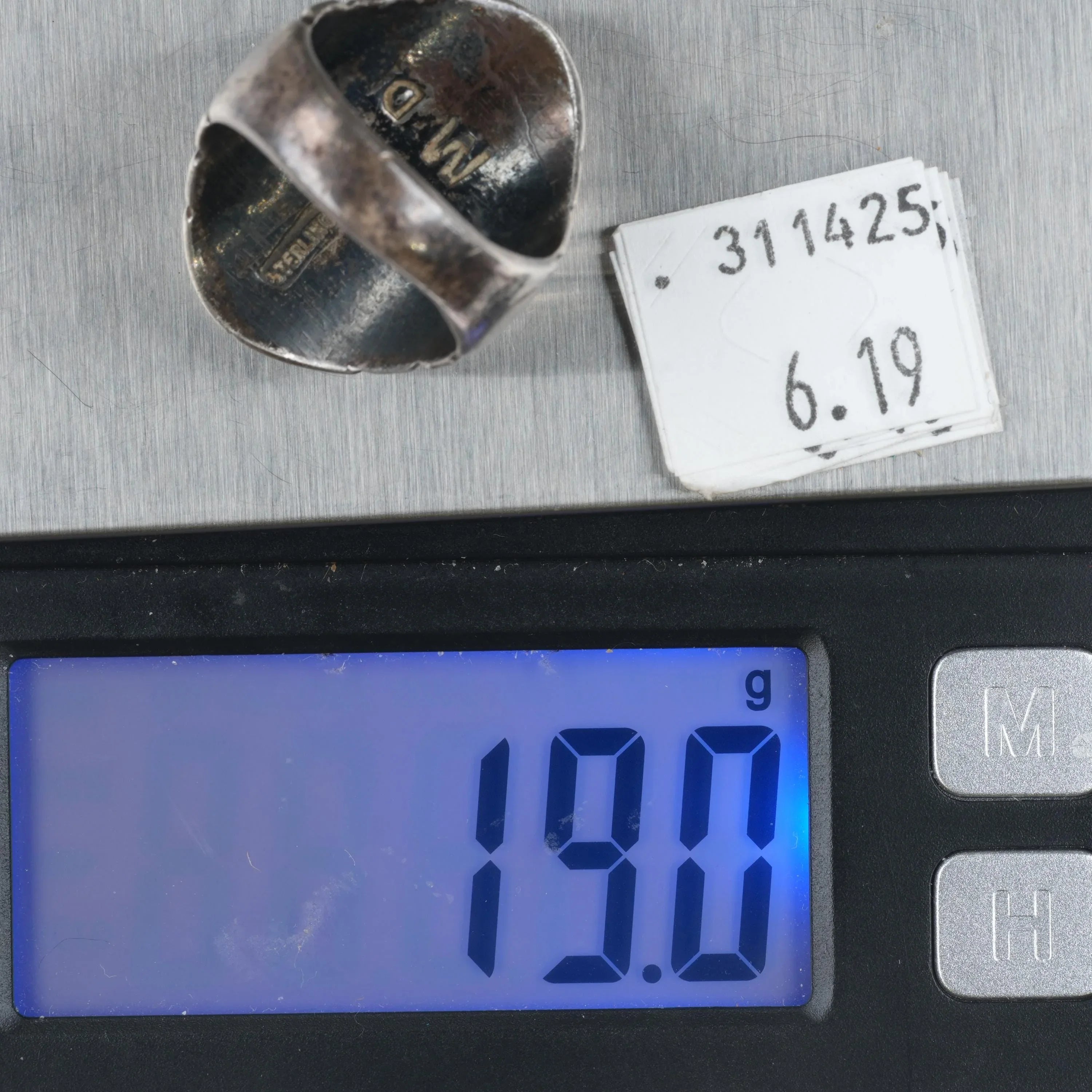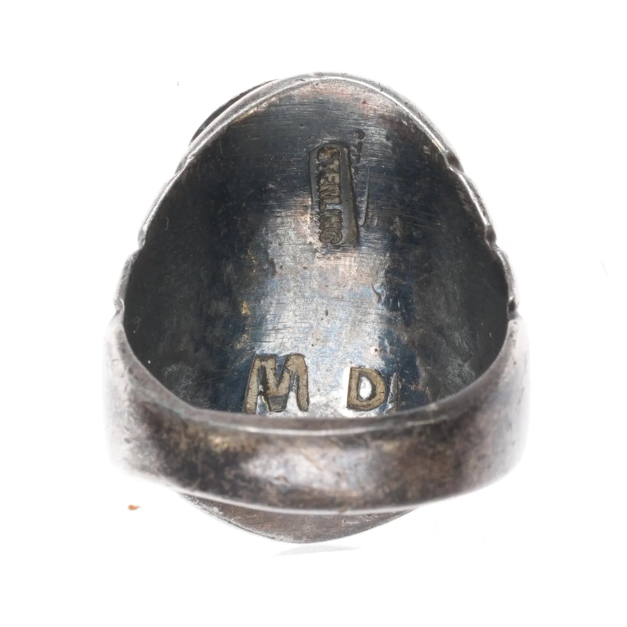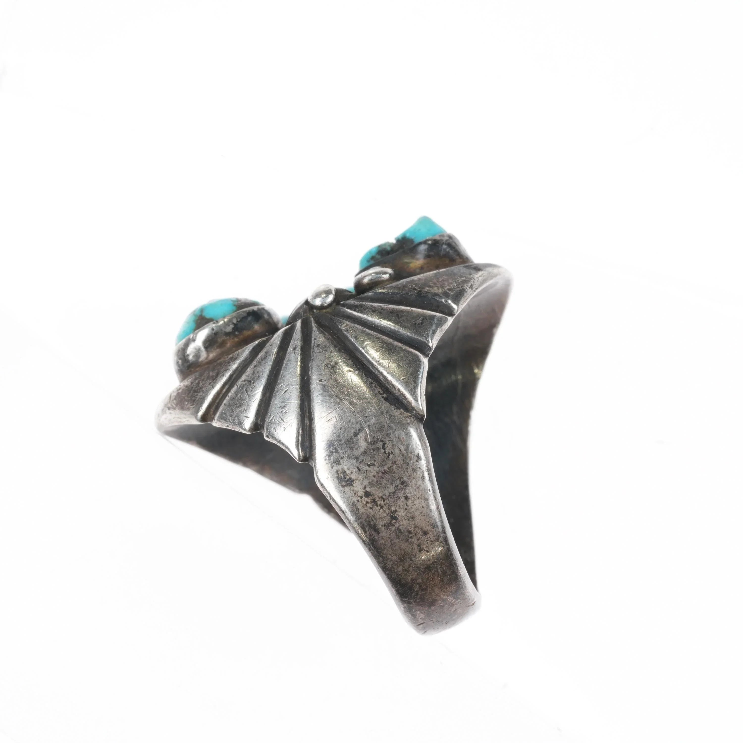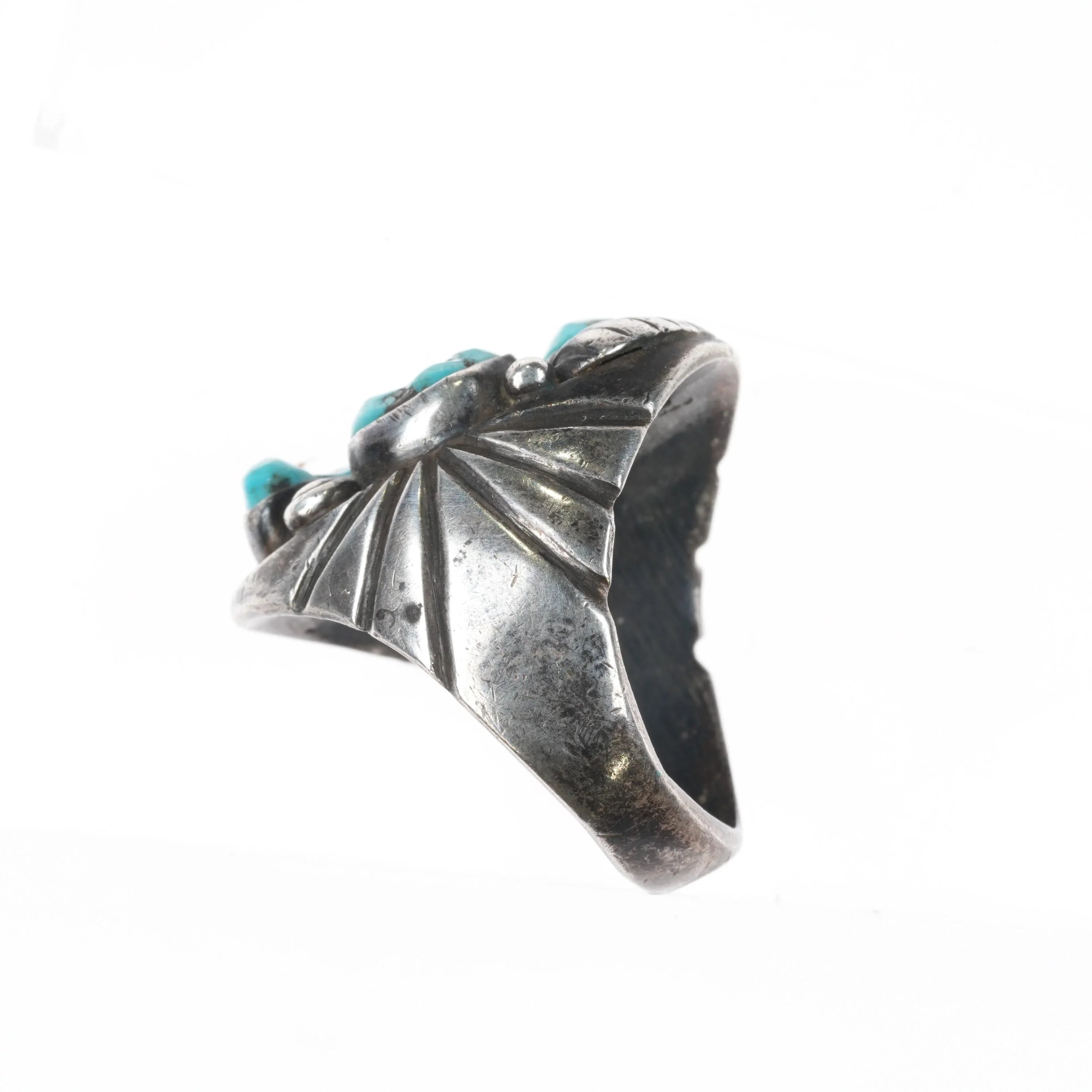sz10.5 Mary Dayea Navajo large sterling silver turquoise cluster men‘s ring. Great looking ring from third quarter of the 20th century. Unmarked which is very common with Native American jewelry of this era. Tested and guaranteed solid sterling silver with no issues.