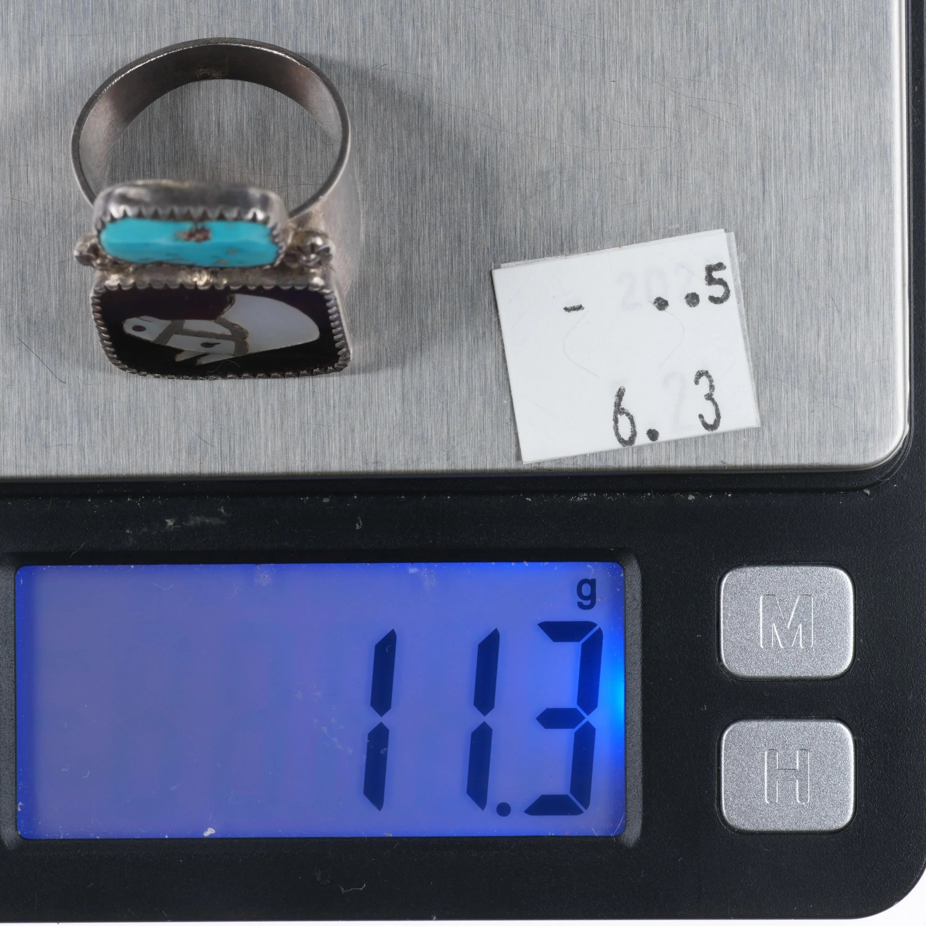sz11.5 Mike Simplicio Zuni sterling silver Horse intarsia inlay turquoise ring