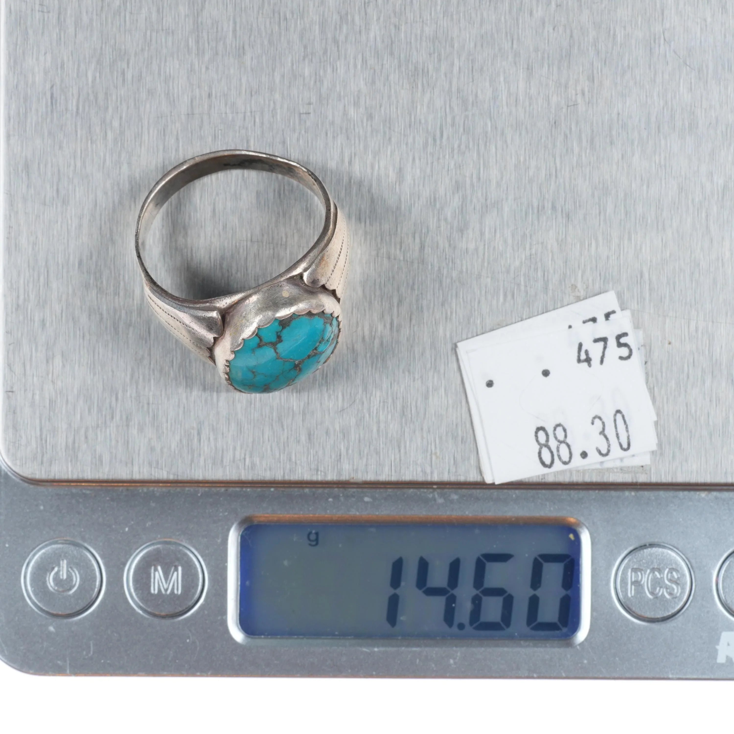 sz11.5 Vintage DL Navajo sterling silver spiderweb turquoise men‘s ring. Tested and guaranteed solid sterling silver with weight and measurements in pictures. Nice ring from the last quarter of the 20th century.