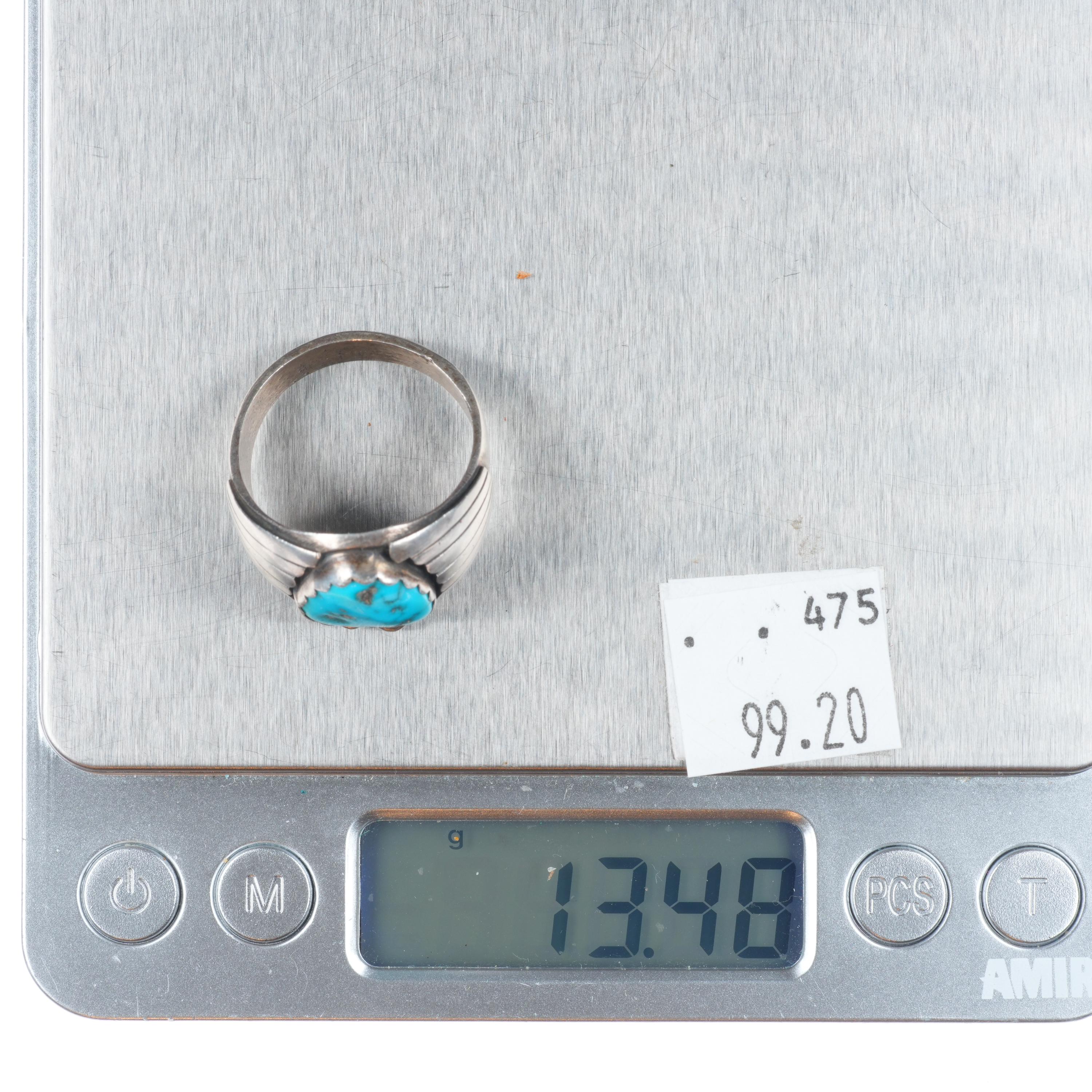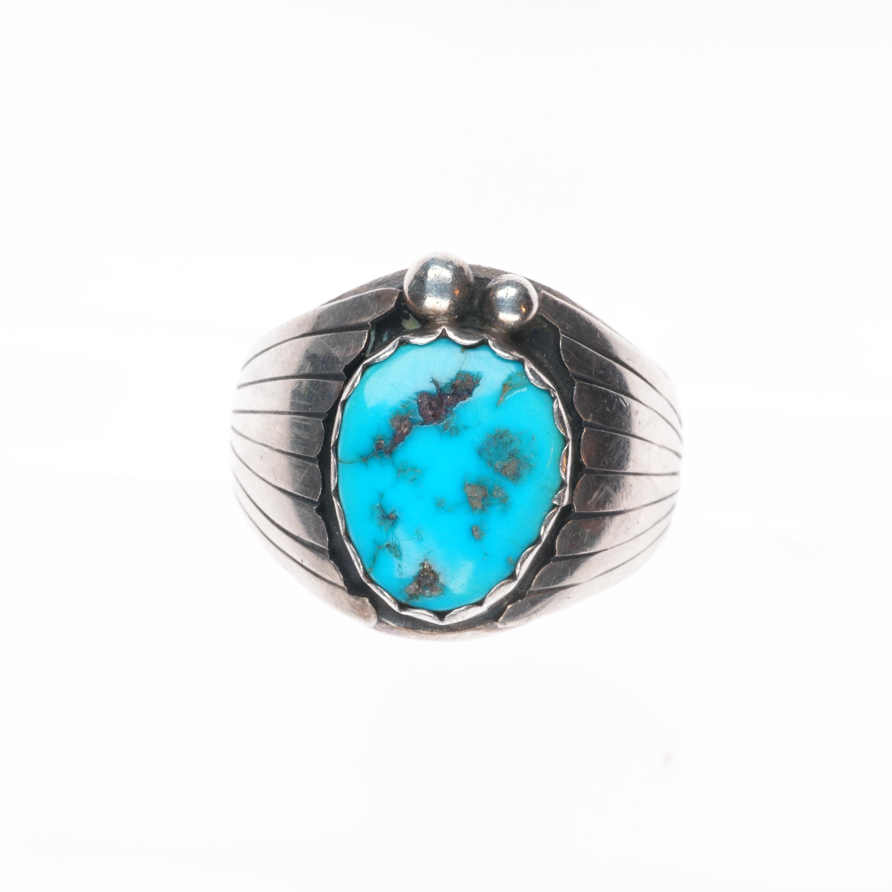 sz11 E Navajo vintage sterling silver Kingman turquoise men's ring
