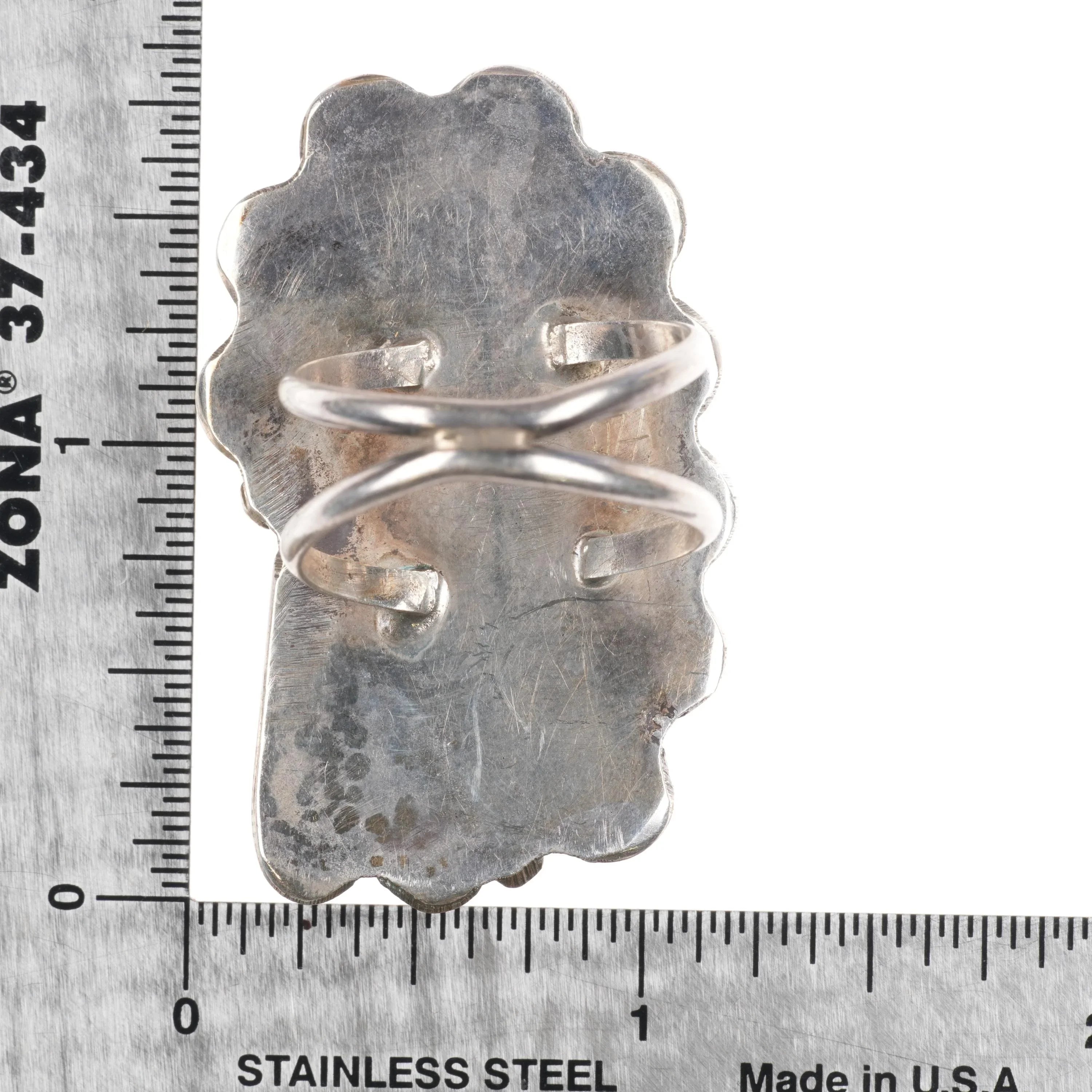 sz11 Large Navajo sterling silver Ceremonial Kingman turquoise ring nice matrix. Weight and measurements in pictures. Solid sterling silver (tested), with no detectable markings.