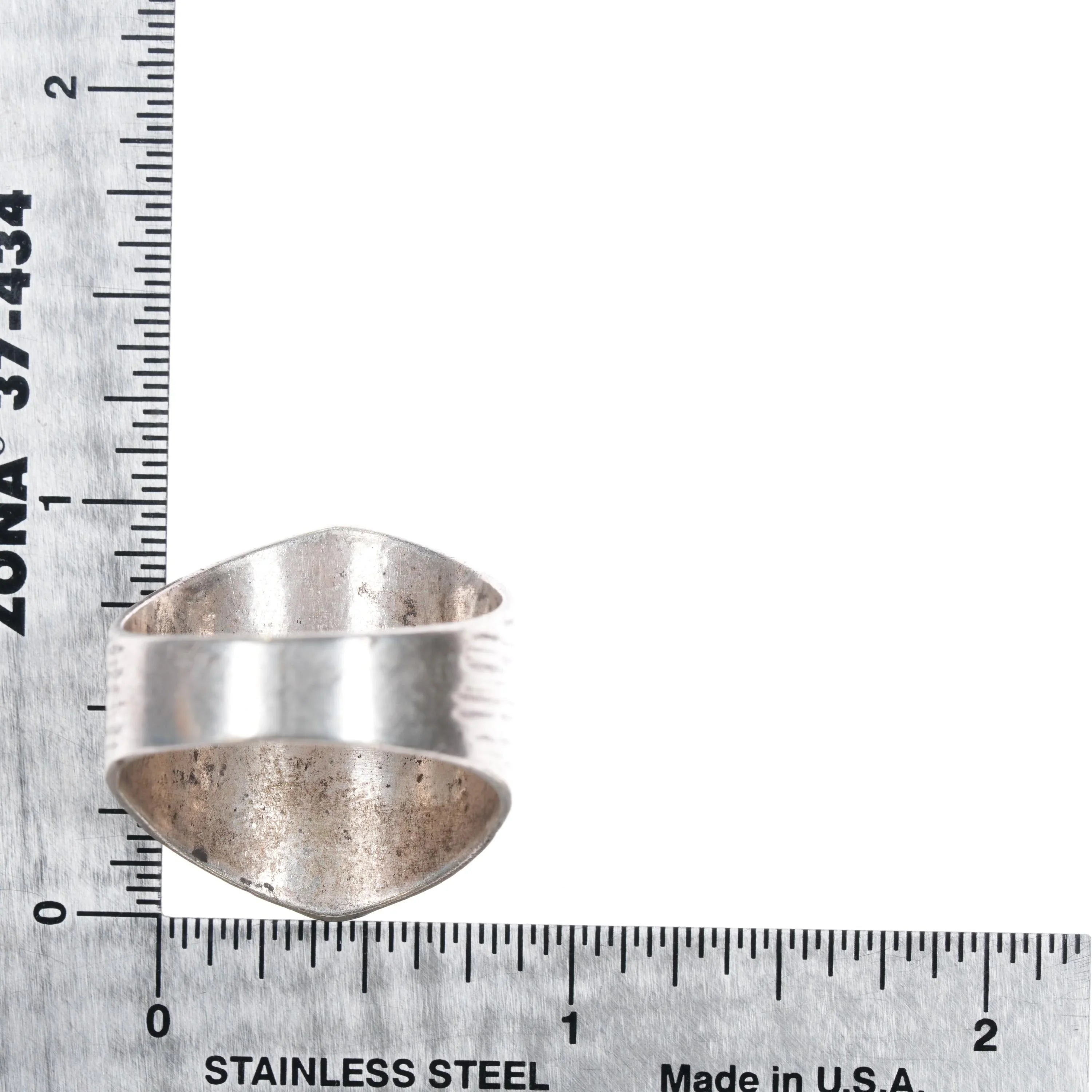 sz13 Circle JW Navajo sterling silver chip inlay ring with center turquoise