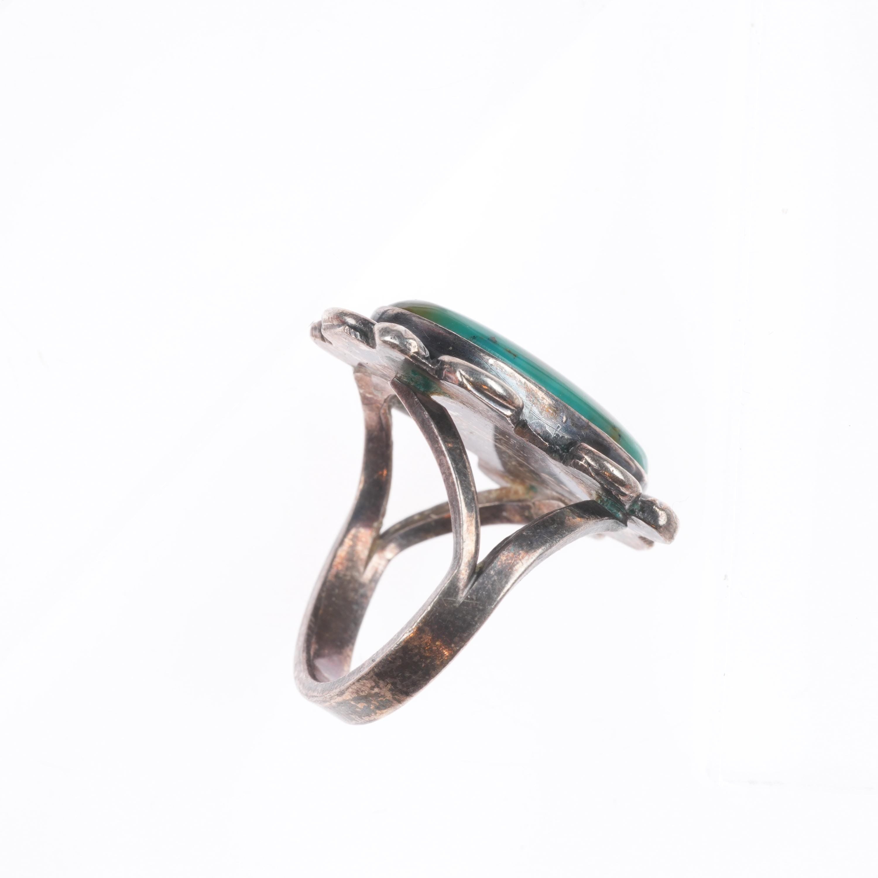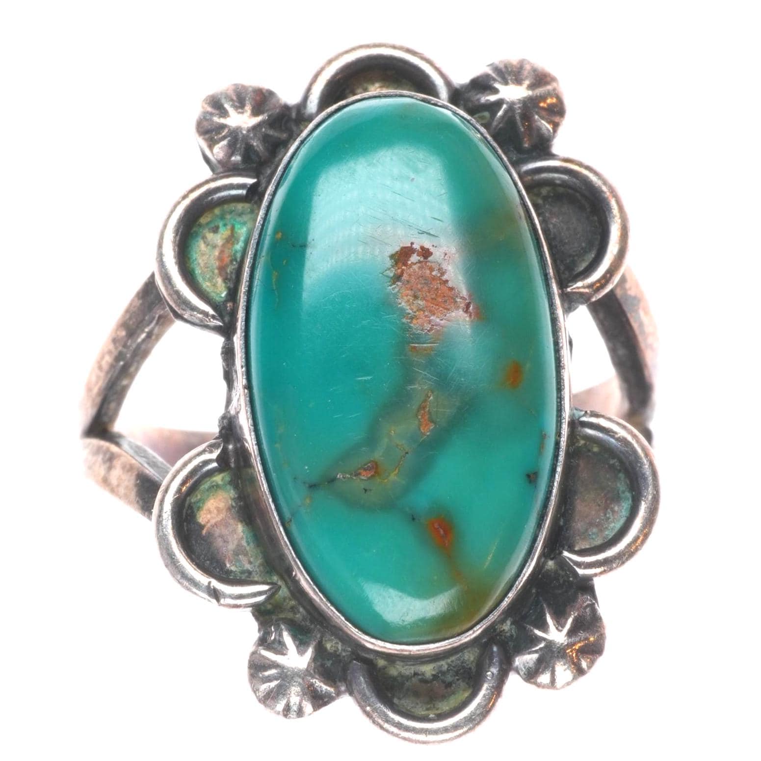 sz5.5 Vintage Navajo sterling silver high grade turquoise ring. Nice ring from the mid 20th century.
