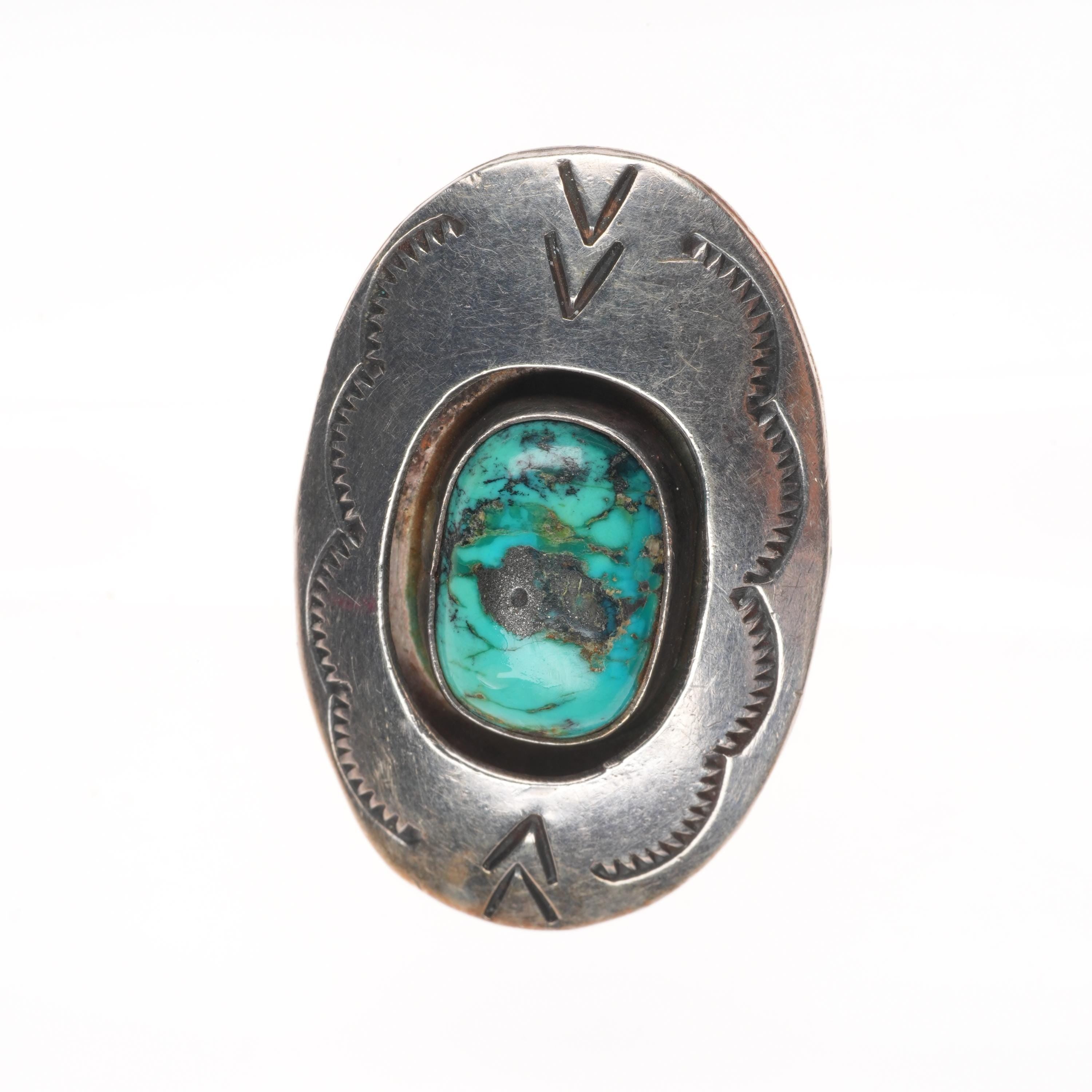sz6.5 Vintage Navajo sterling silver shadowbox ring with turquoise