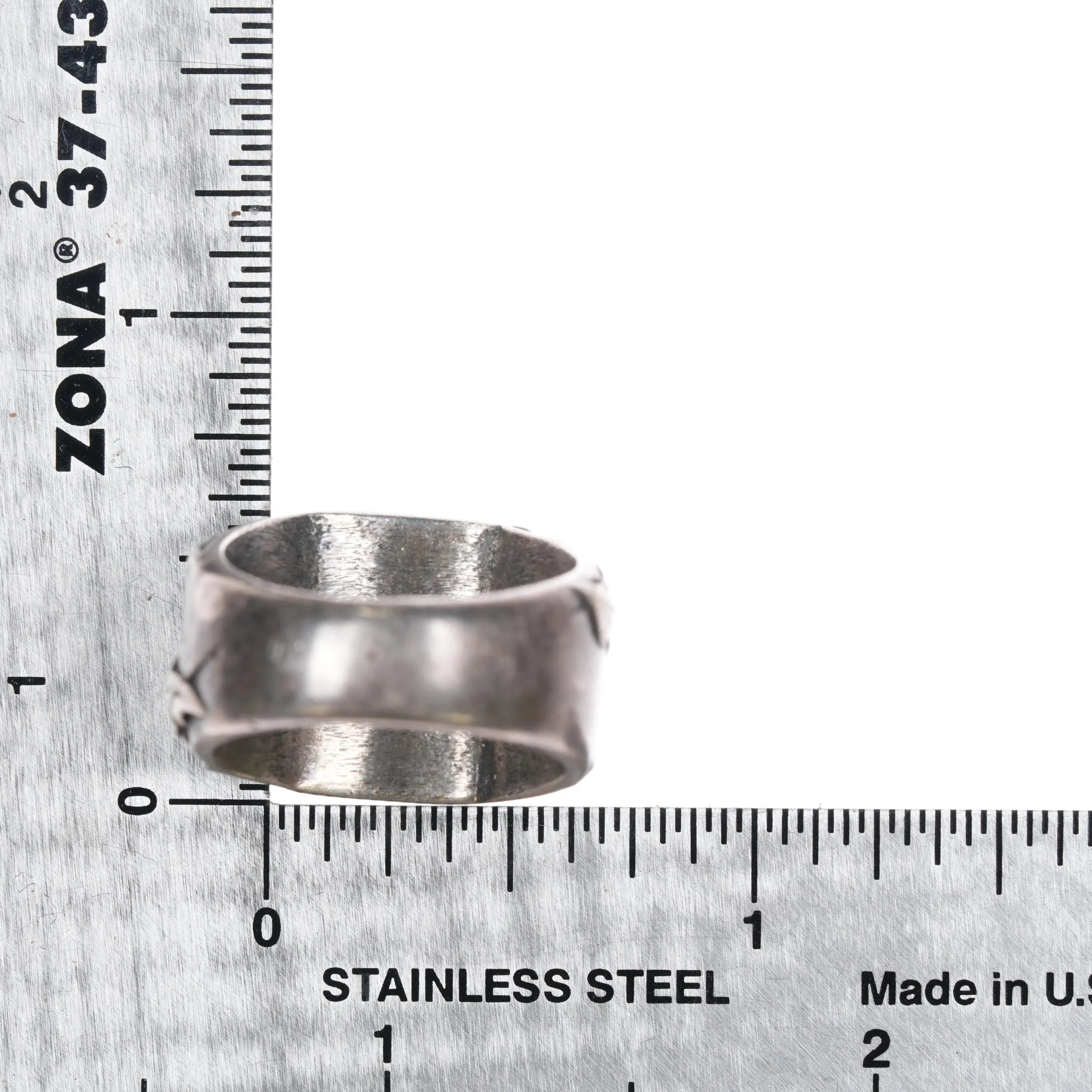 sz7.5 1950's Navajo Blue Gem turquoise sterling silver leaf design ring