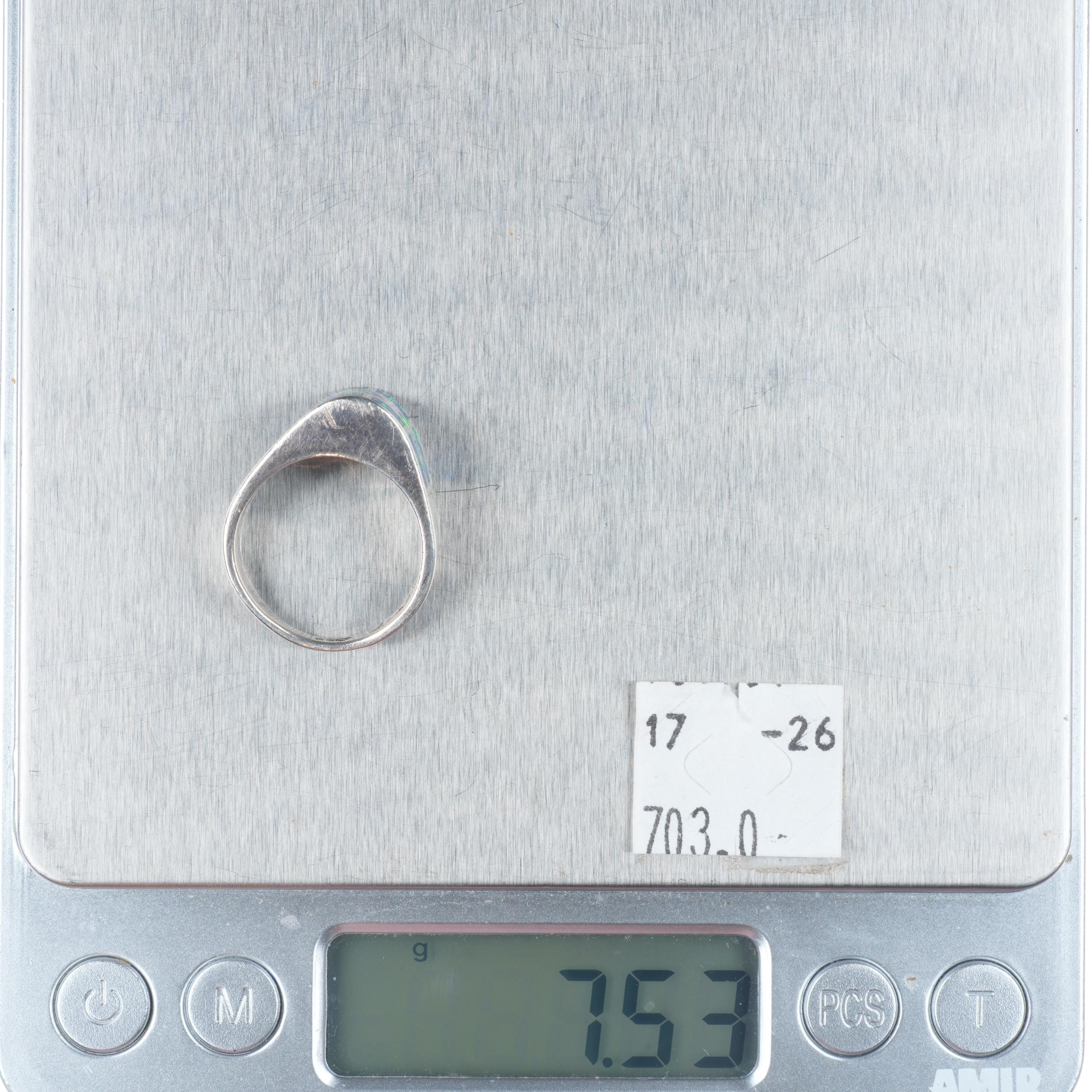 sz7 Fernando Benally Navajo sterling silver lab opal inlay ring. Tested and guaranteed solid sterling silver, circa last quarter of the 20th century. Some expected wear, weight and measurements in pictures.