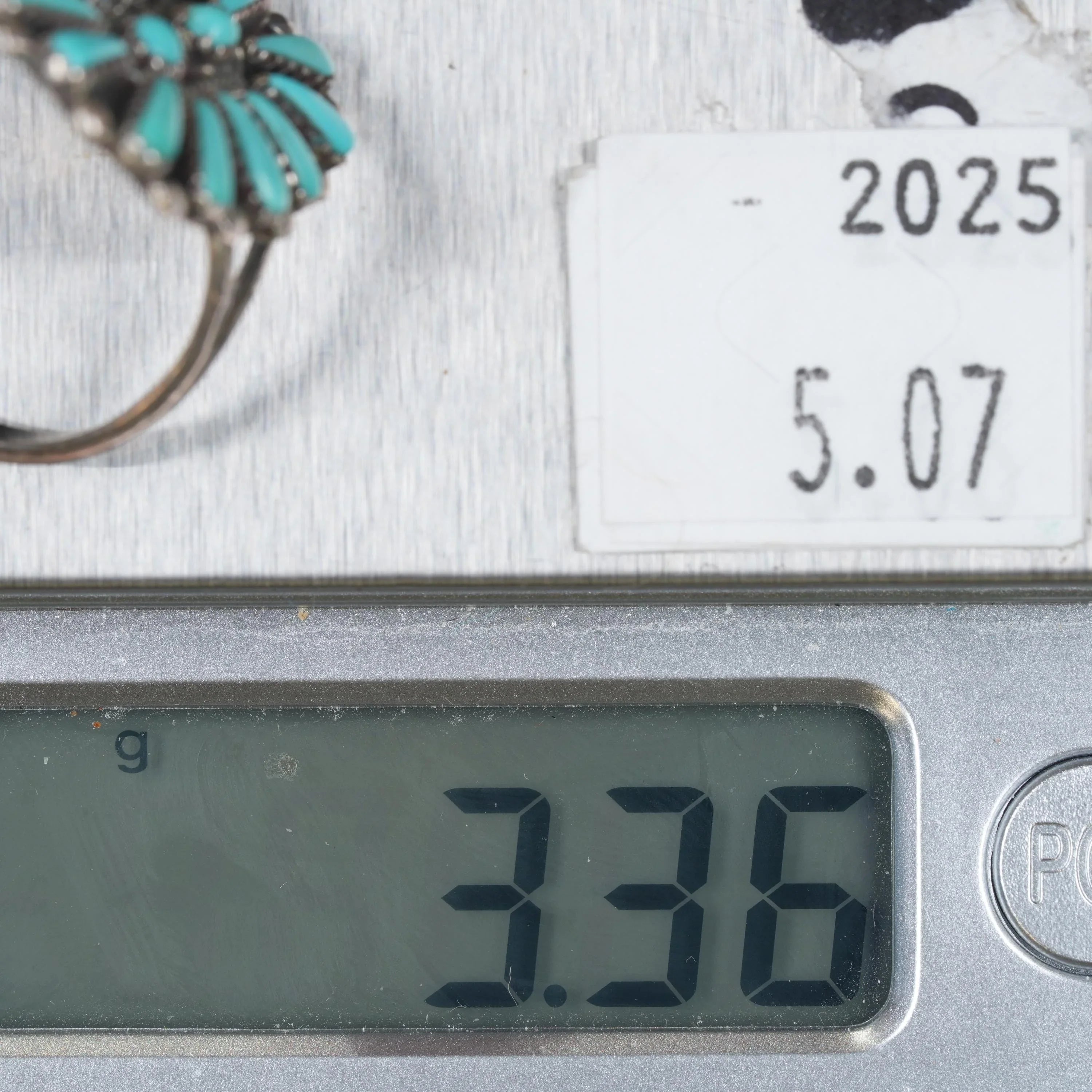 sz8.25 Vintage Zuni sterling silver and turquoise petit point cluster ring