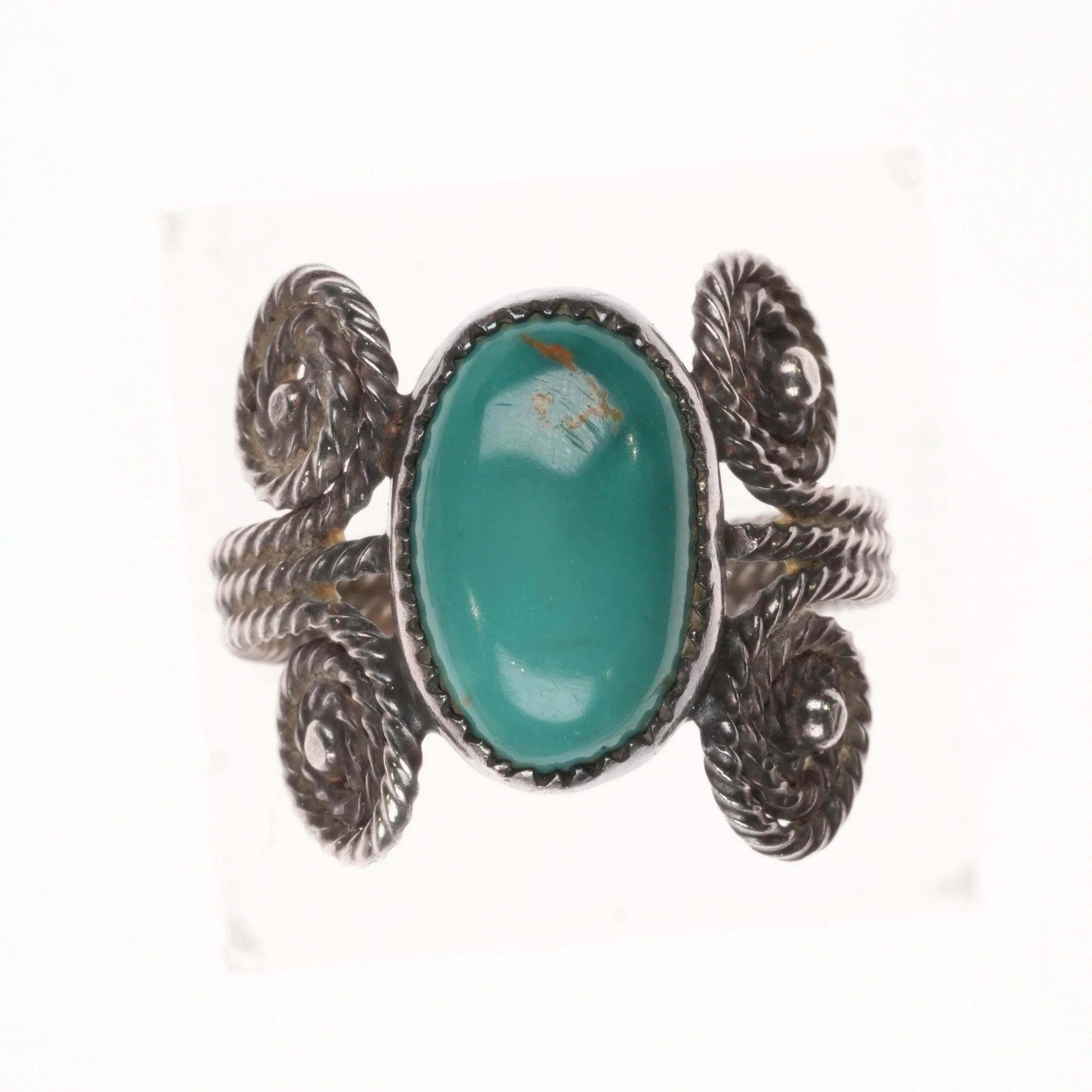 sz8.5 c1940's Navajo sterling silver fancy twisted wire ring with turquoise