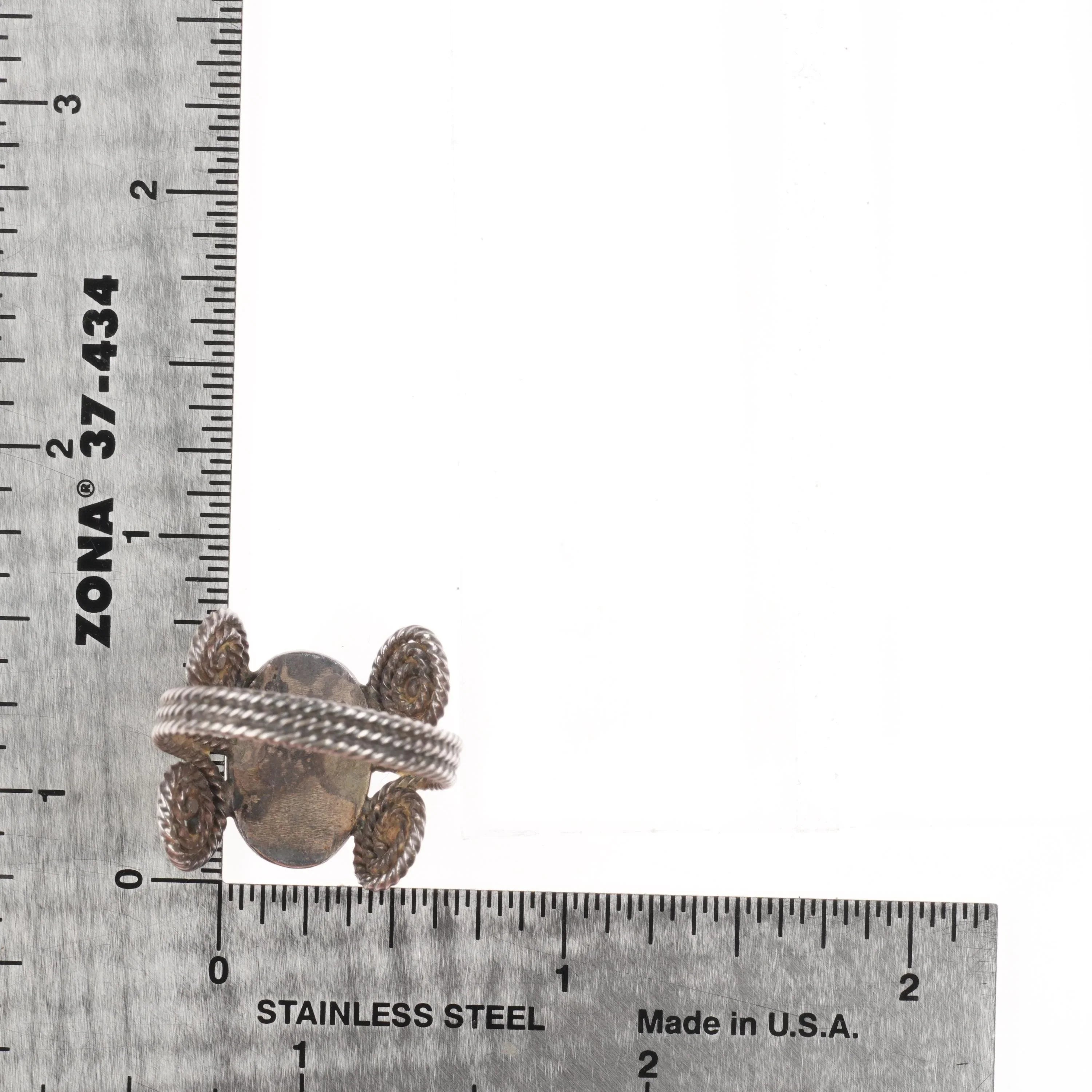 sz8.5 c1940‘s Navajo sterling silver fancy twisted wire ring with turquoise. Great looking ring from second quarter of the 20th century. Unmarked which is common with Native American jewelry of this era. Tested and guaranteed solid sterling silver with no issues unless some are already stated previously in the description.