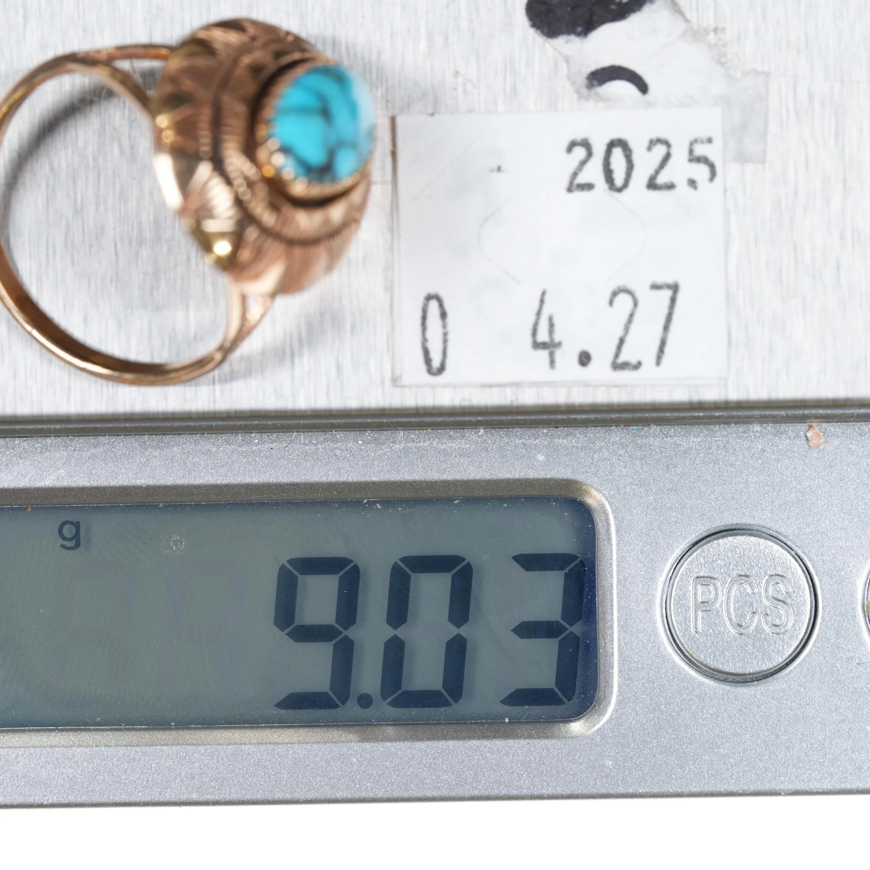 sz8.5 Hopi 14k gold high grade turquoise ring Native American. Weight and measurements in pictures. No damage or detectable wear. Very high quality work, I could not figure out the hallmark, but believe it‘s Hopi made.